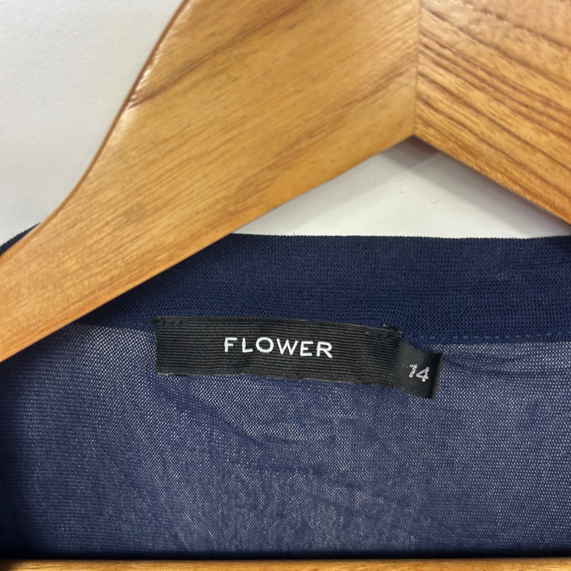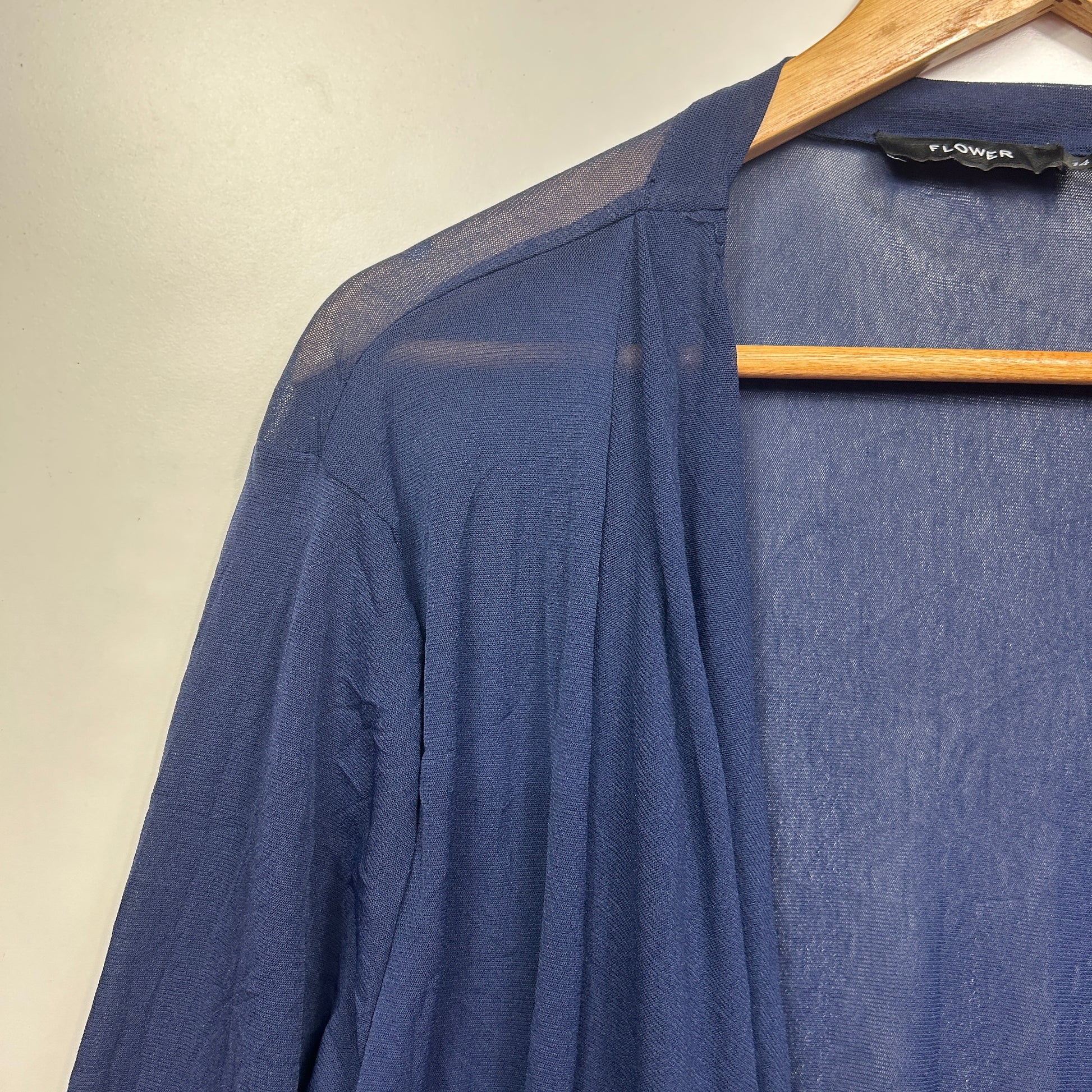 Flower Duster Jacket Top Size 14 Navy Long Sleeve