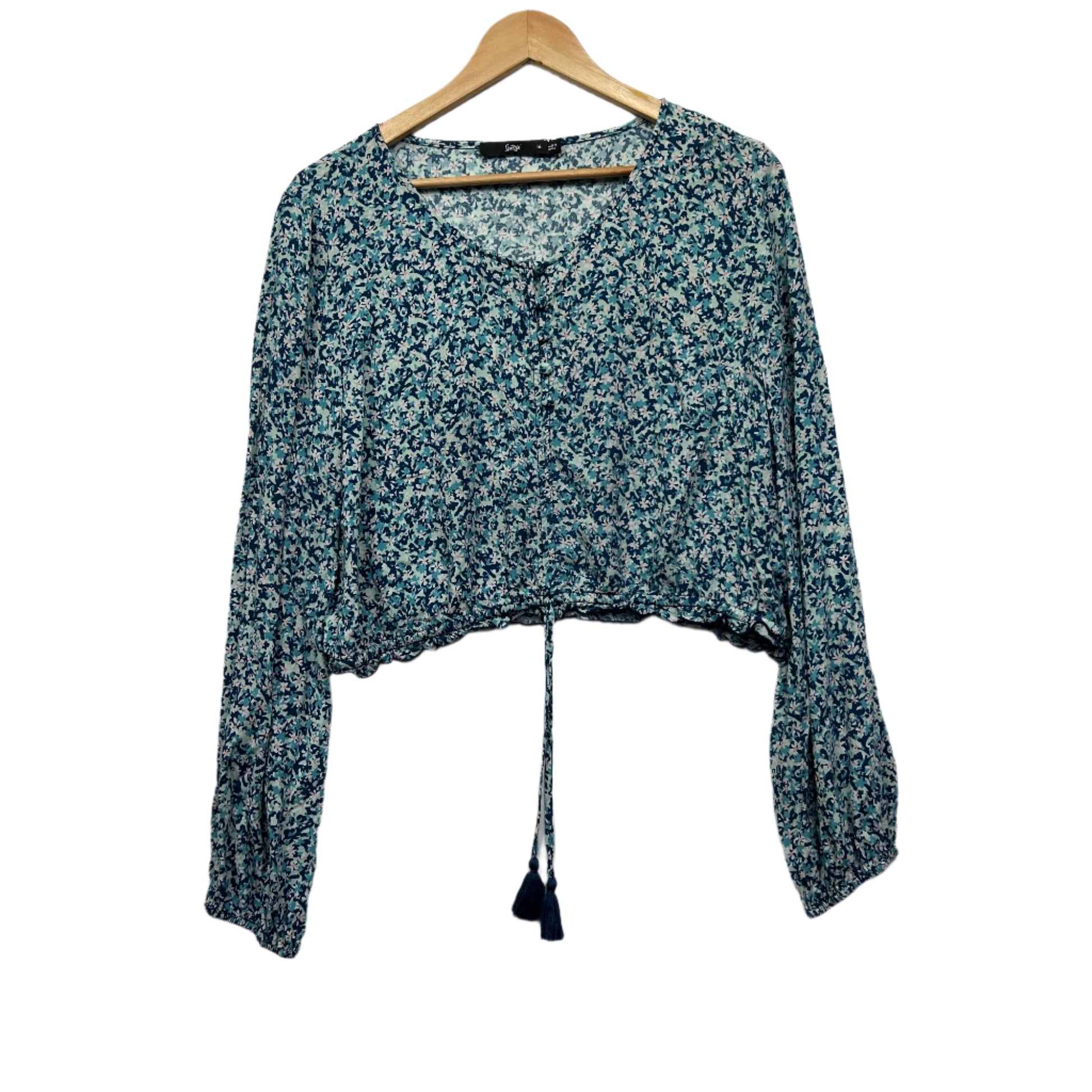 Sportsgirl Crop Top Size 16 Floral Long Sleeve