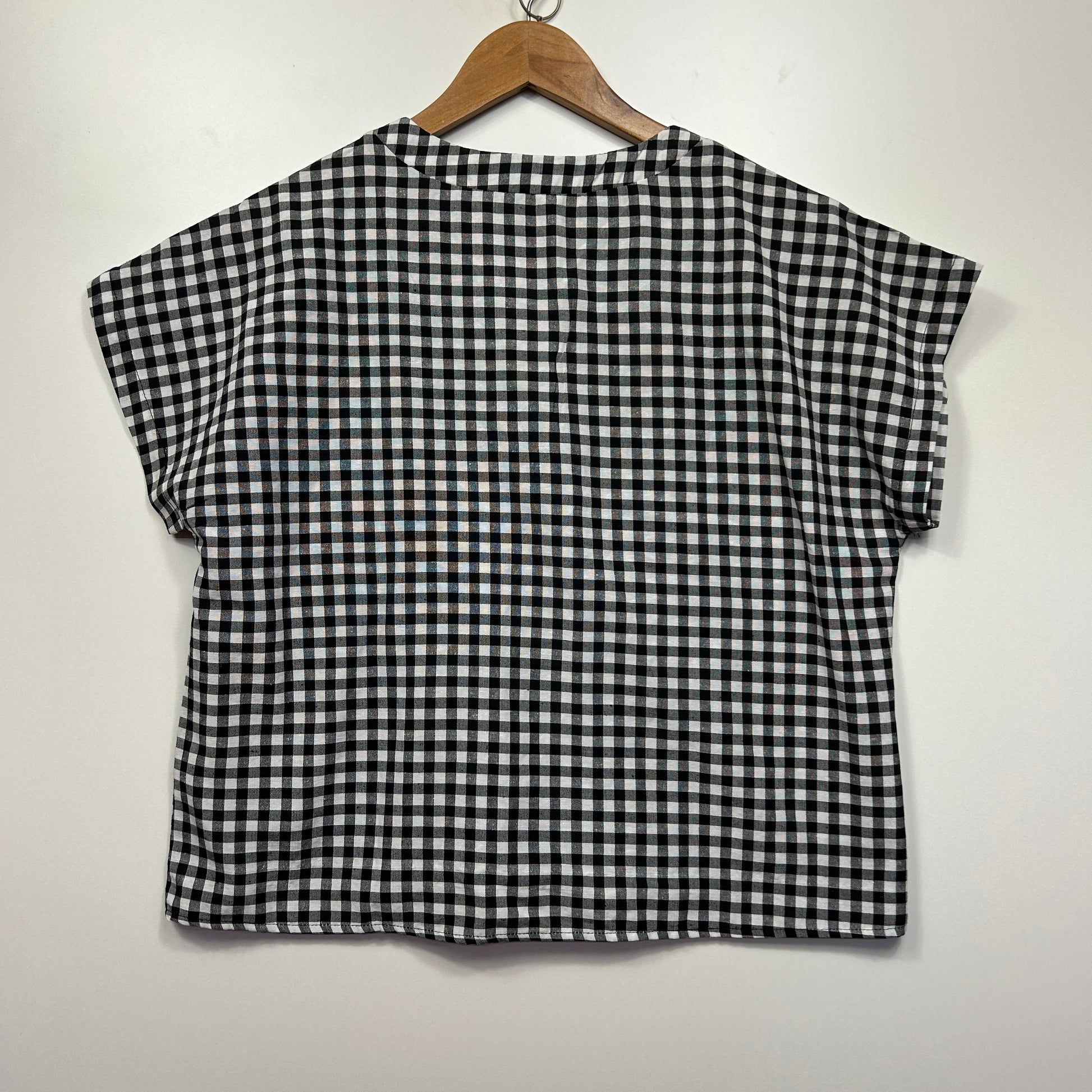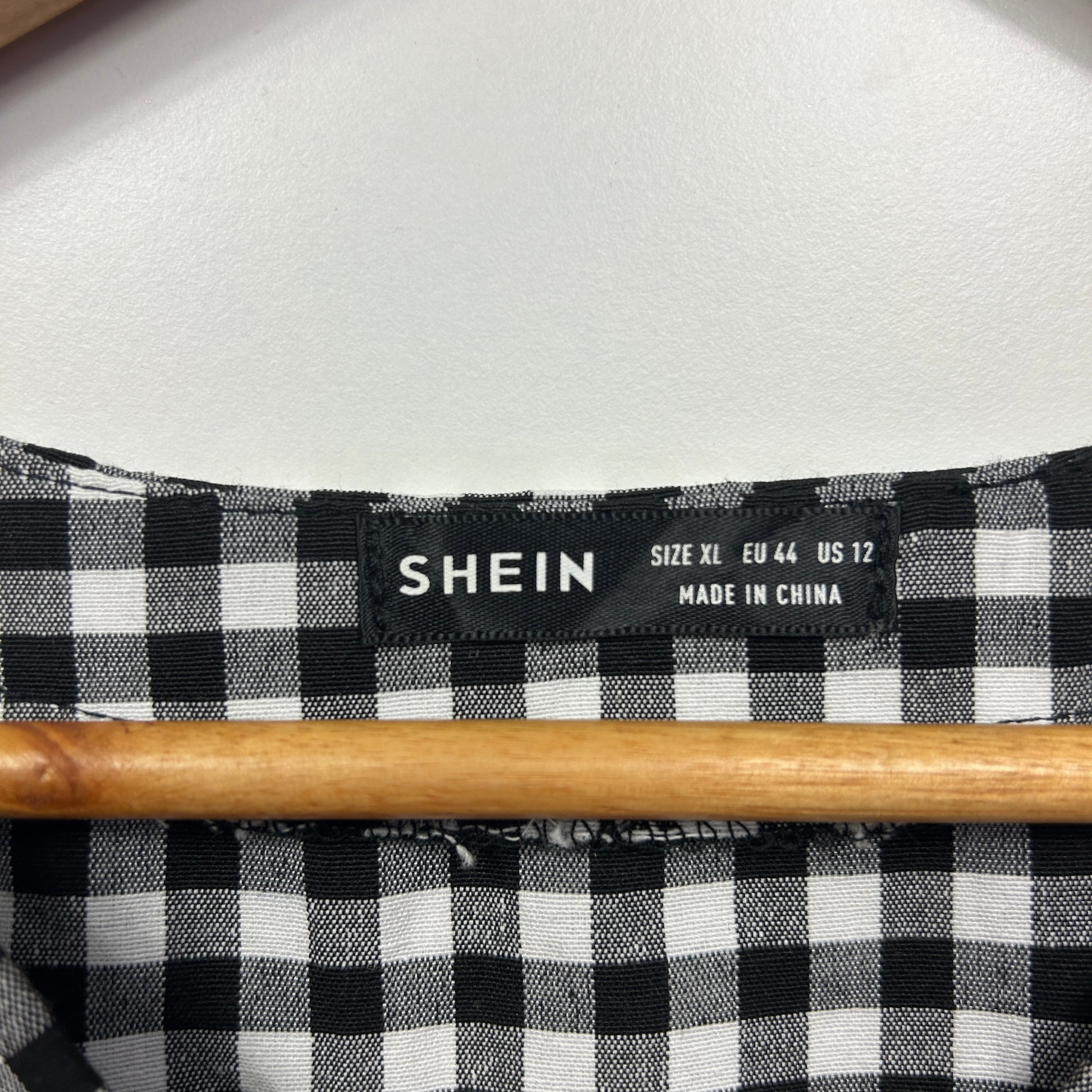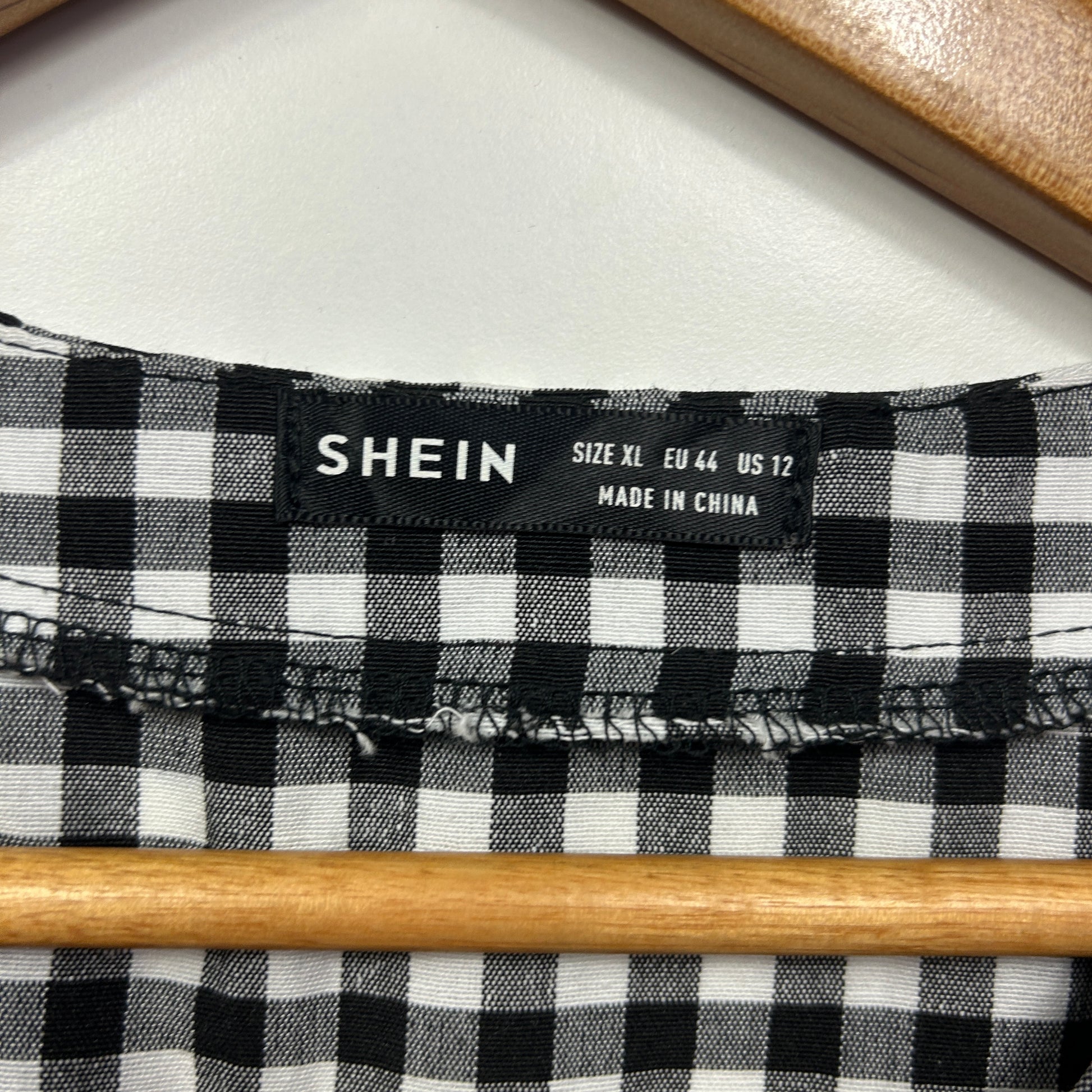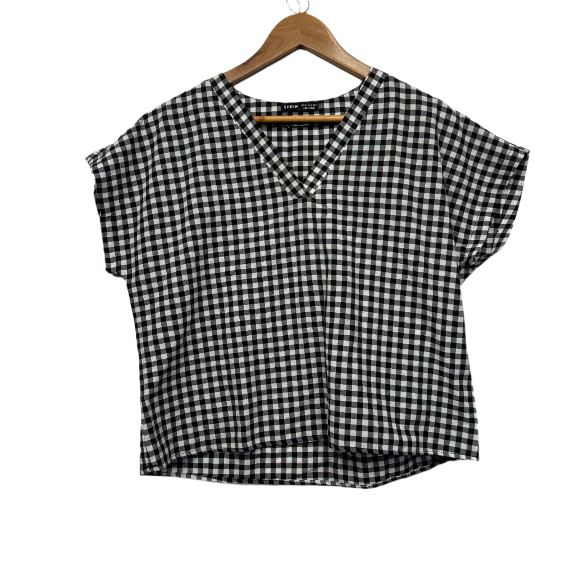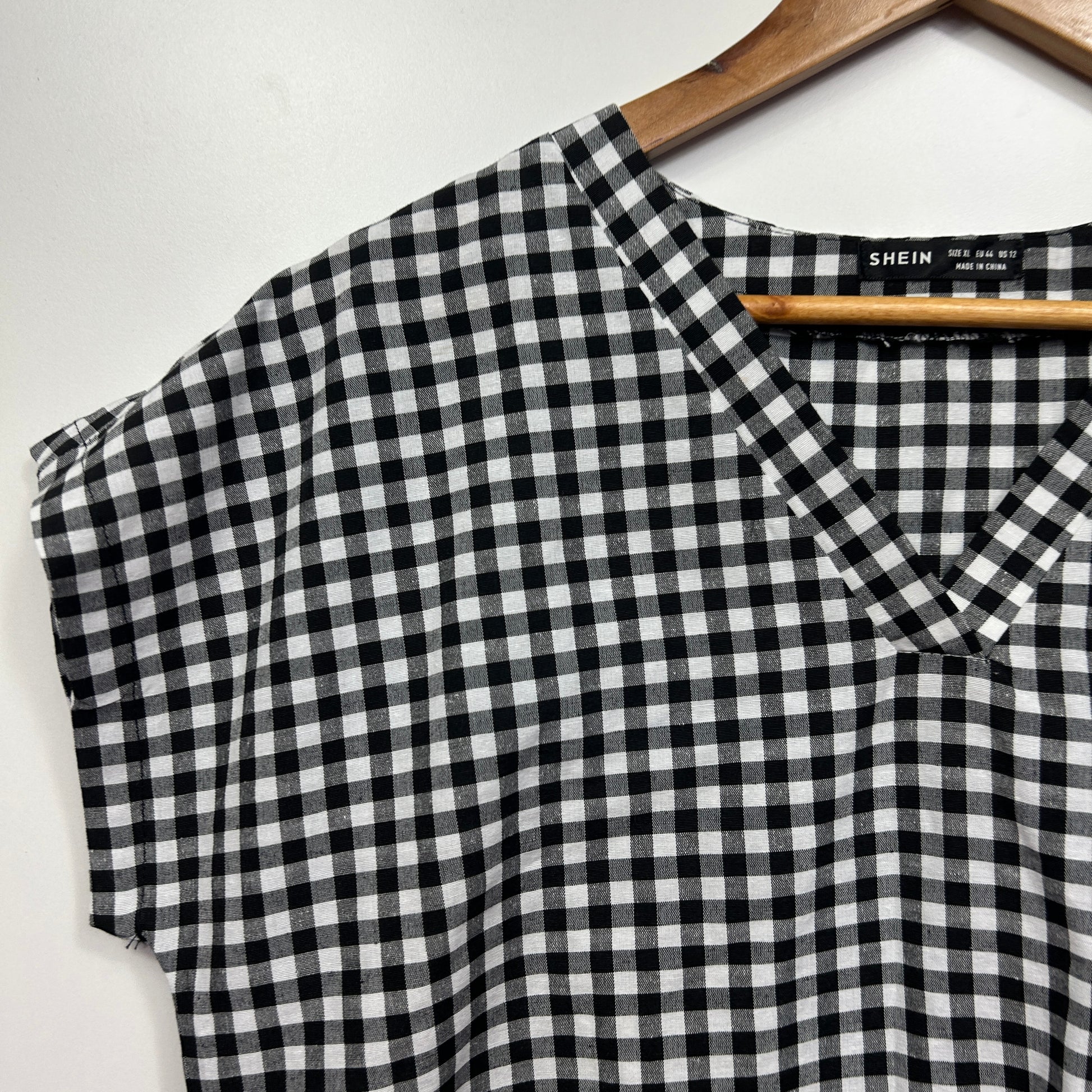 Shein Top Size 14 16 XL Black White Gingham Check Short Sleeve