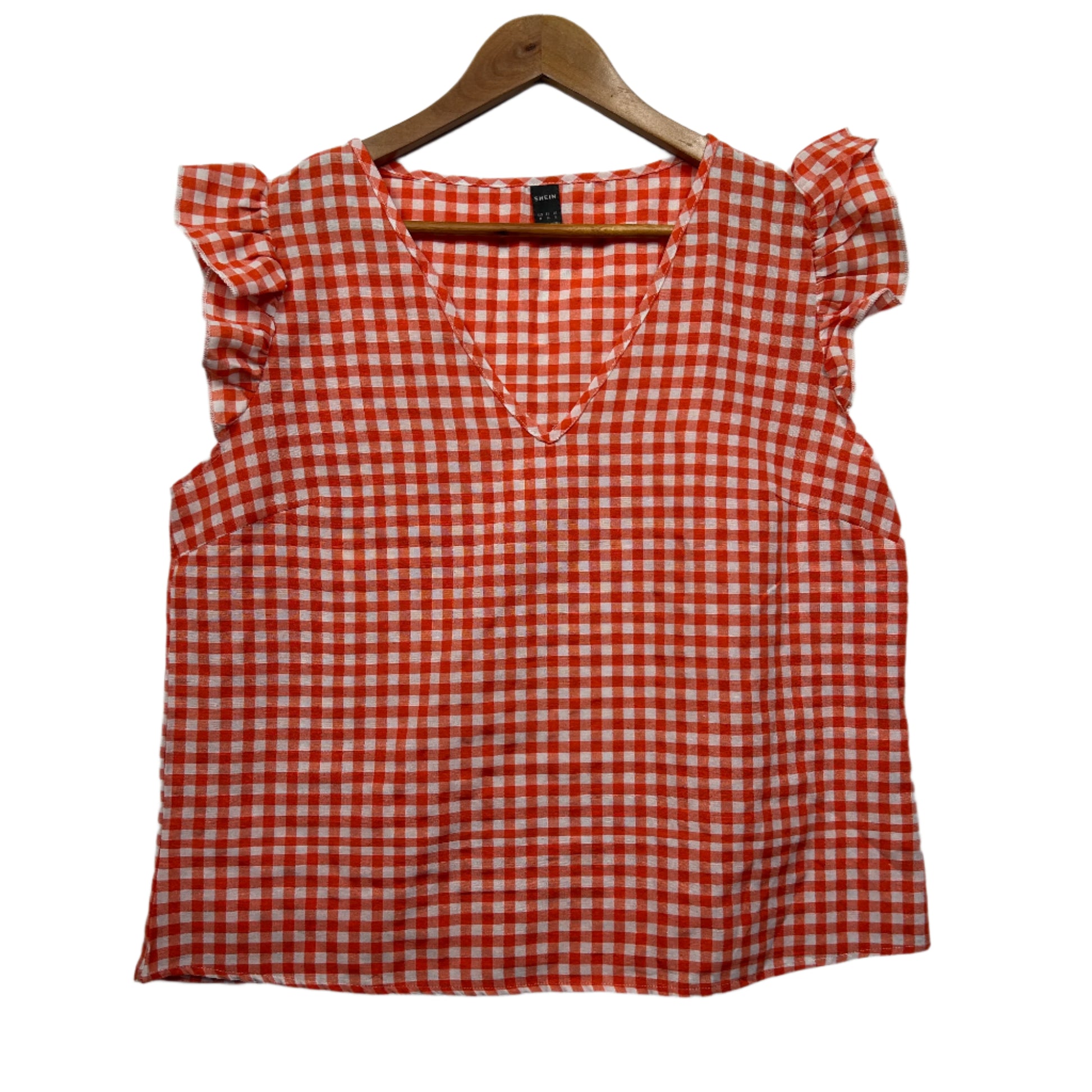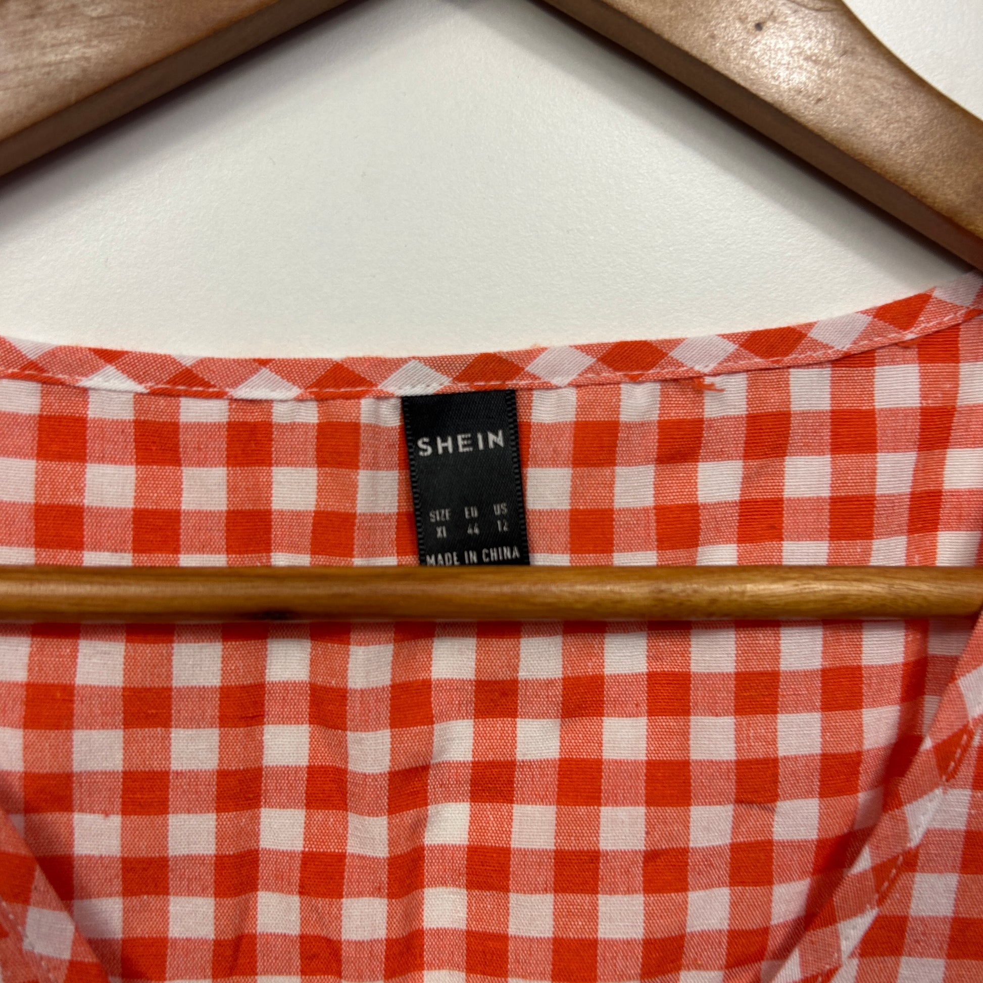 Shein Top Size 14 16 XL Red White Gingham Check Short Sleeve
