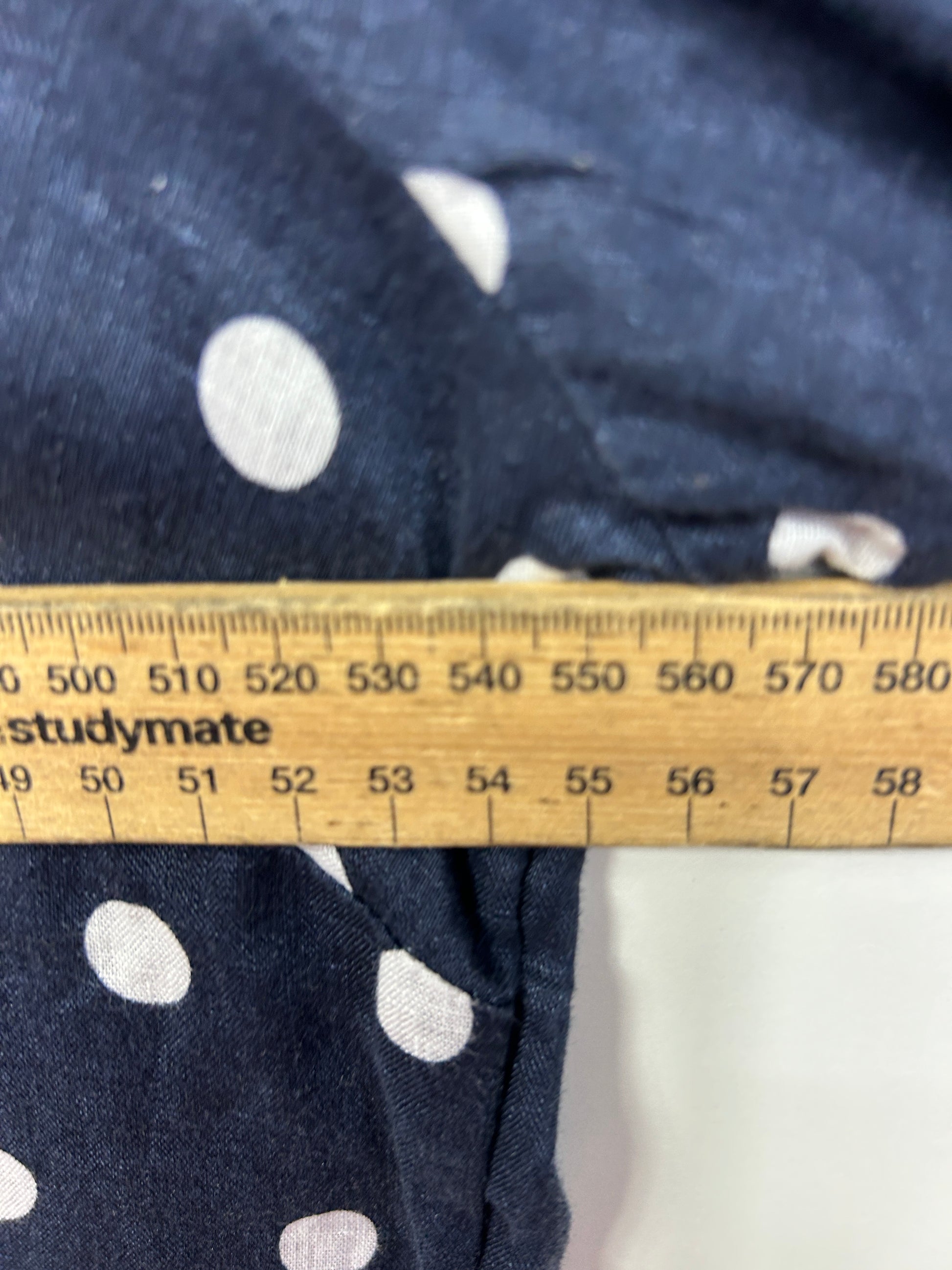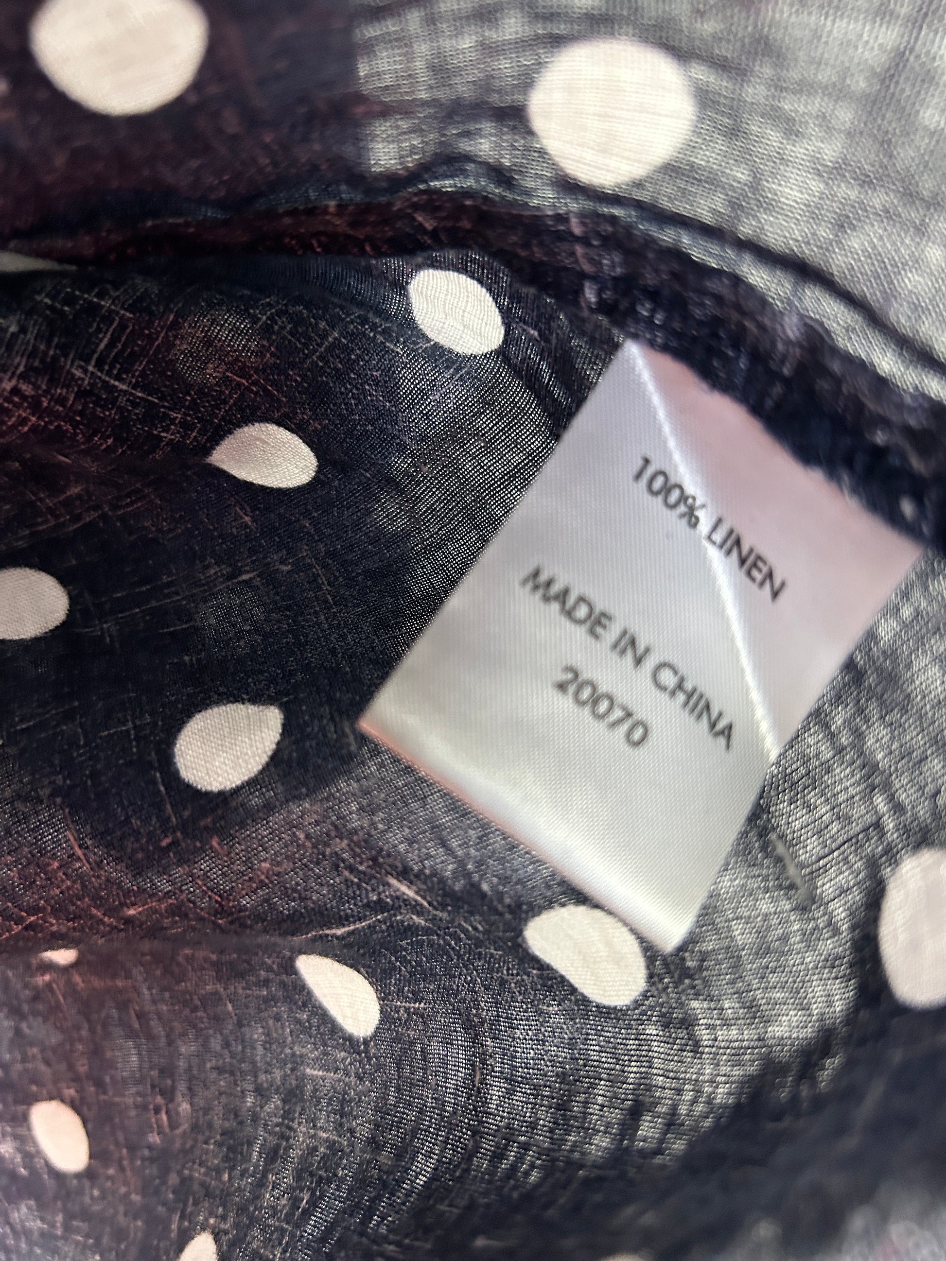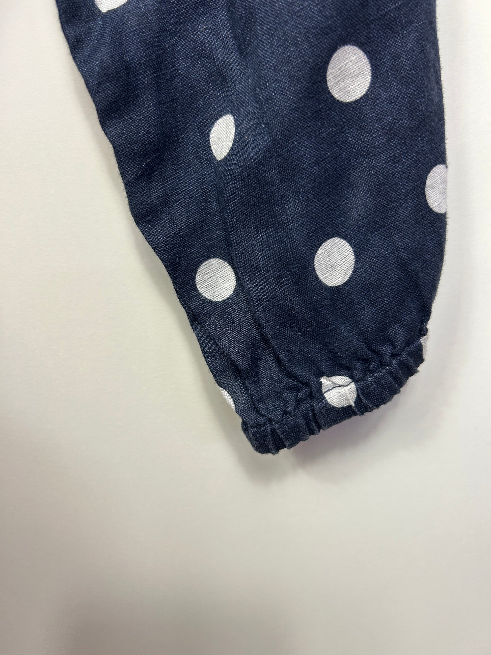 Suzanne Grae Linen Top Size 14 Navy White Polka Dots Long Sleeve