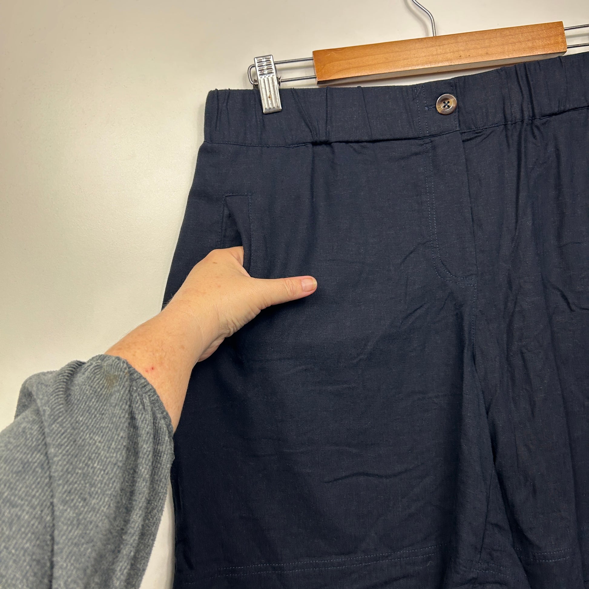 Katies Shorts Size 14 Pockets Linen Blend Navy