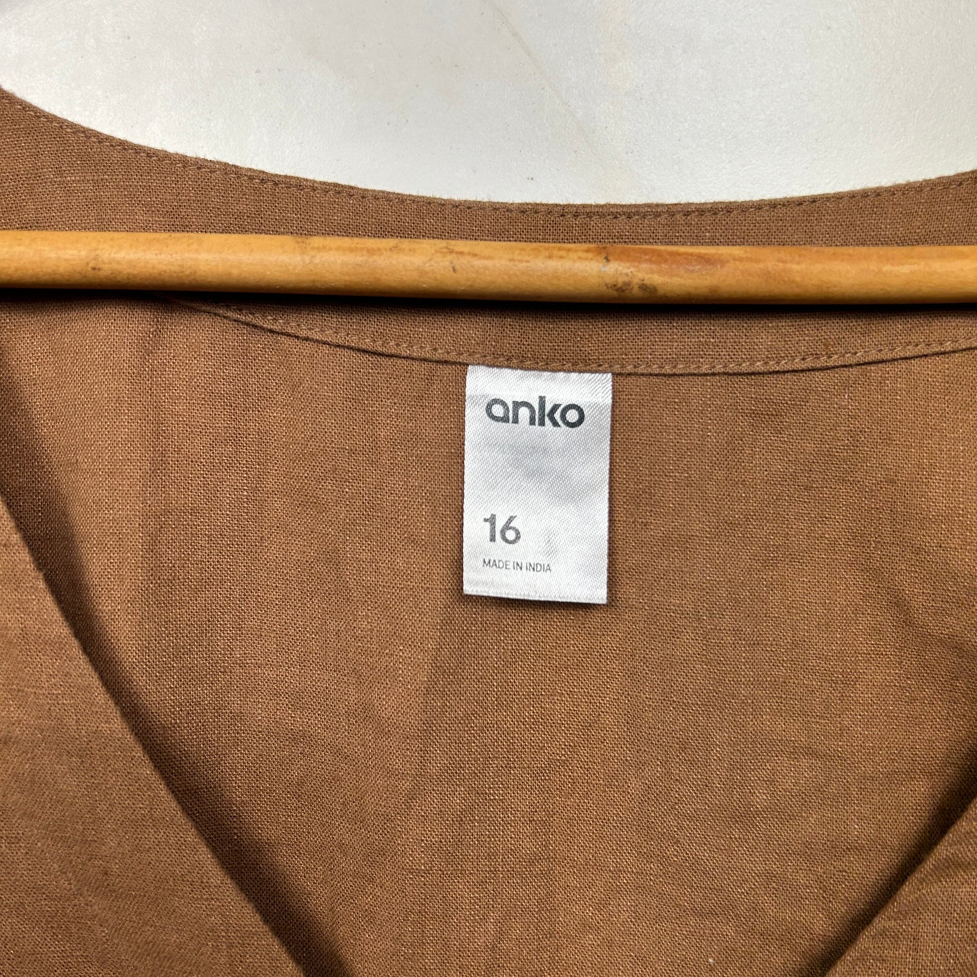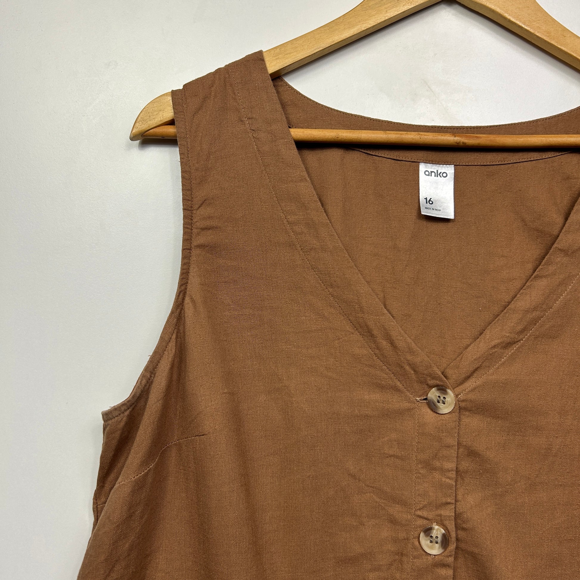Anko Top Size 16 Sleeveless Linen Blend Tan