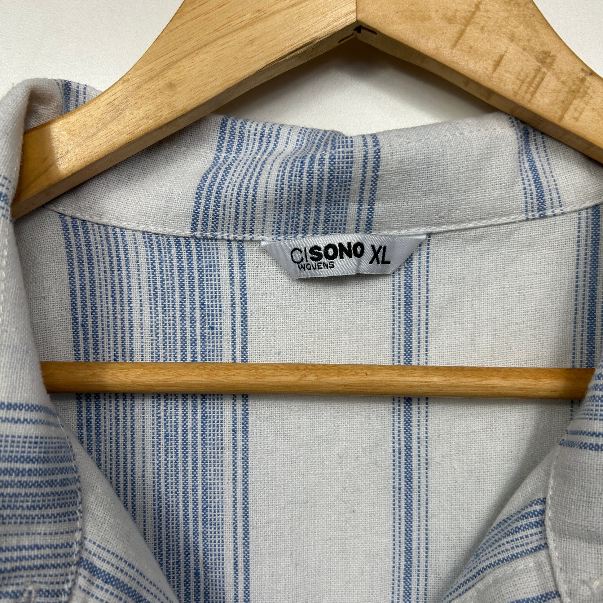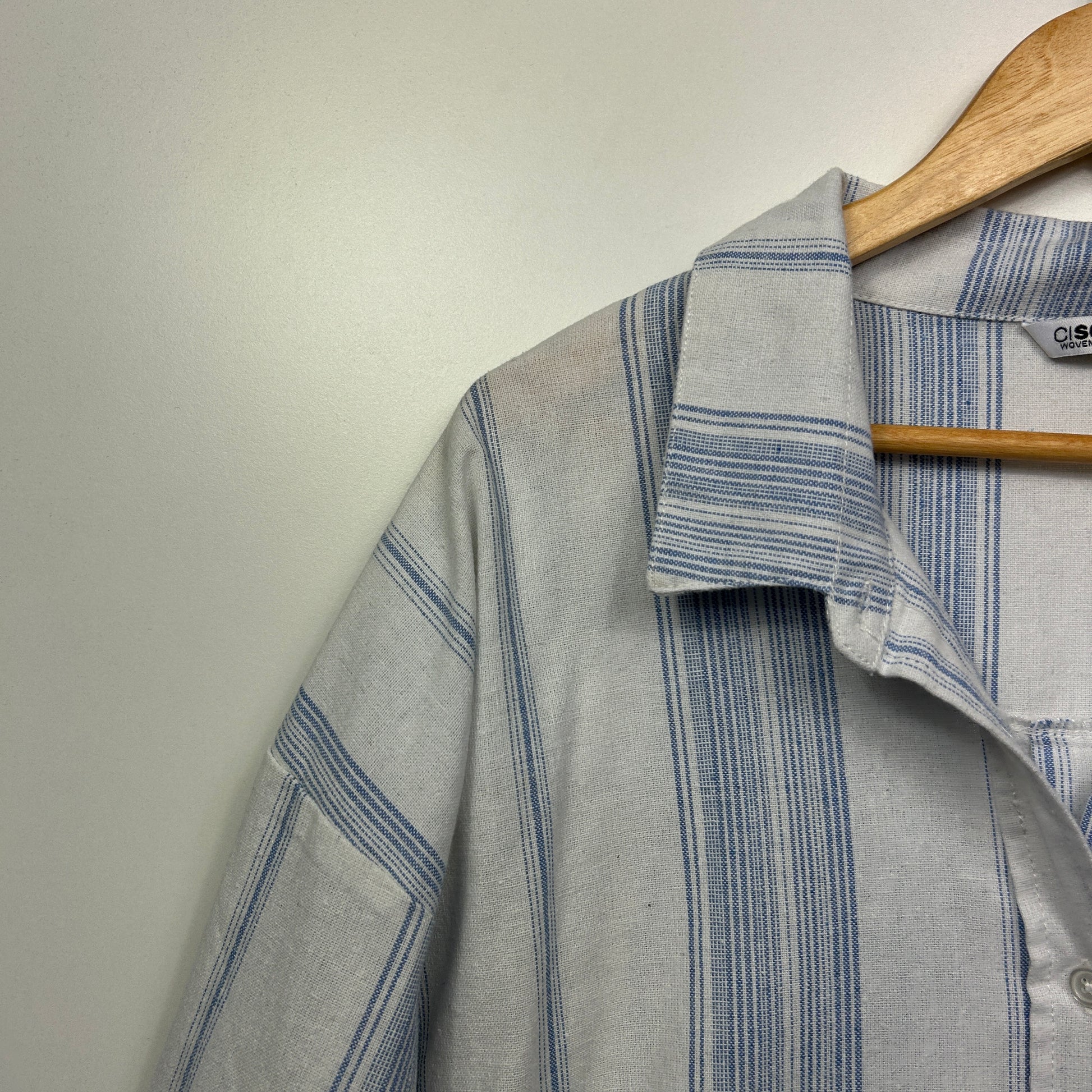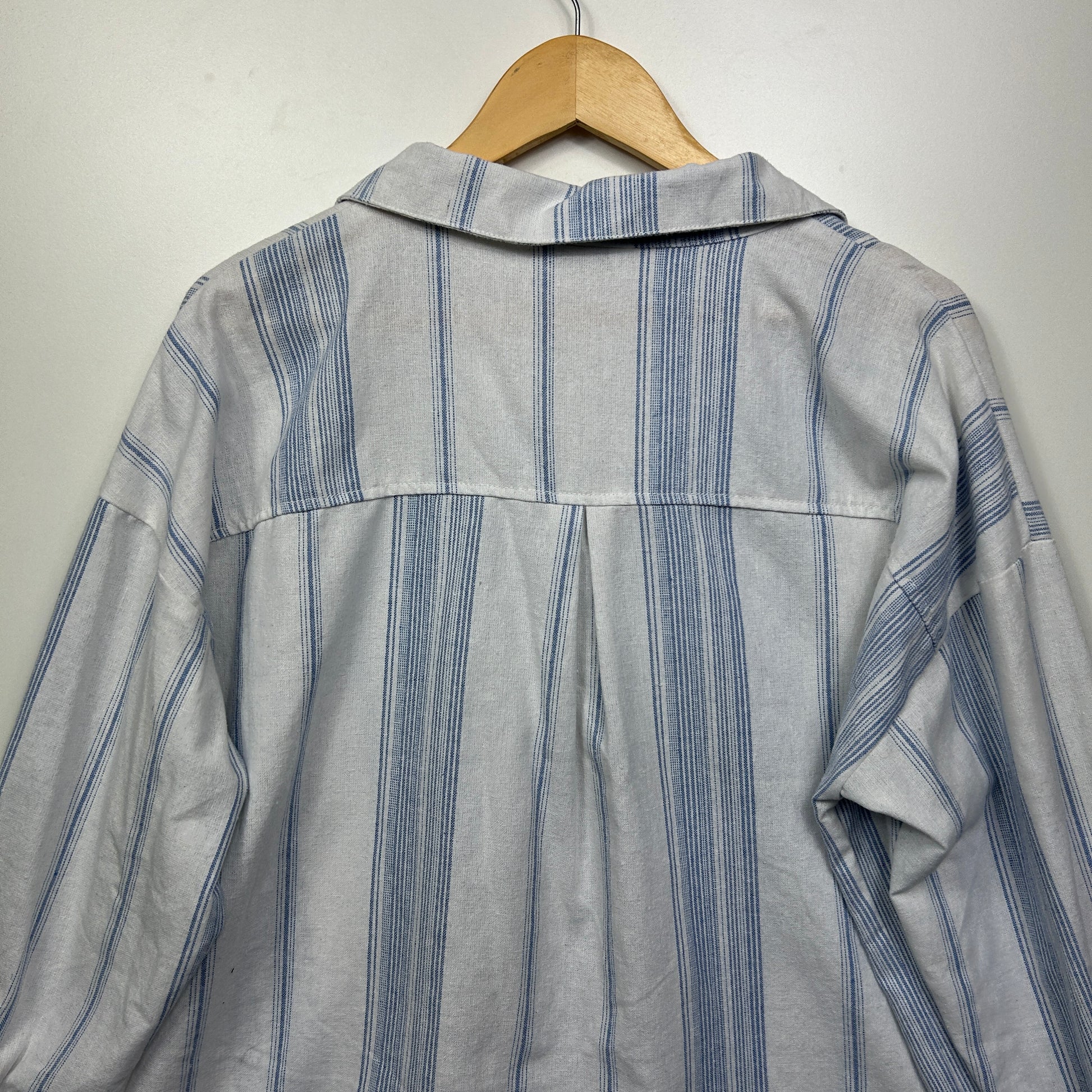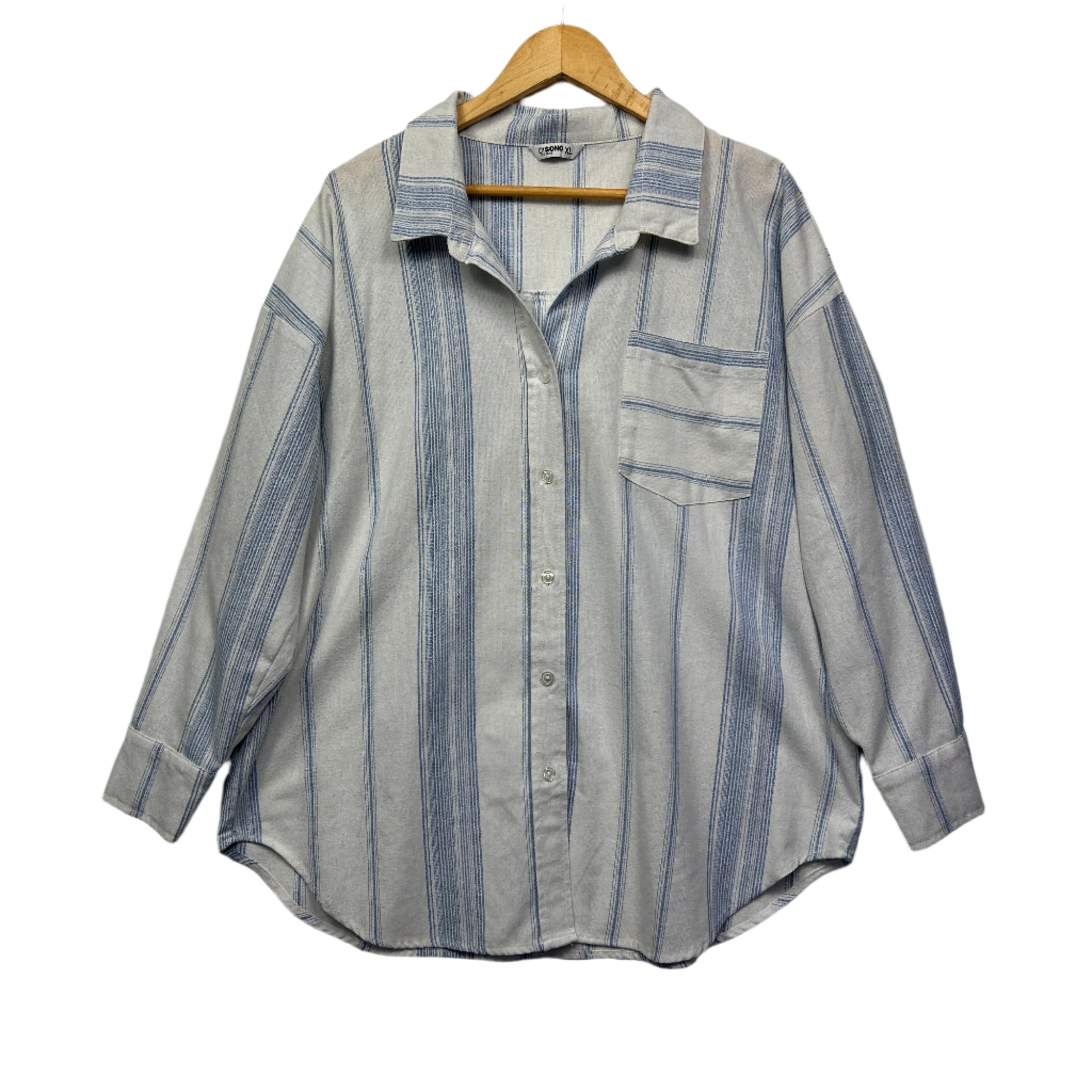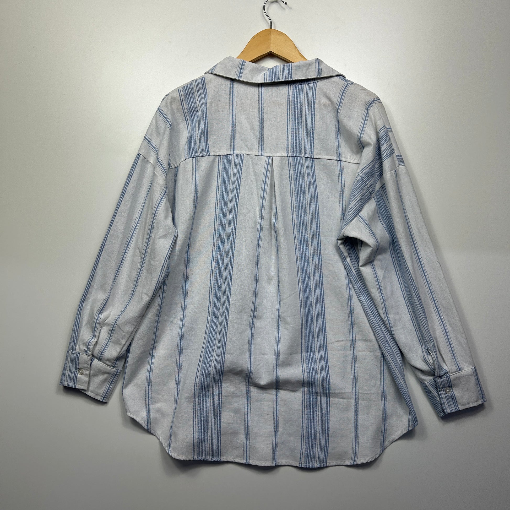 Ci Sono Top Size 16 XL Long Sleeve Blue White Striped Cotton Blend
