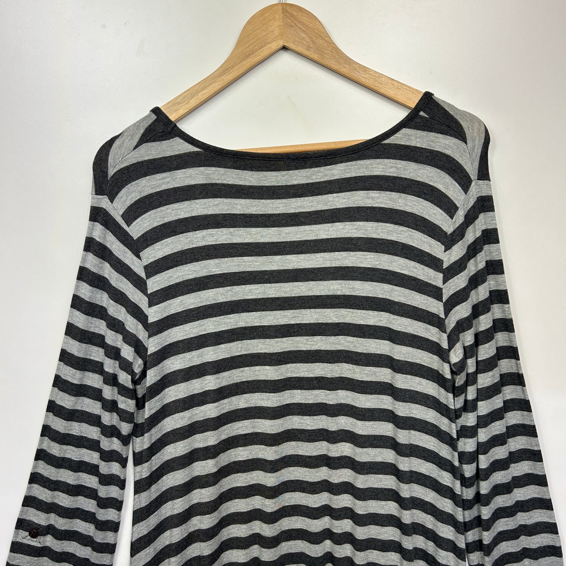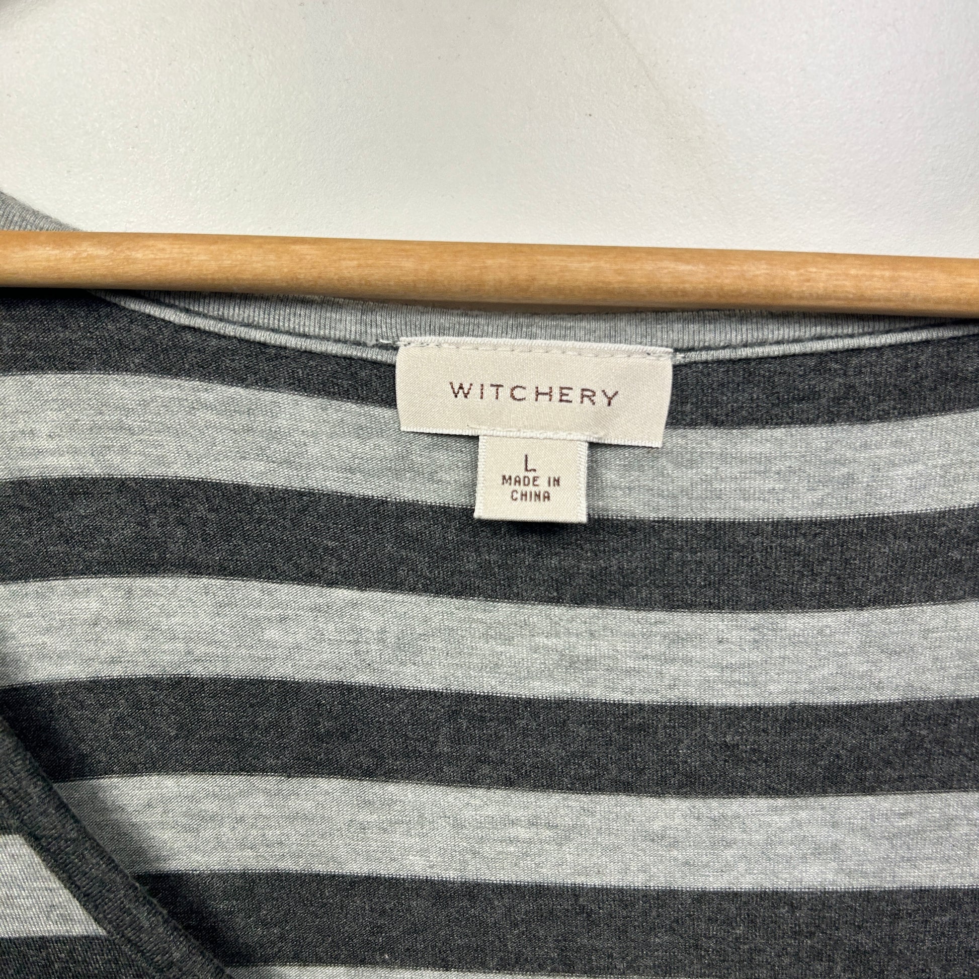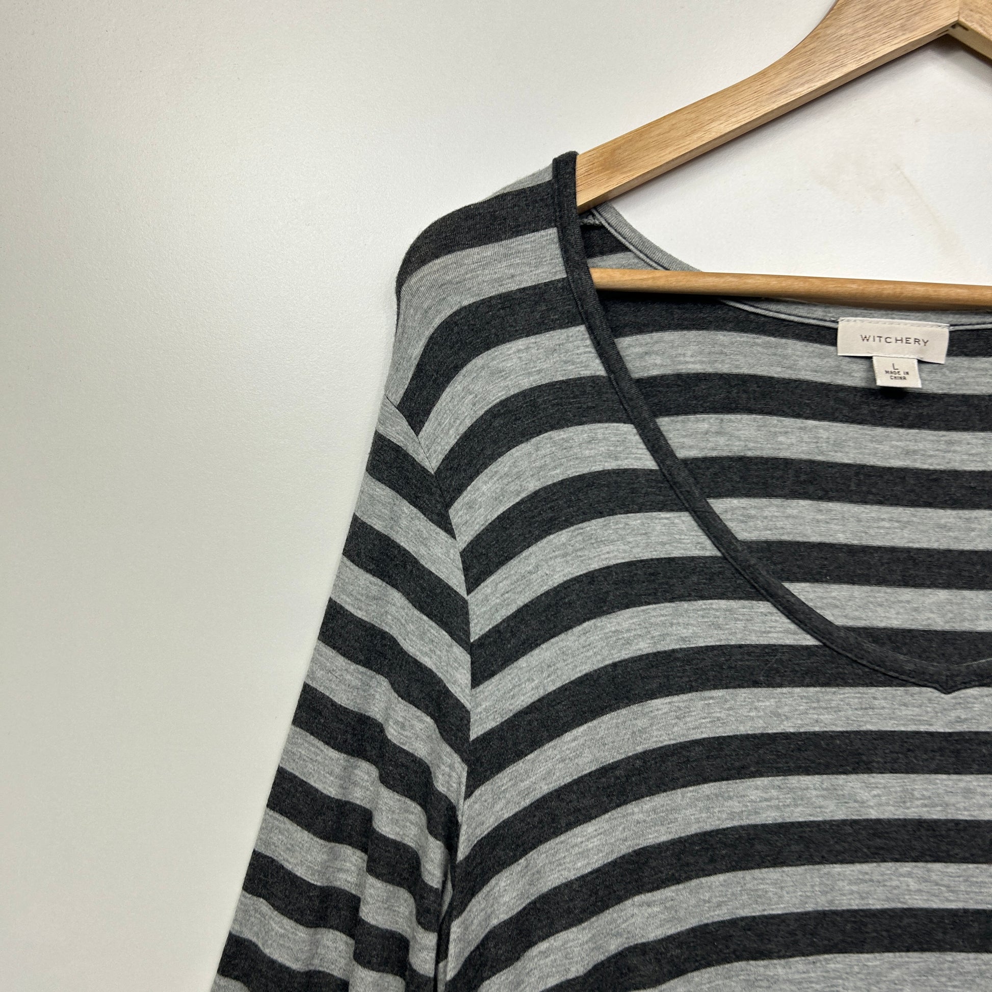 Witchery Top Size Large 14 Grey Black Striped Long Sleeve