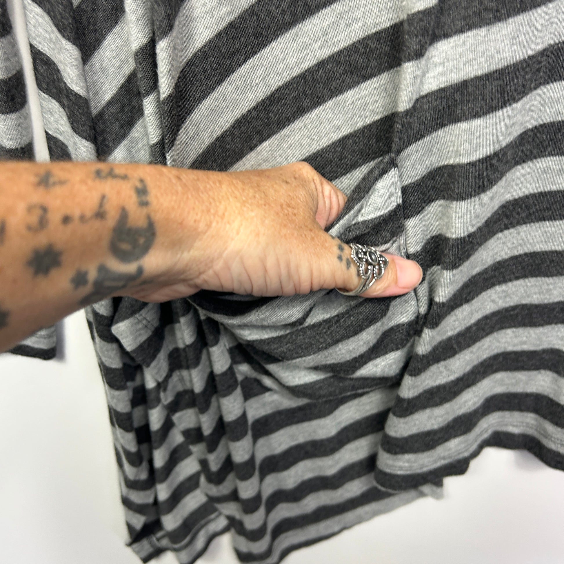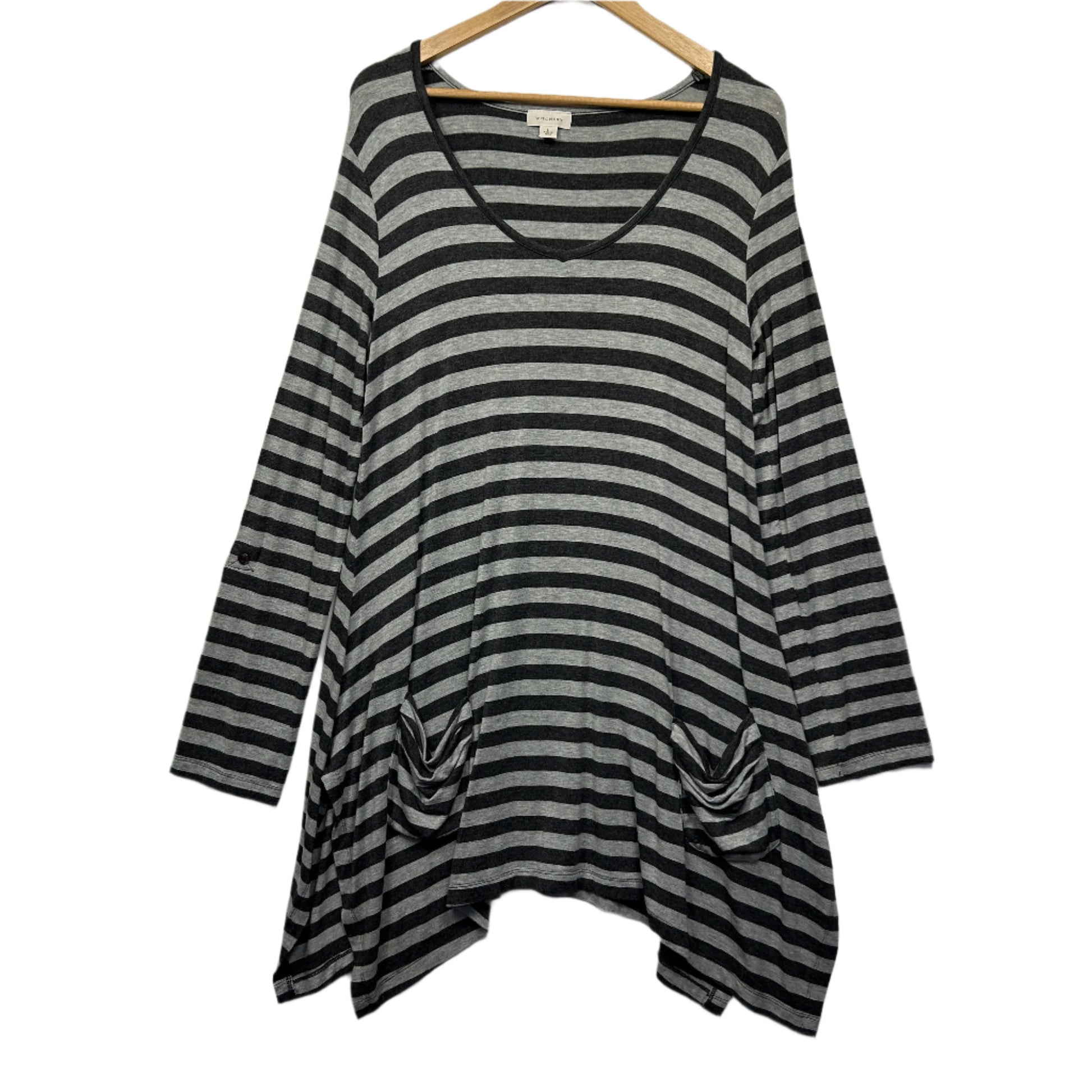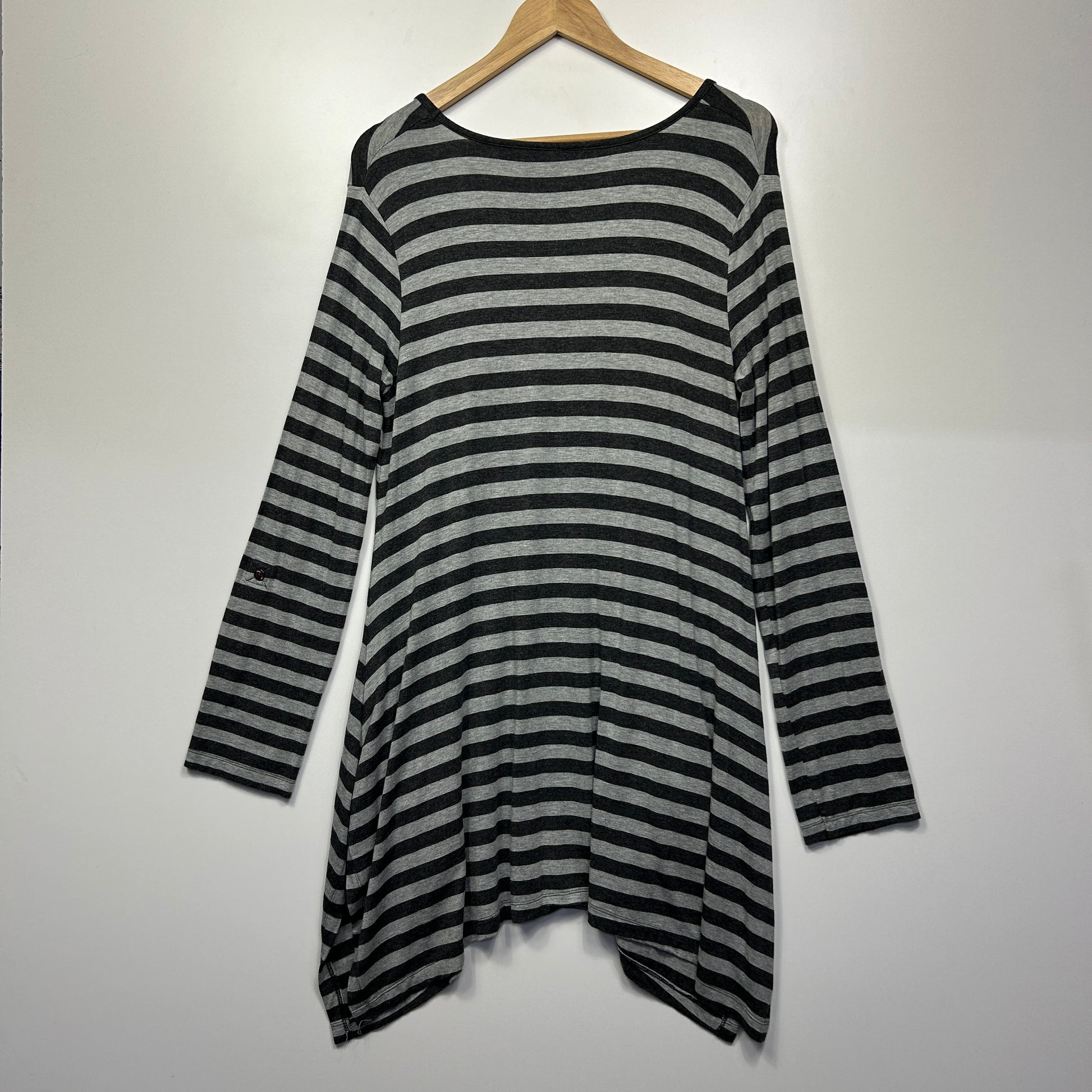 Witchery Top Size Large 14 Grey Black Striped Long Sleeve
