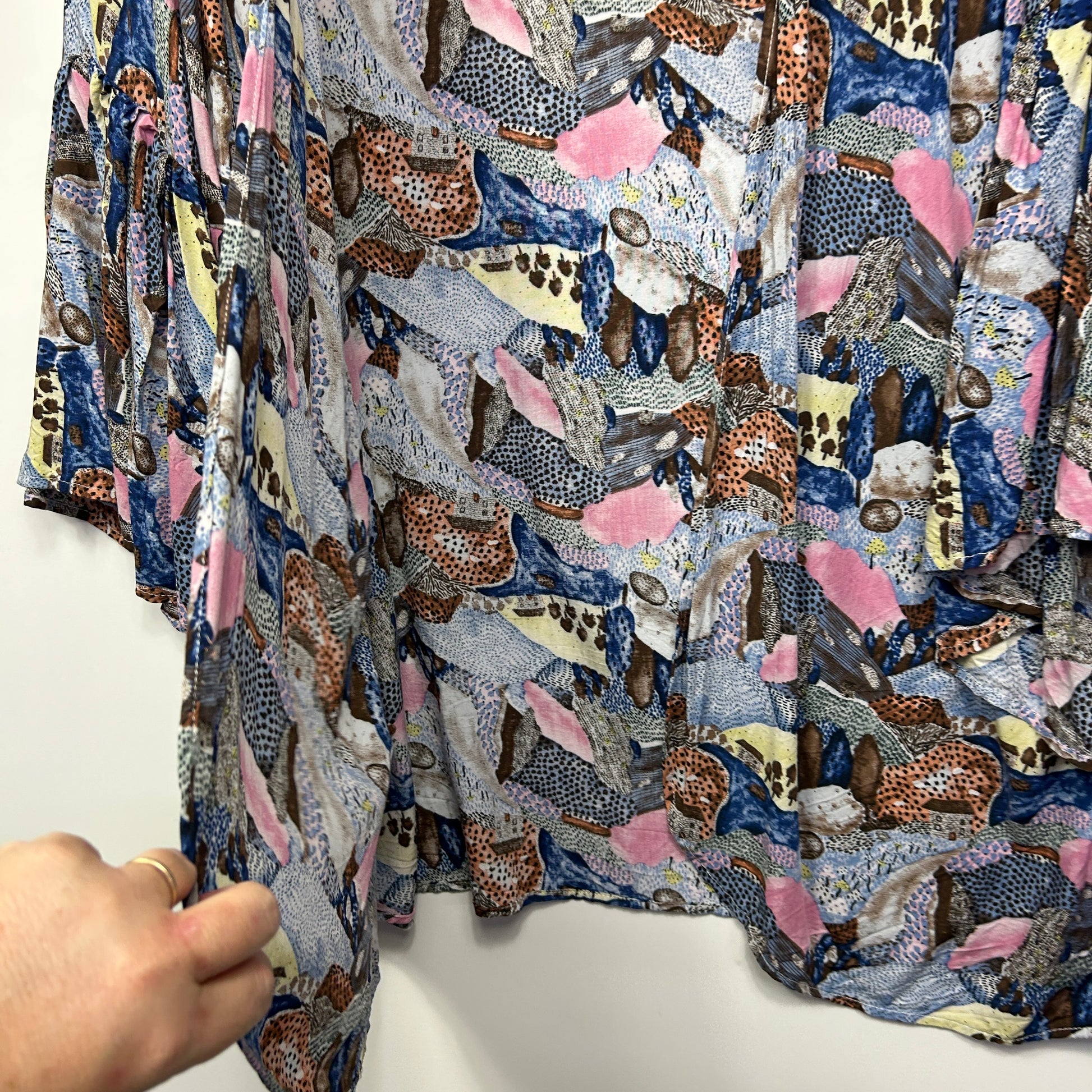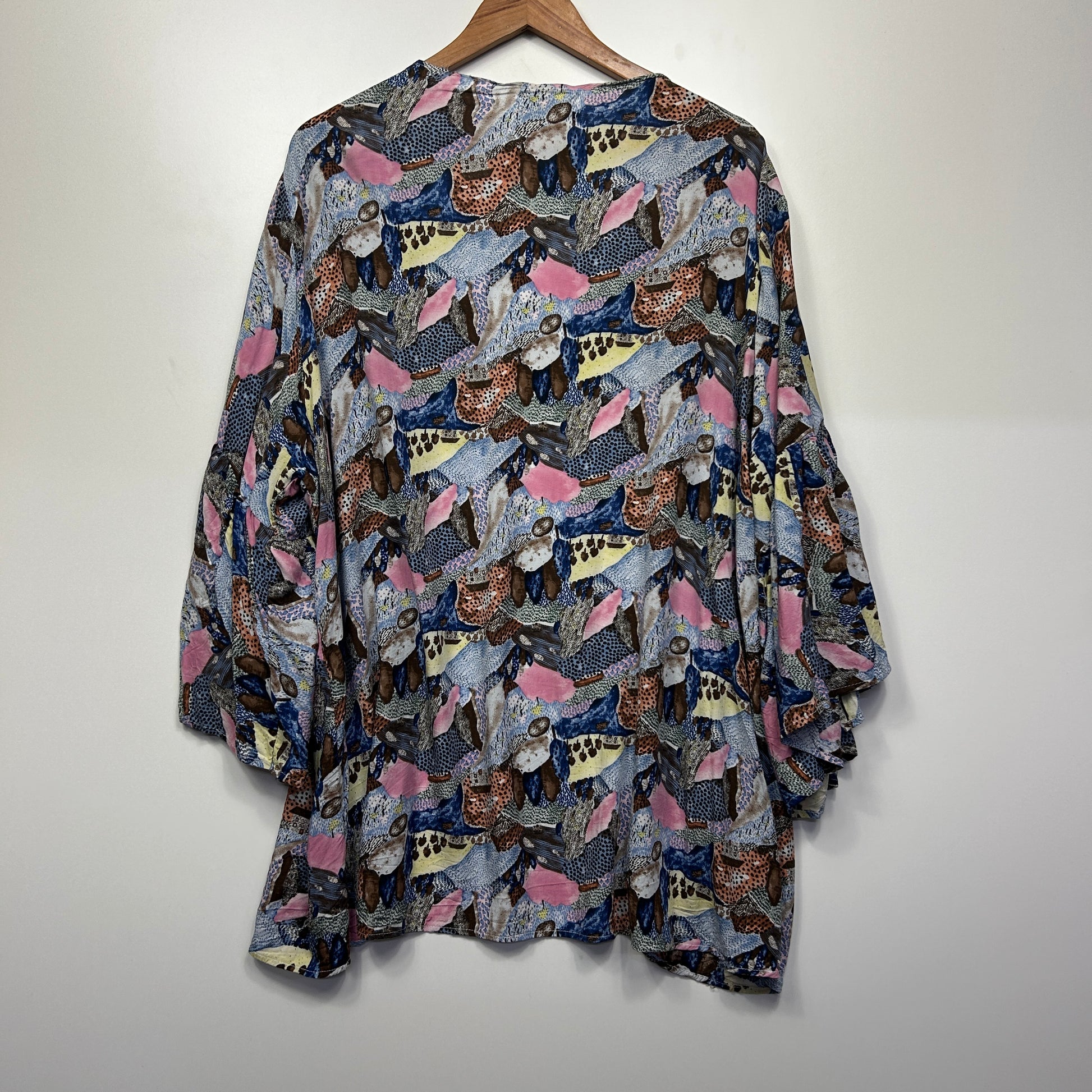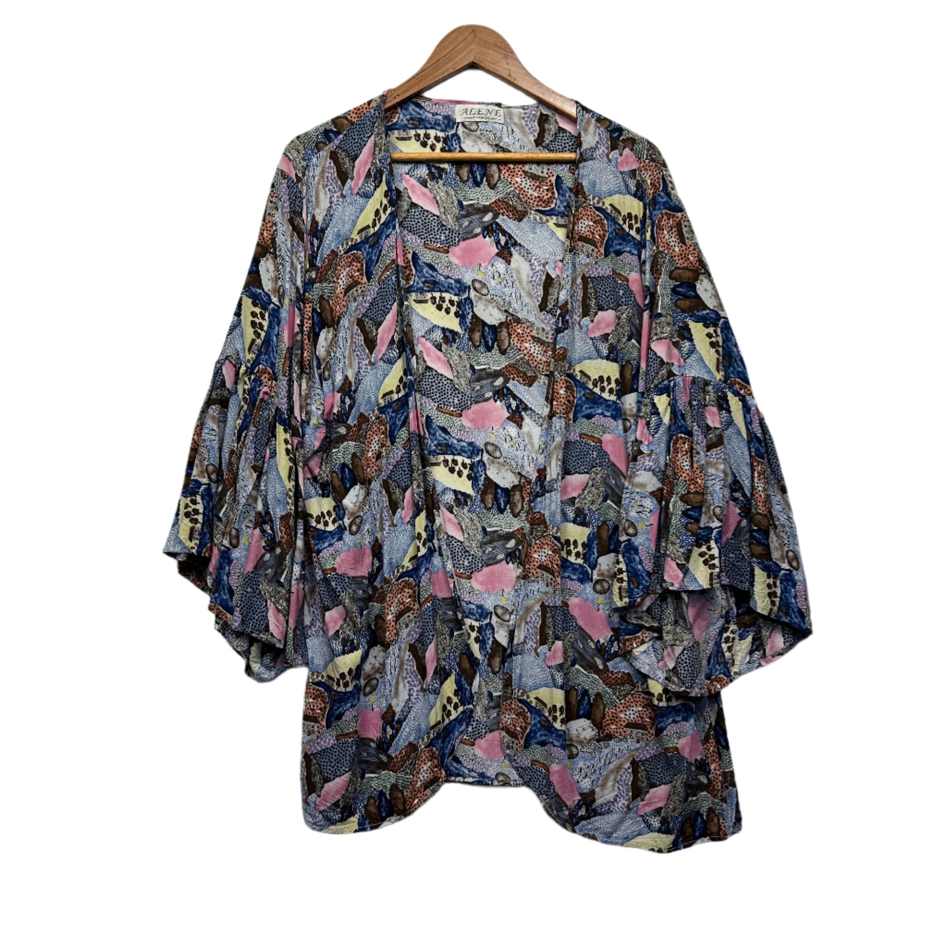 Alene Fashion Duster Jacket One Size 16 18 20 Bell Sleeve Multicoloured Open Front