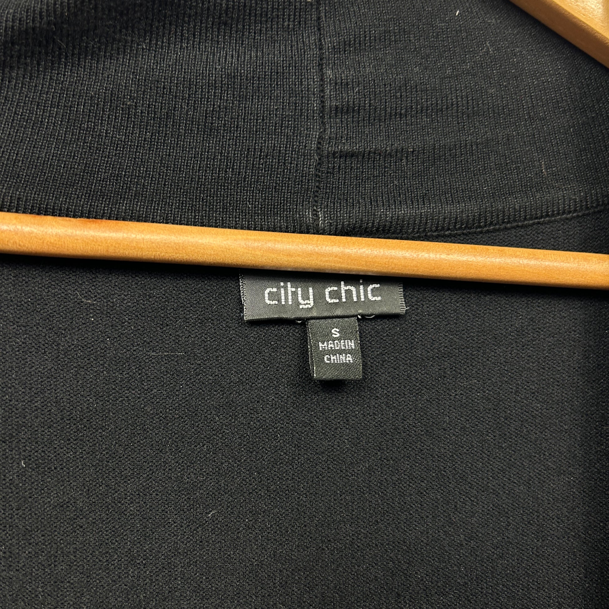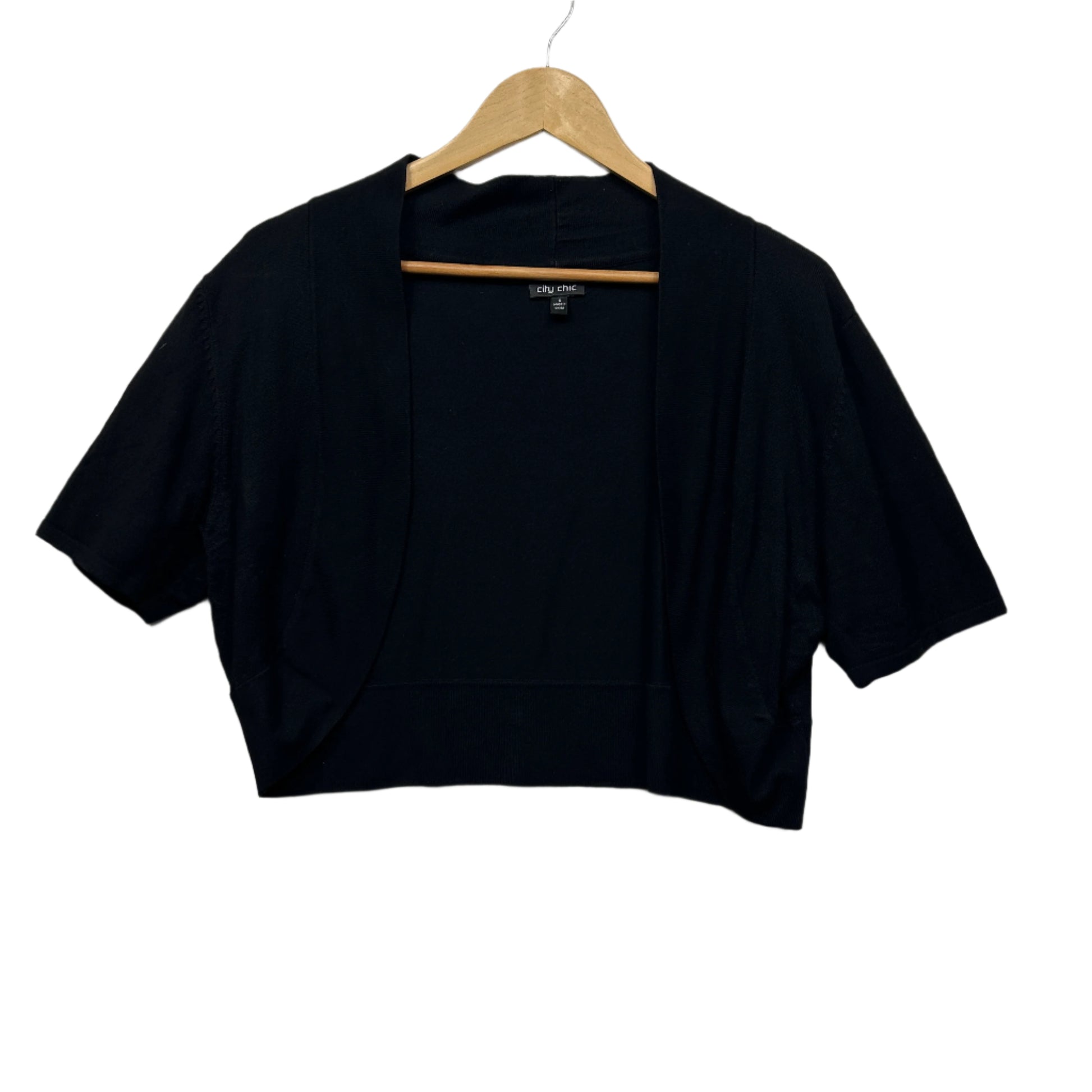 City Chic Cropped Cardigan Top Size 22 Large Plus Black Open Front