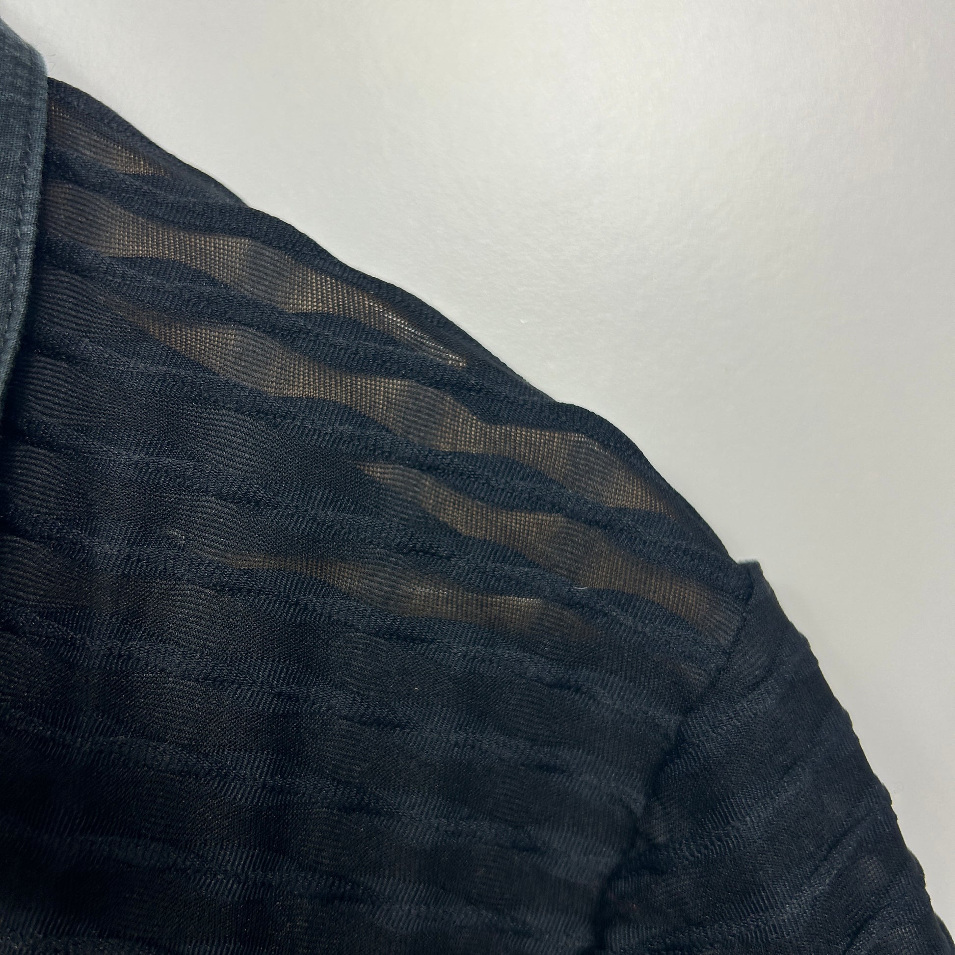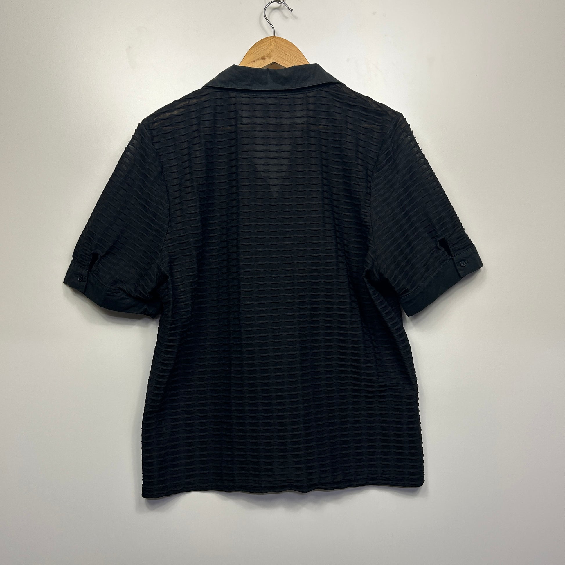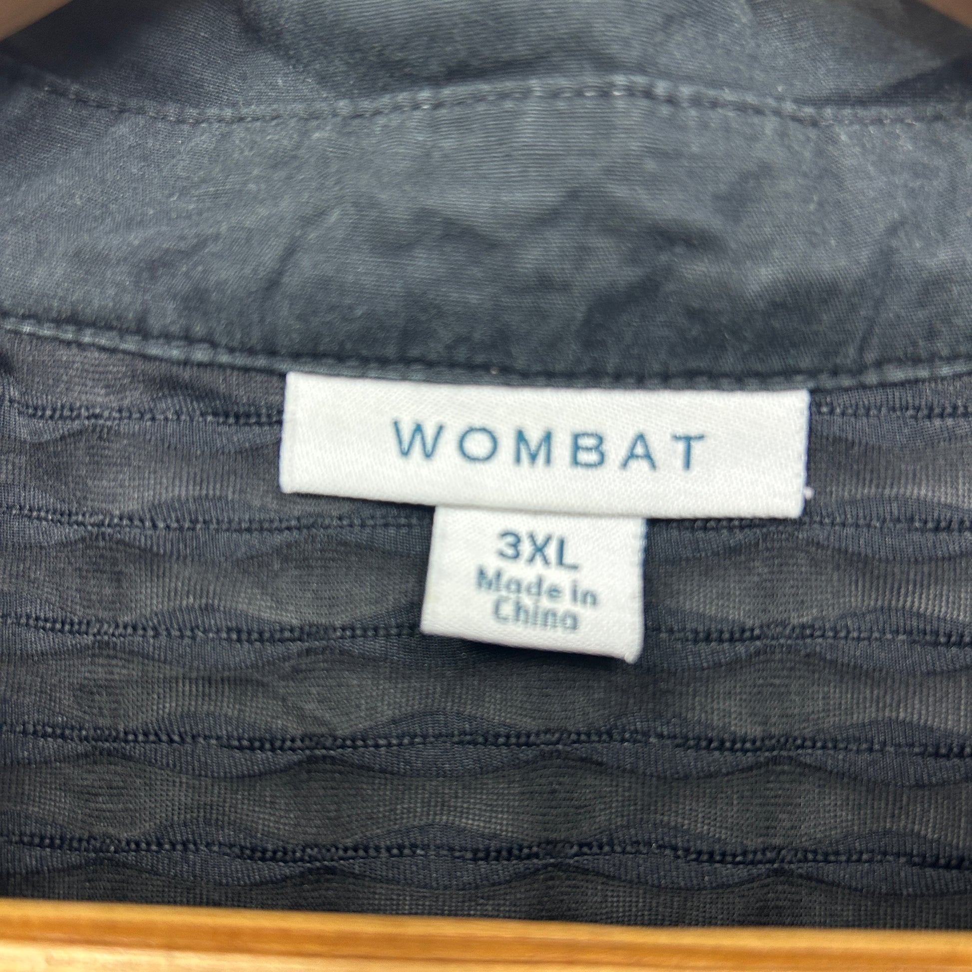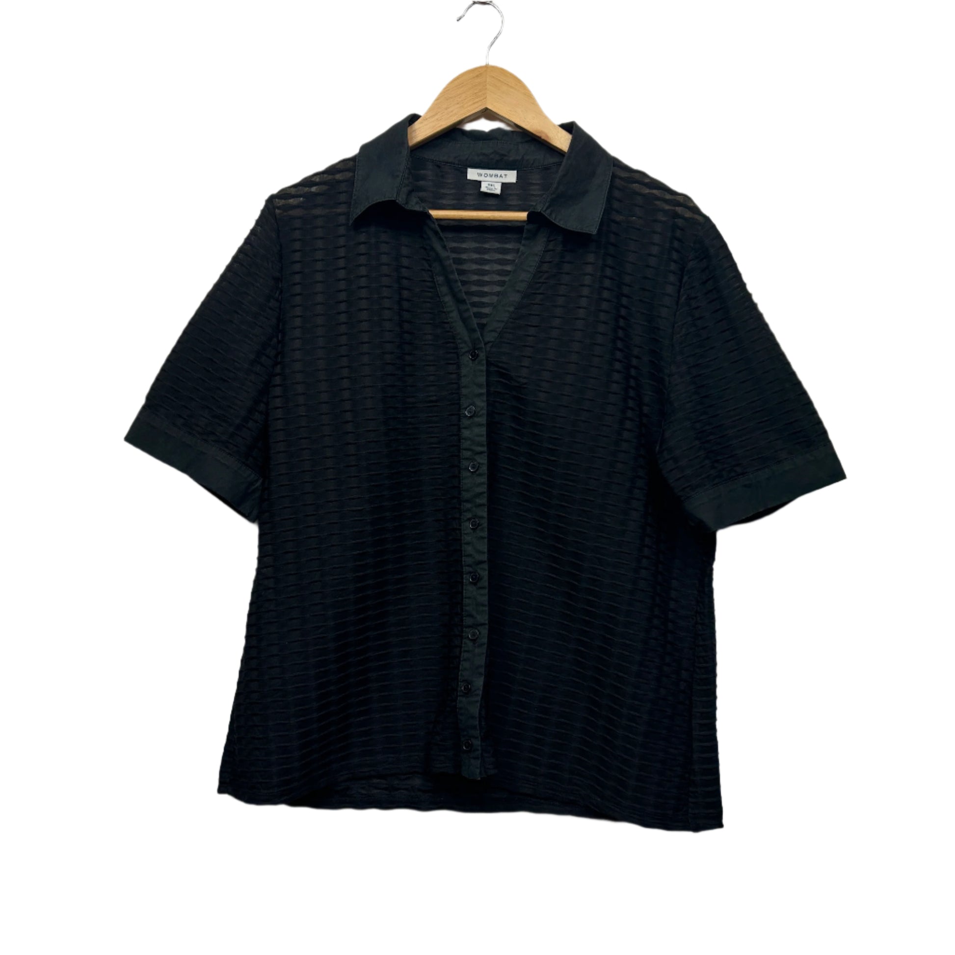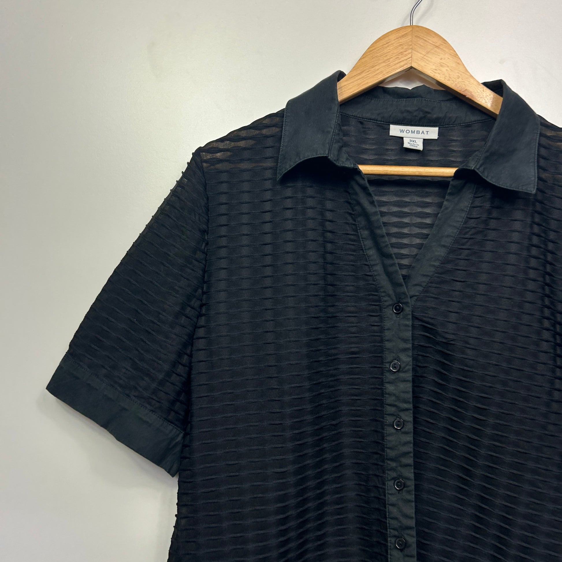 Wombat Top Size 16 18 3XL Black Short Sleeve Button Up Ribbed