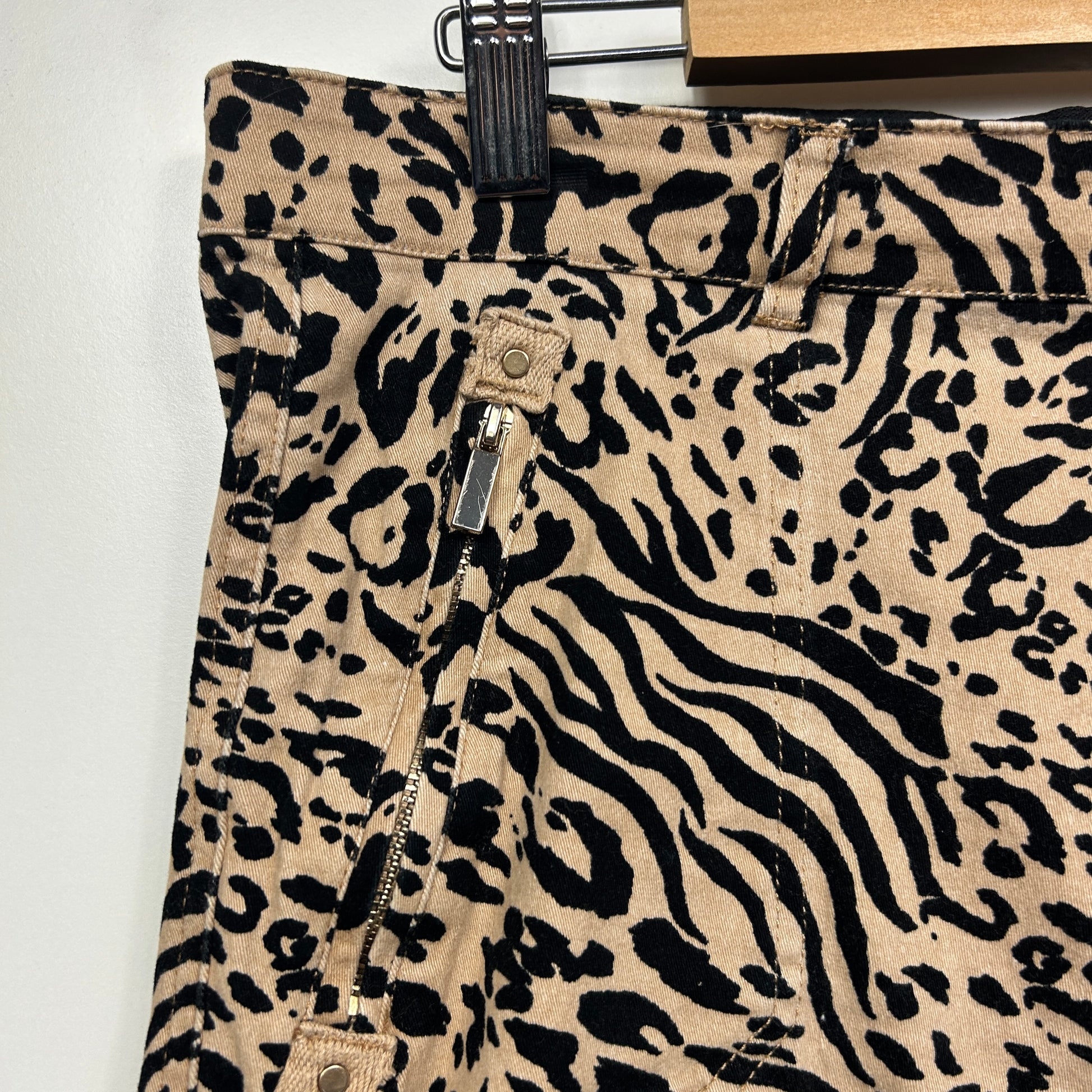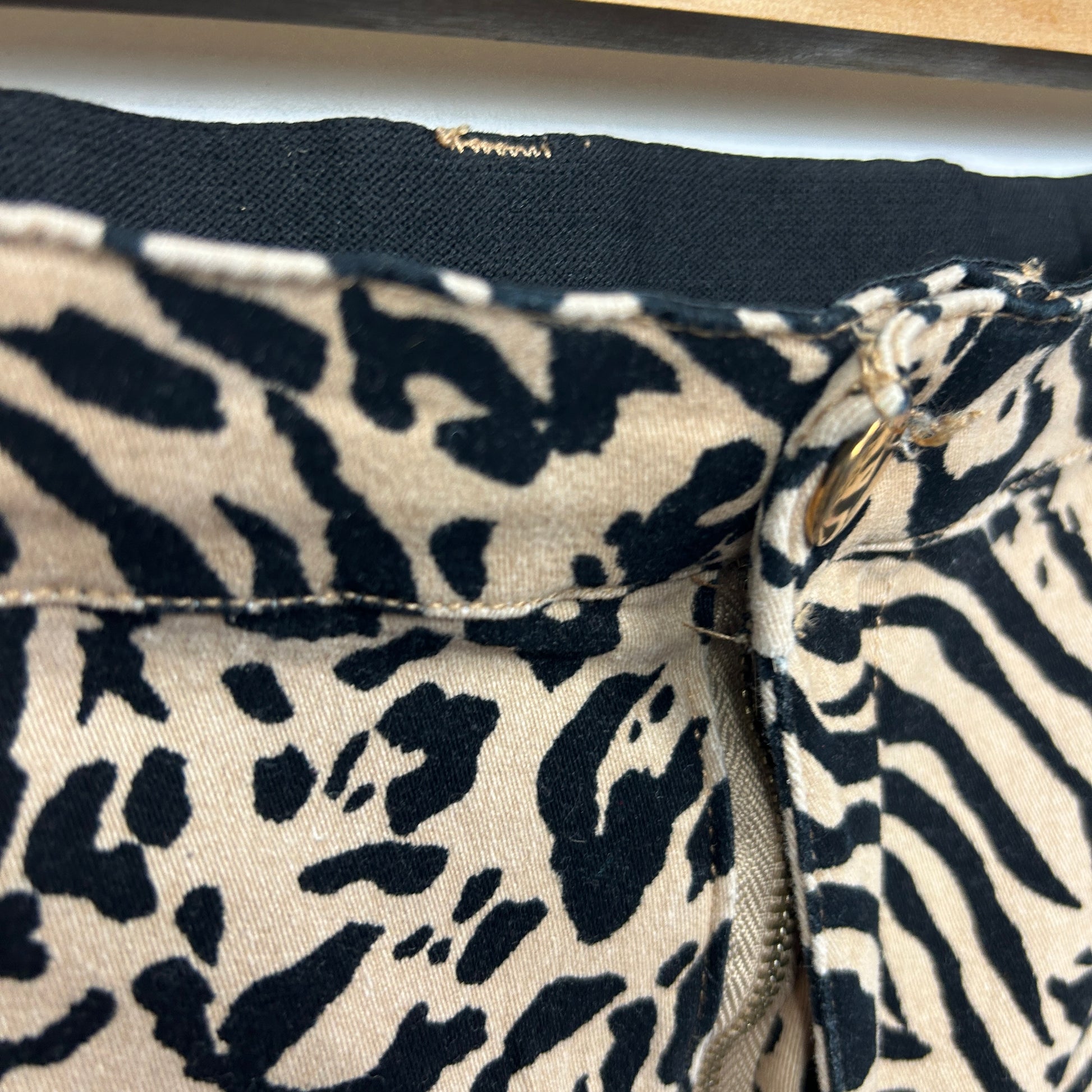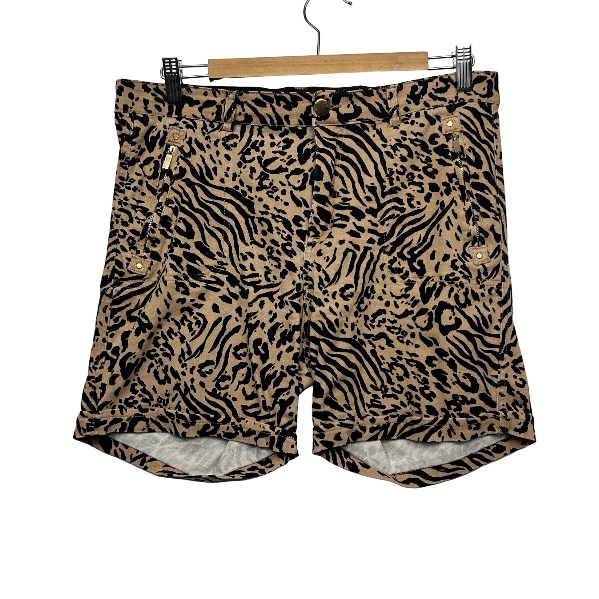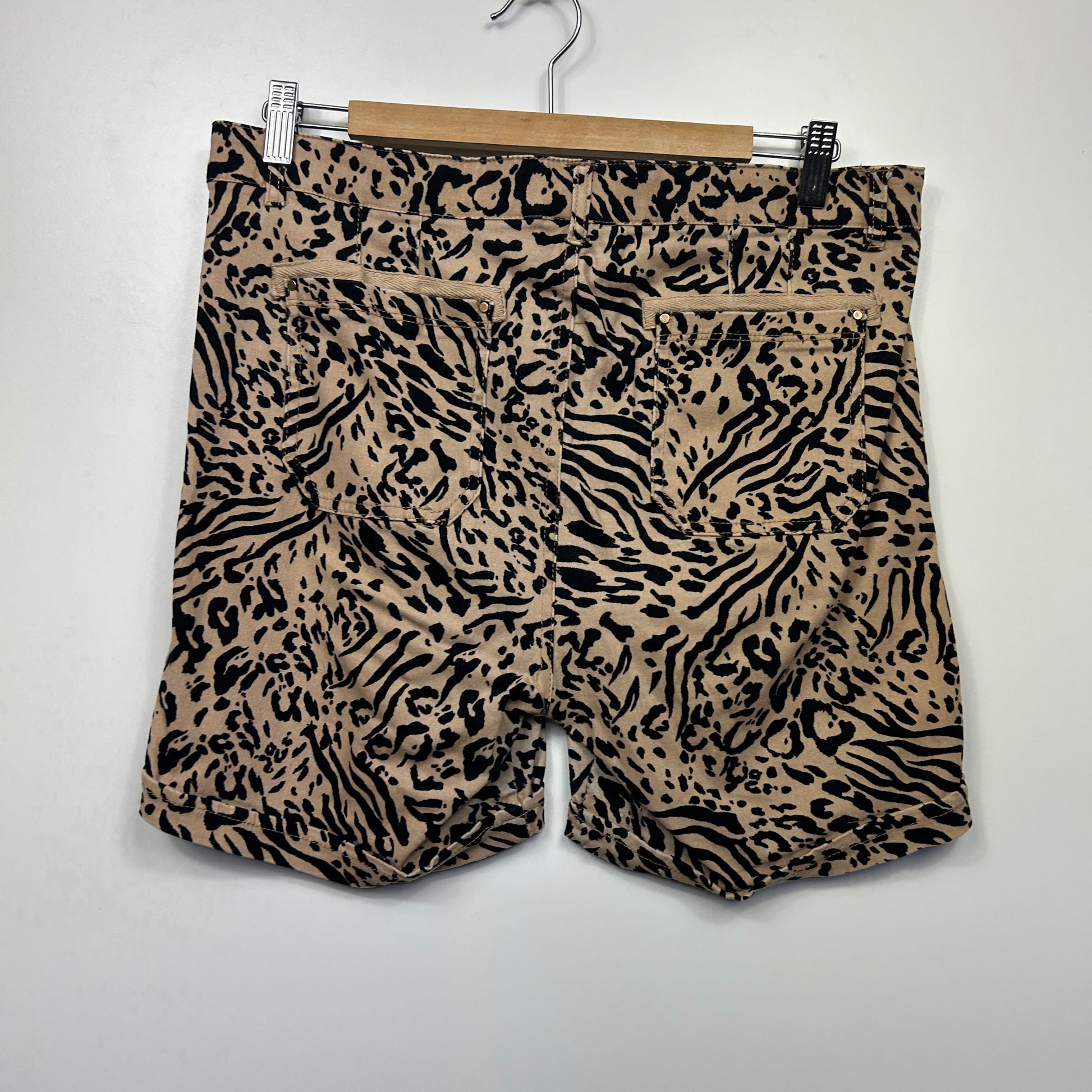 Rockmans Shorts Size 14 Beige Black Zebra Print Elastic Waist Zip Fly