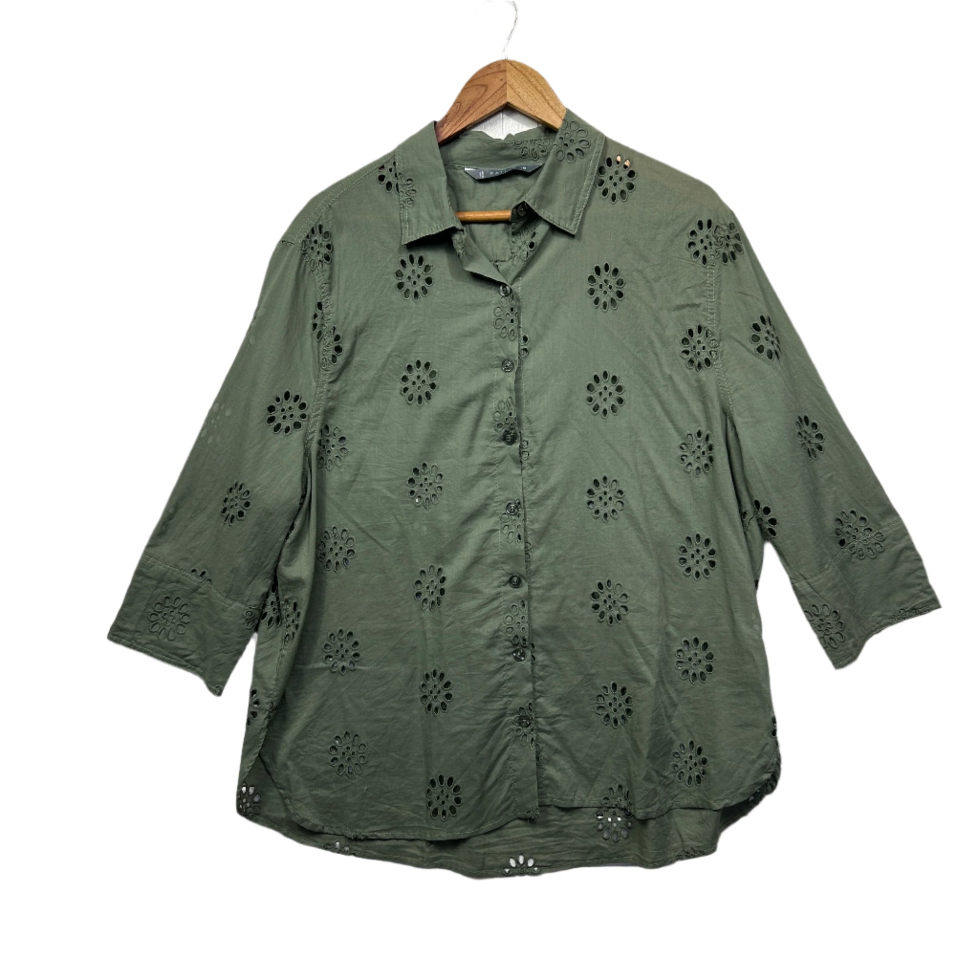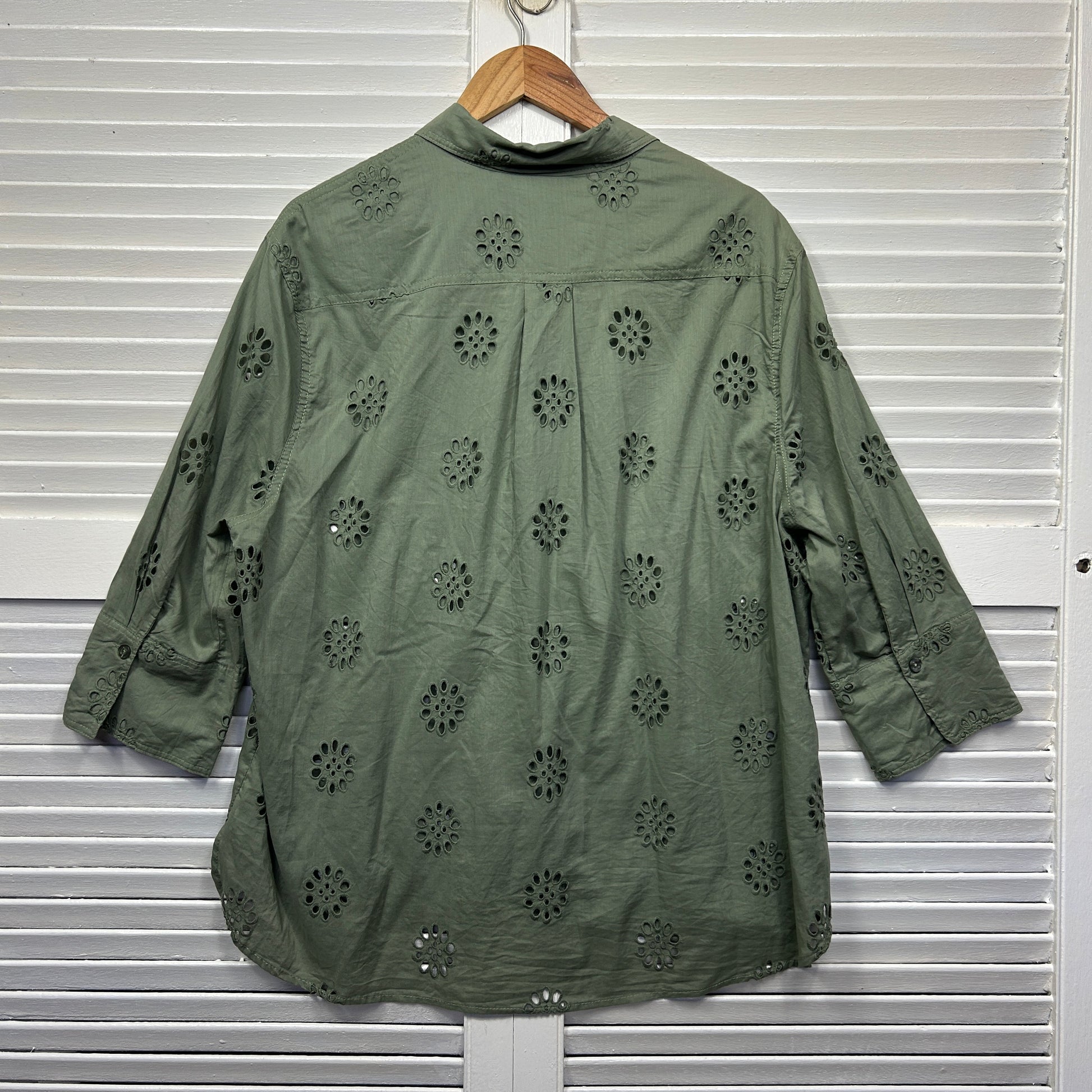 Katies Top Size 16 Olive Green Button Up 3/4 Sleeve