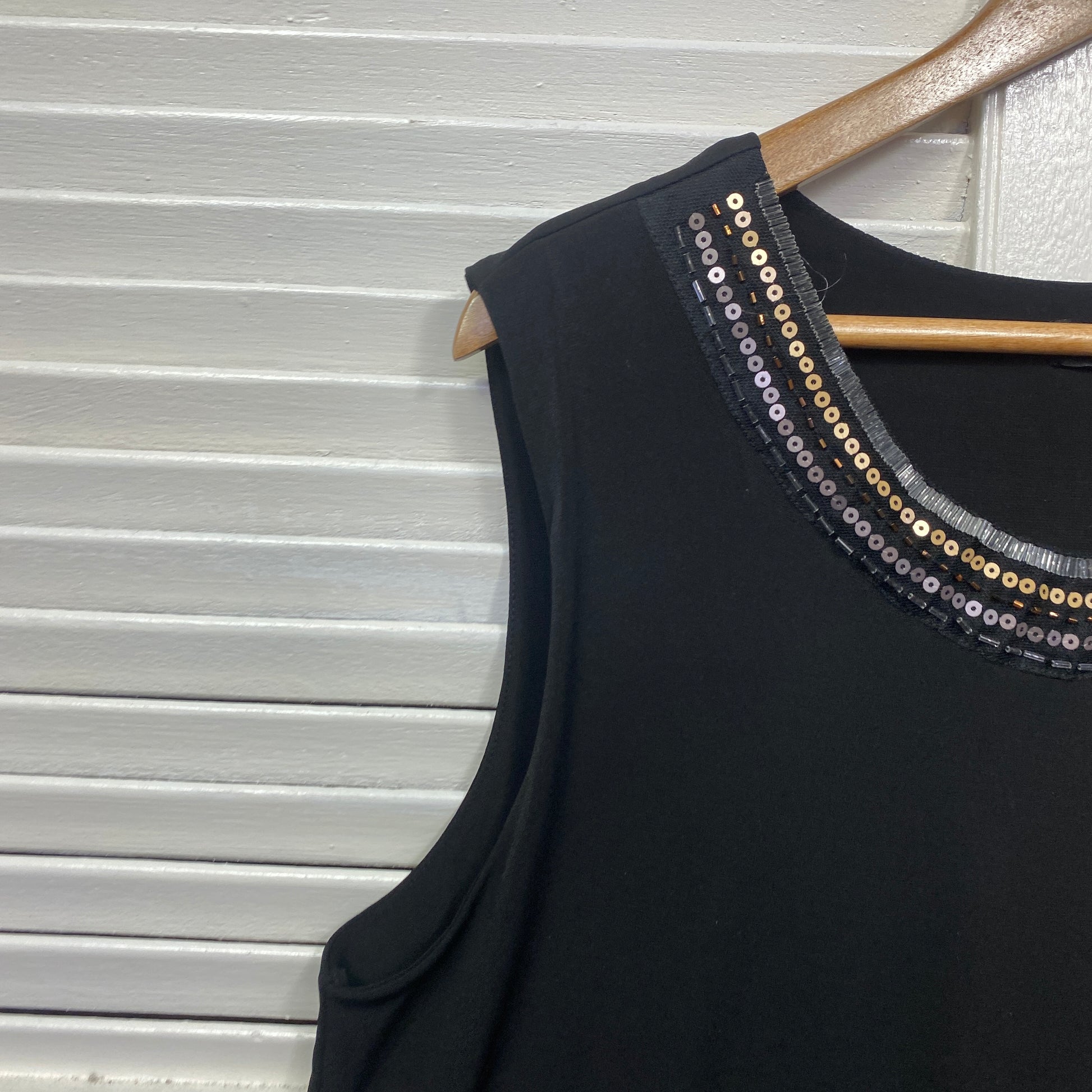 Liz Jordan Top Size XL Black Sleeveless Beaded Cocktail