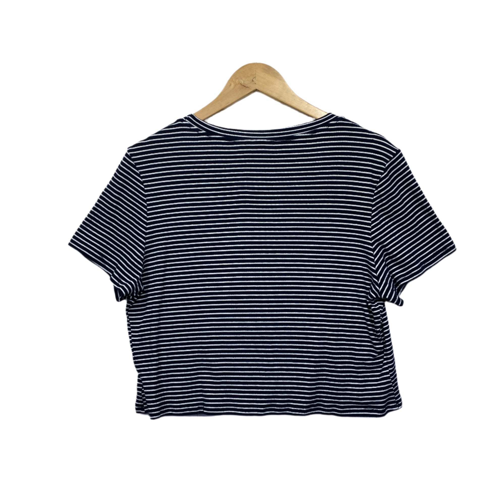 Cider Crop Top Tshirt Size 16 18 3XL Black Striped Short Sleeve
