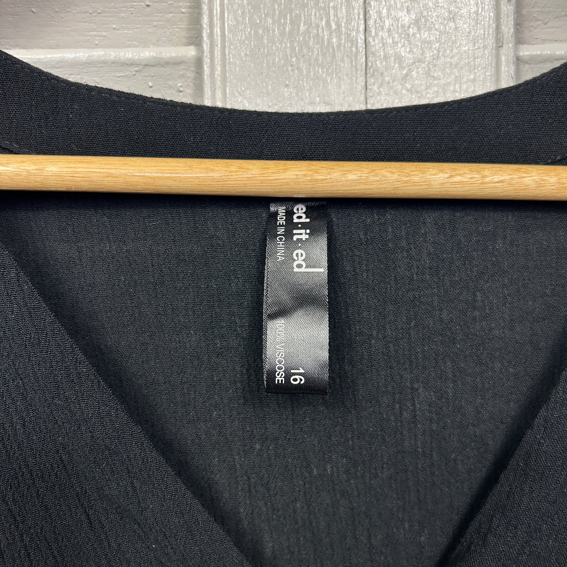 Edited Top Size 16 Black Short Sleeve V Neck Viscose