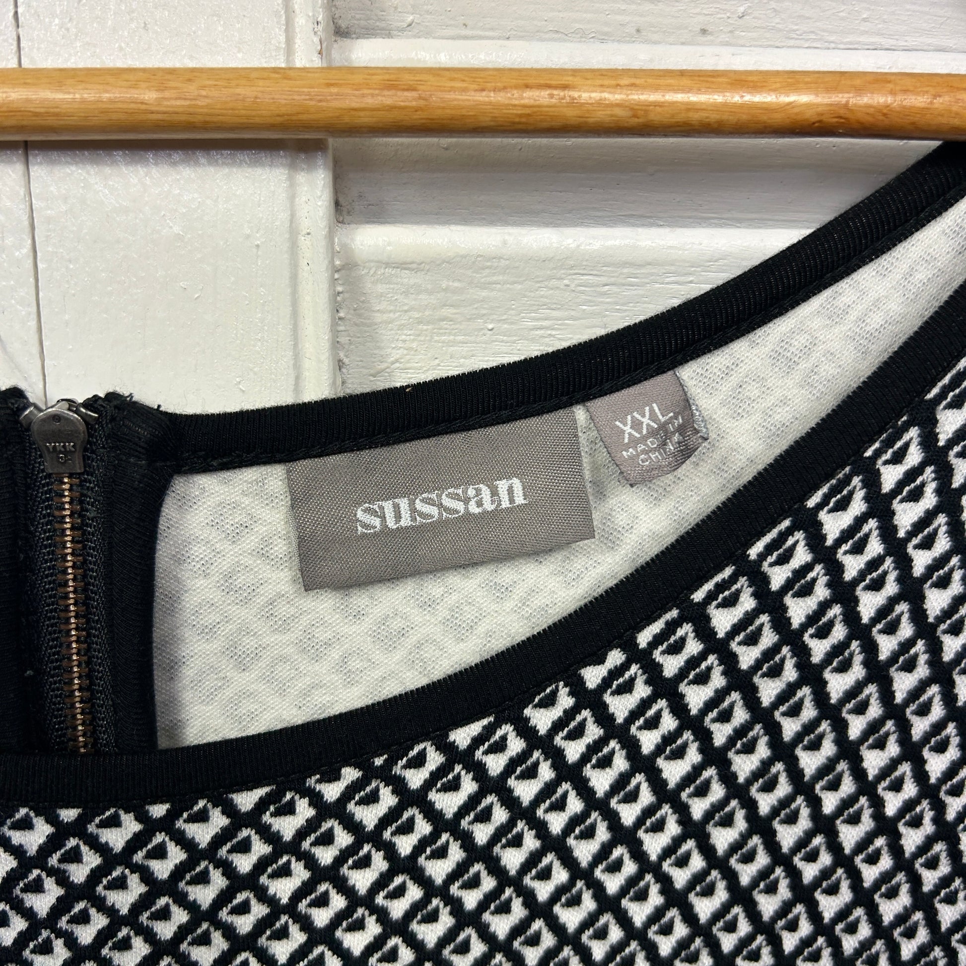 Sussan Dress Size 2XL 16 18 Black White Viscose Cotton Blend Short Sleeve