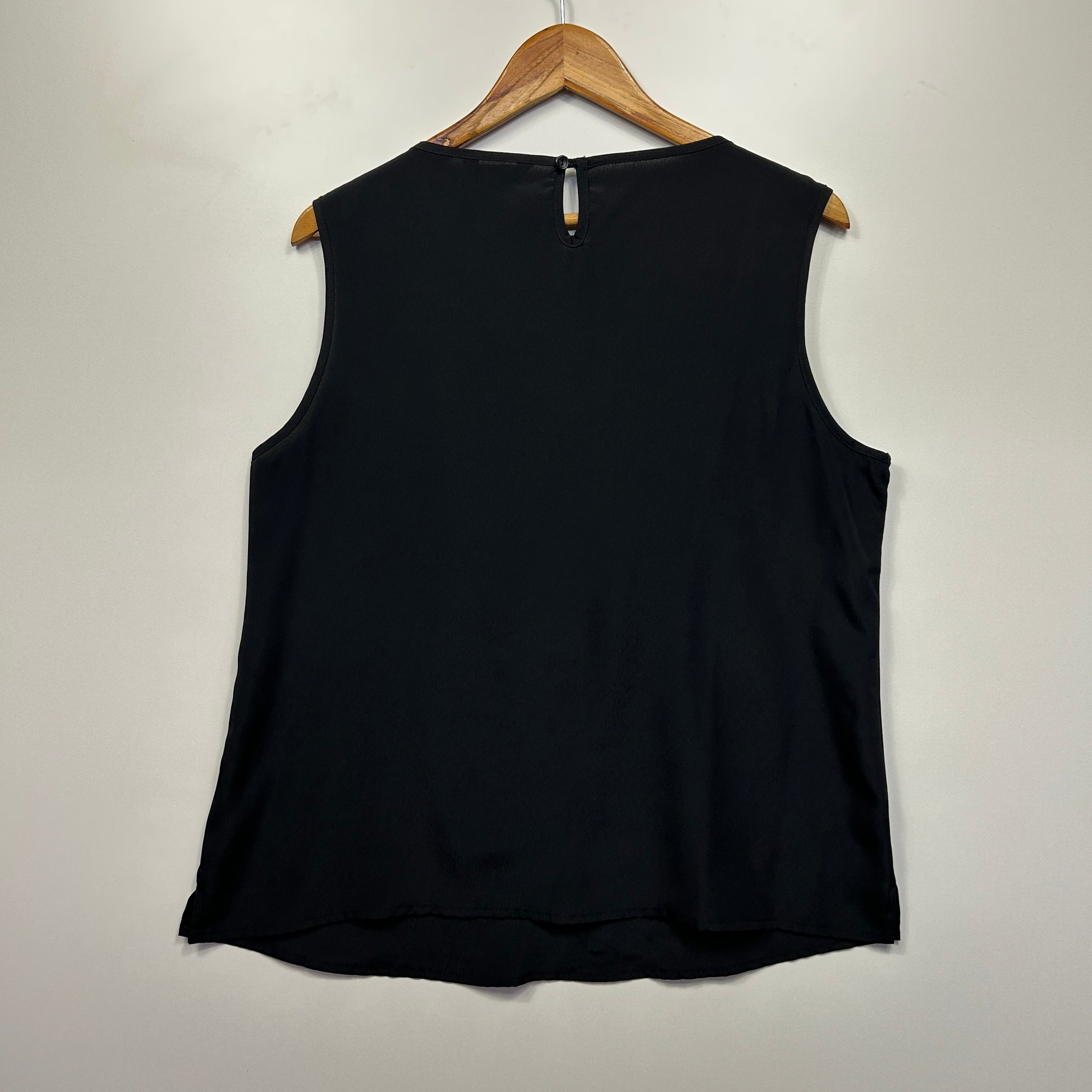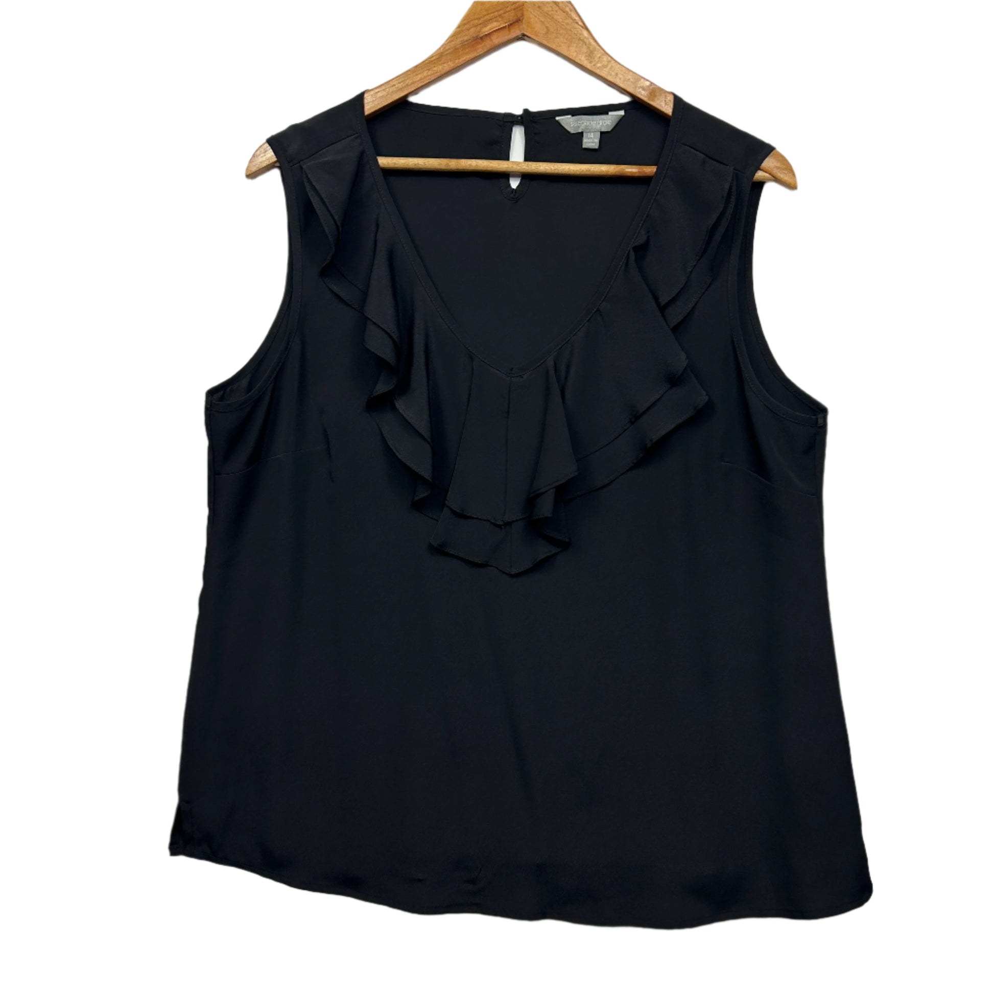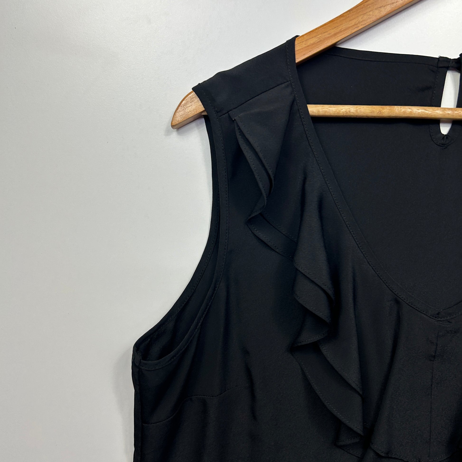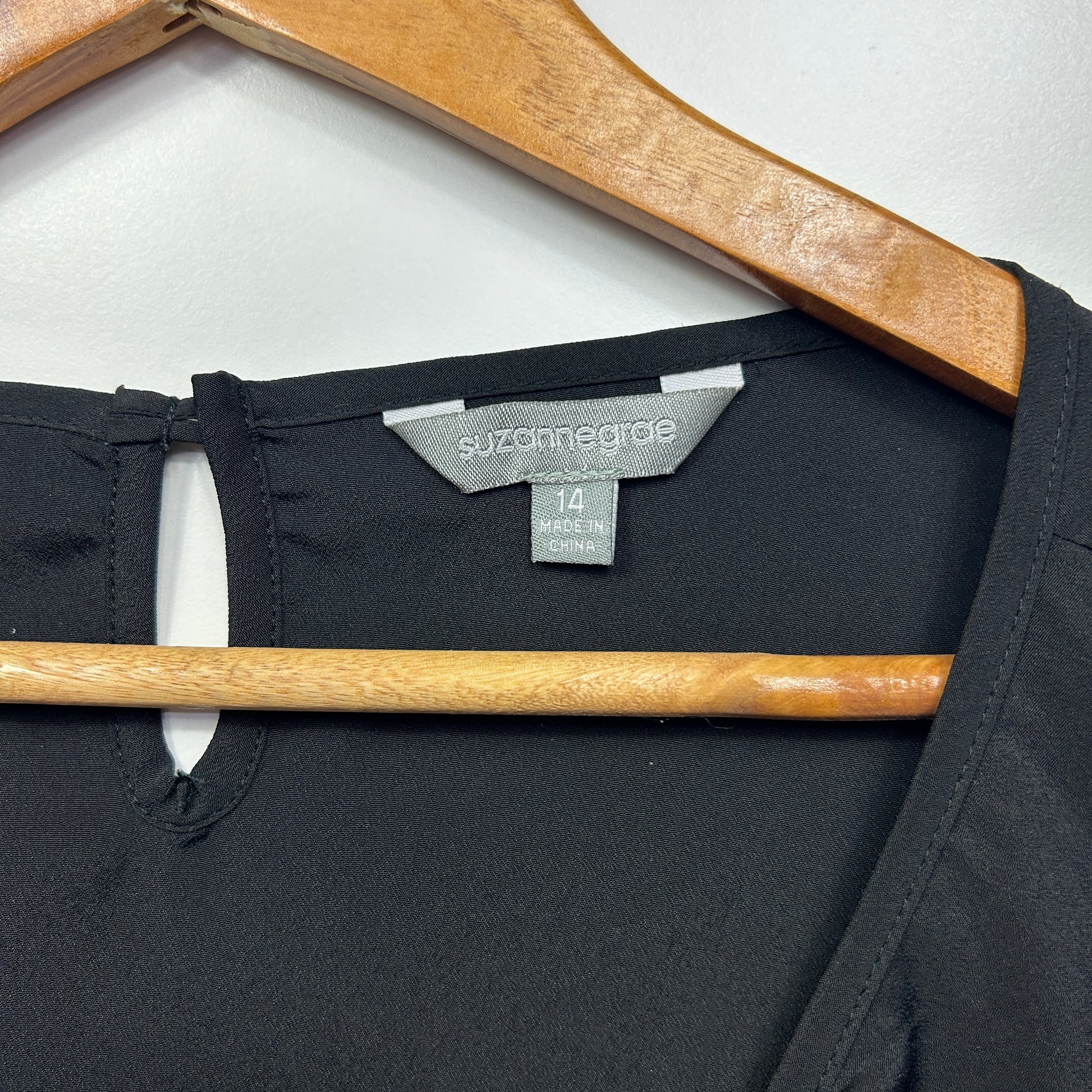 Suzanne Grae Top Size 14 Black Short Sleeve Ruffle