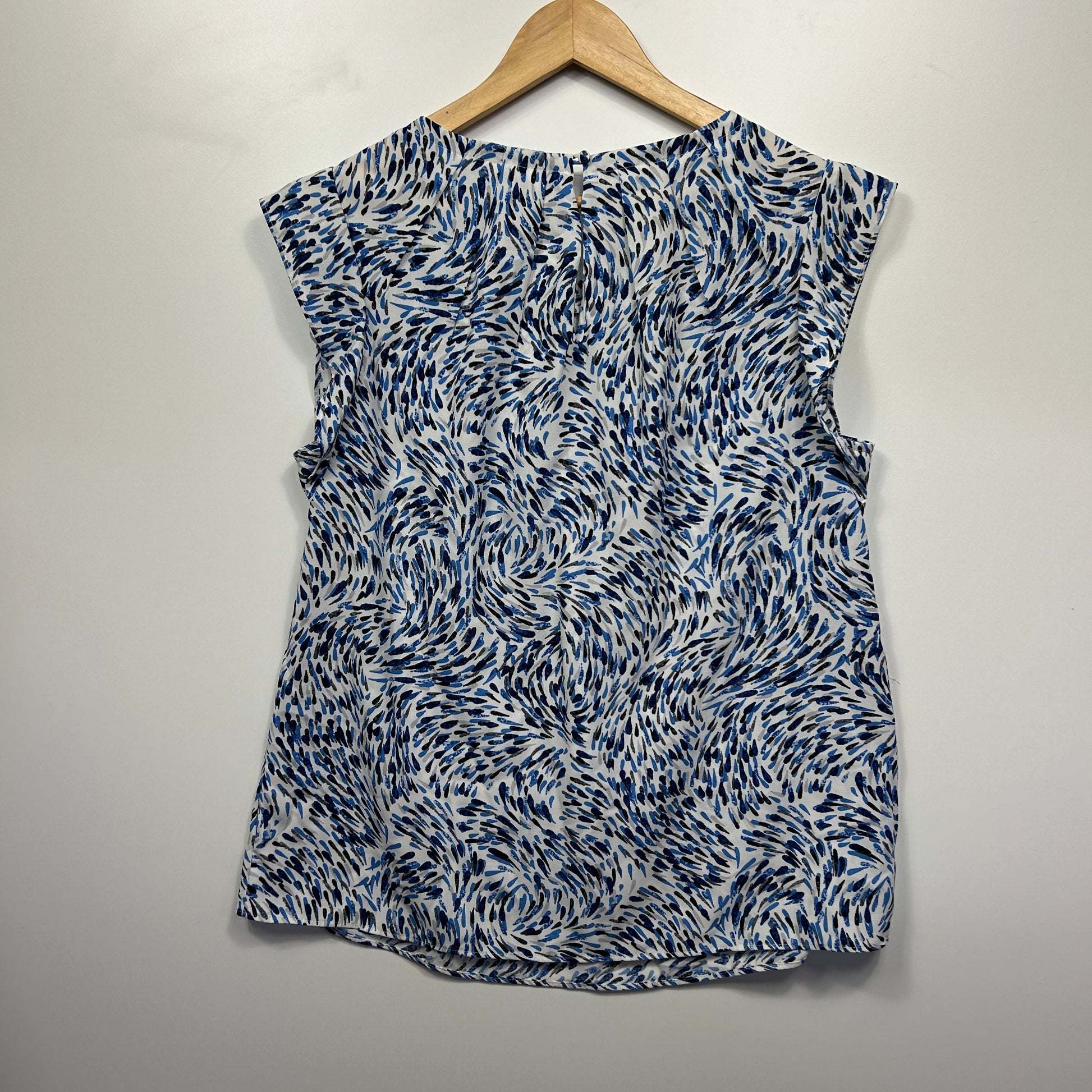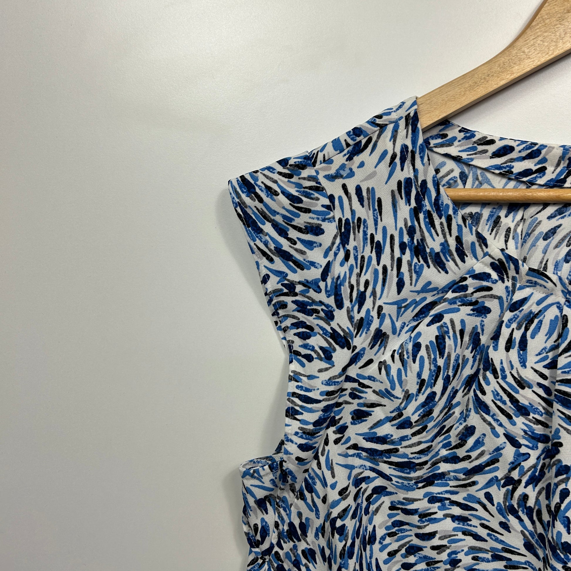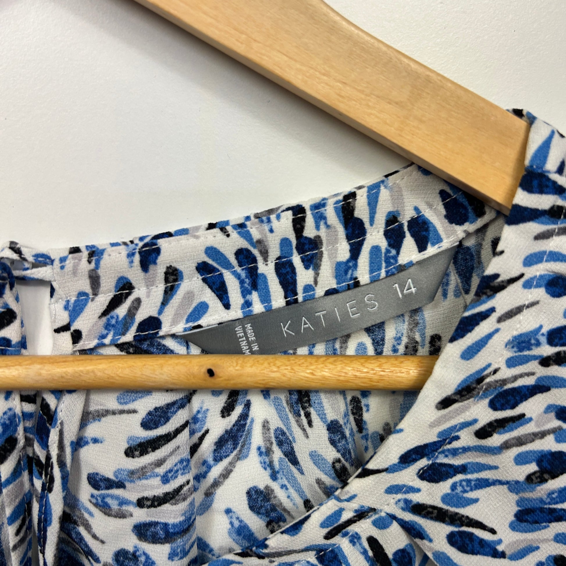 Katies Top Size 14 Sleeveless Blue Black White Pleated