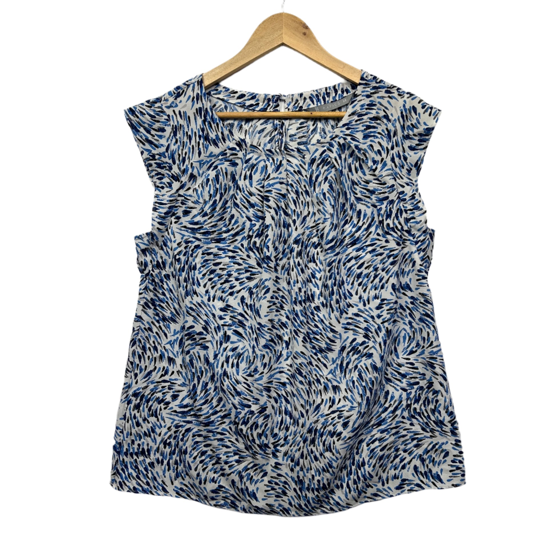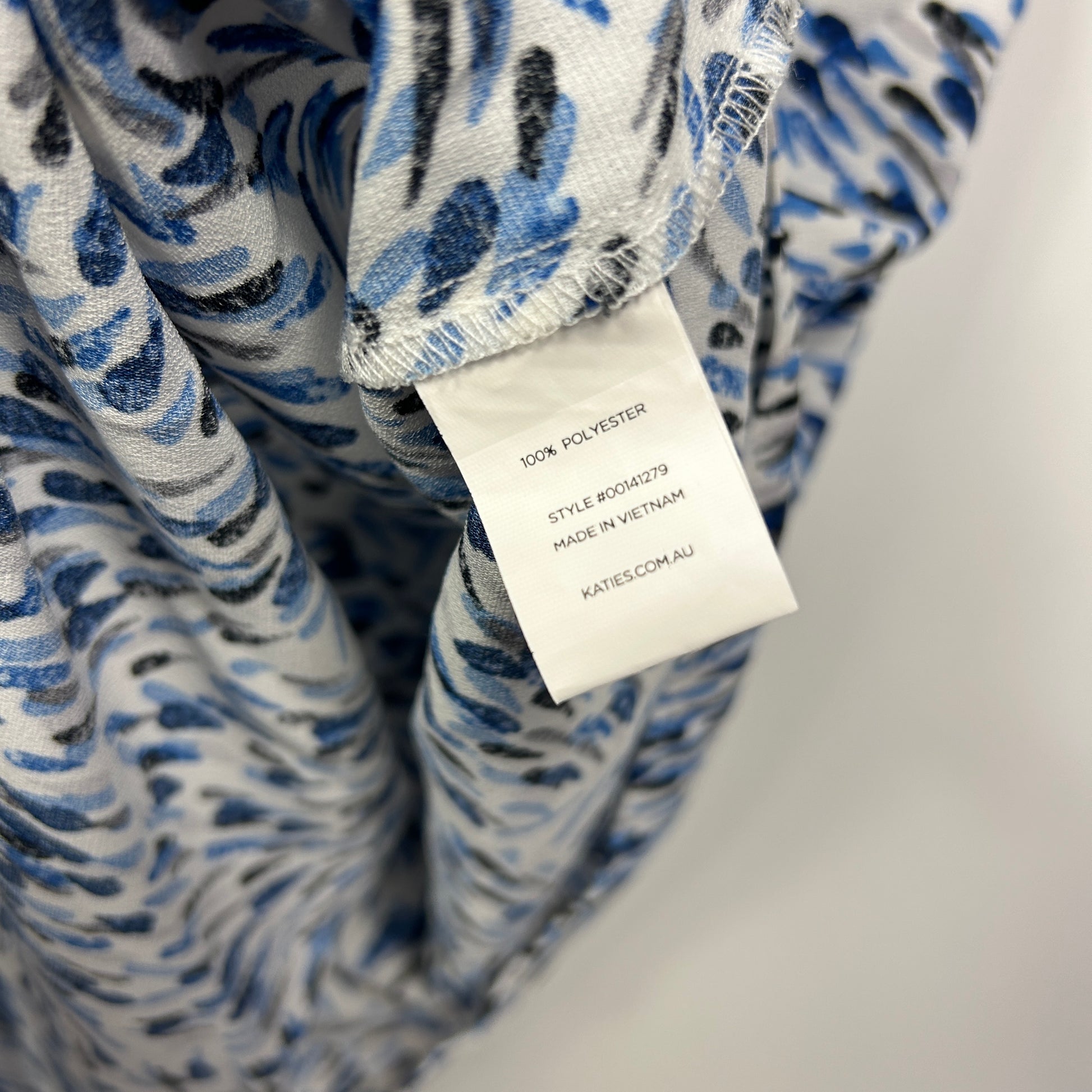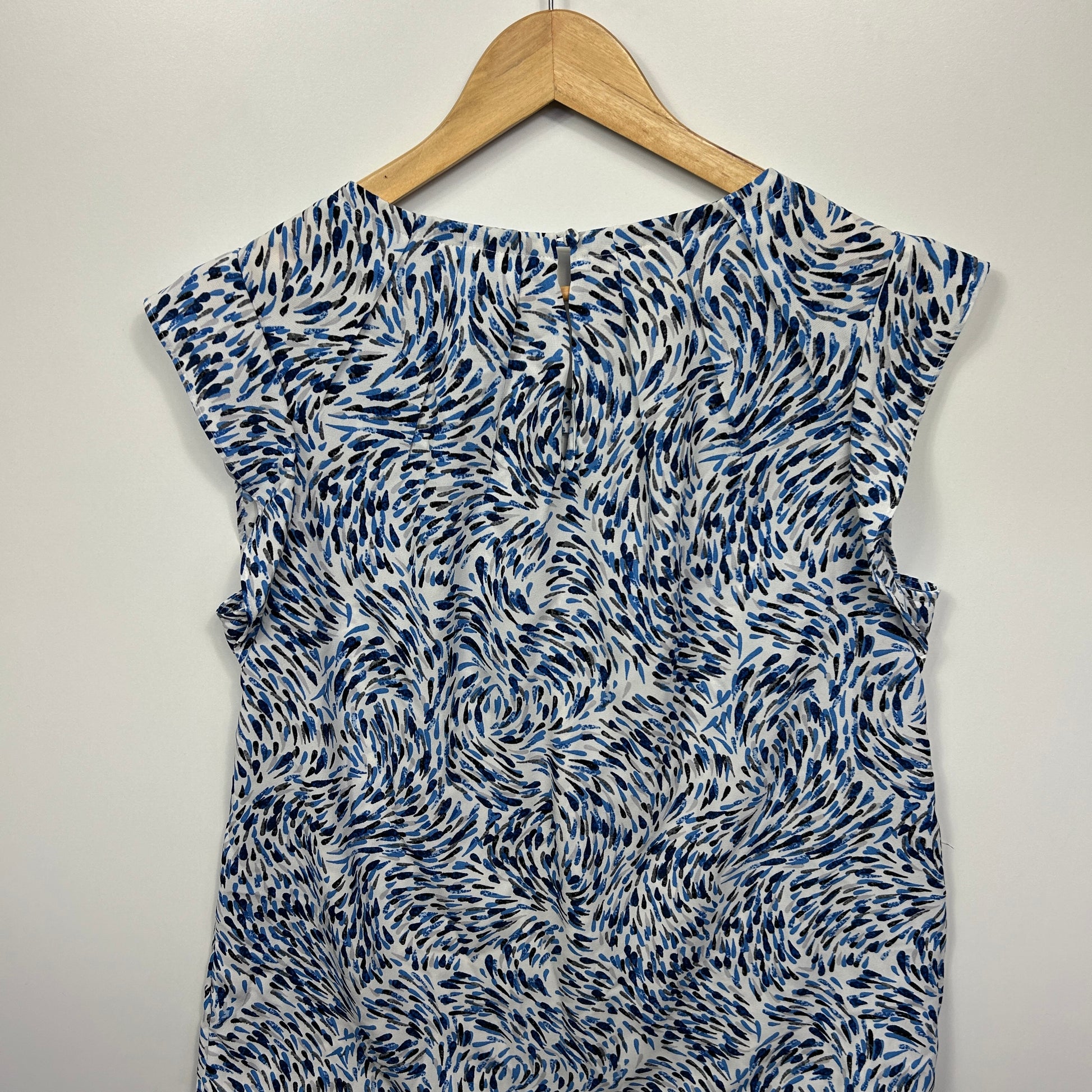 Katies Top Size 14 Sleeveless Blue Black White Pleated