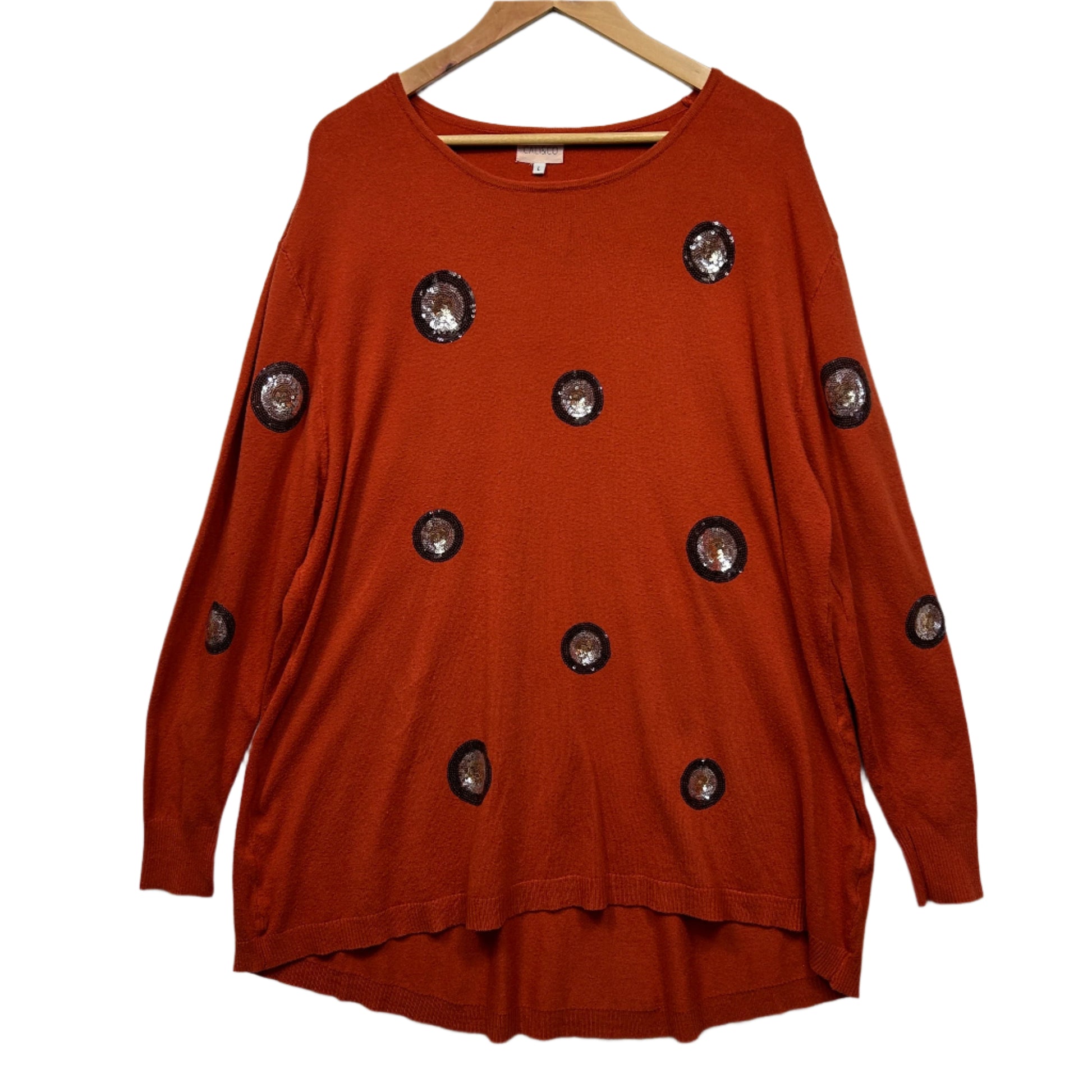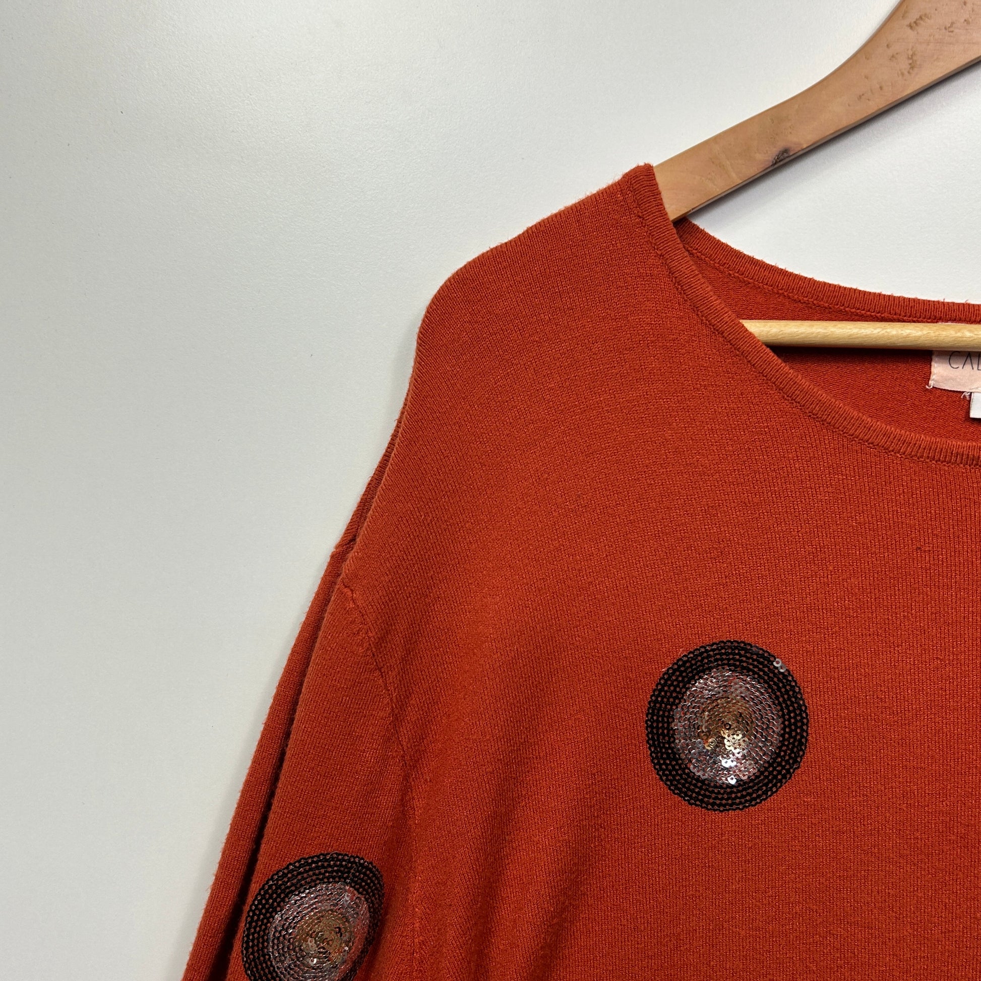 Cali & Co Wool Blend Jumper Size Large Rust Sequins Long Sleeve Knit