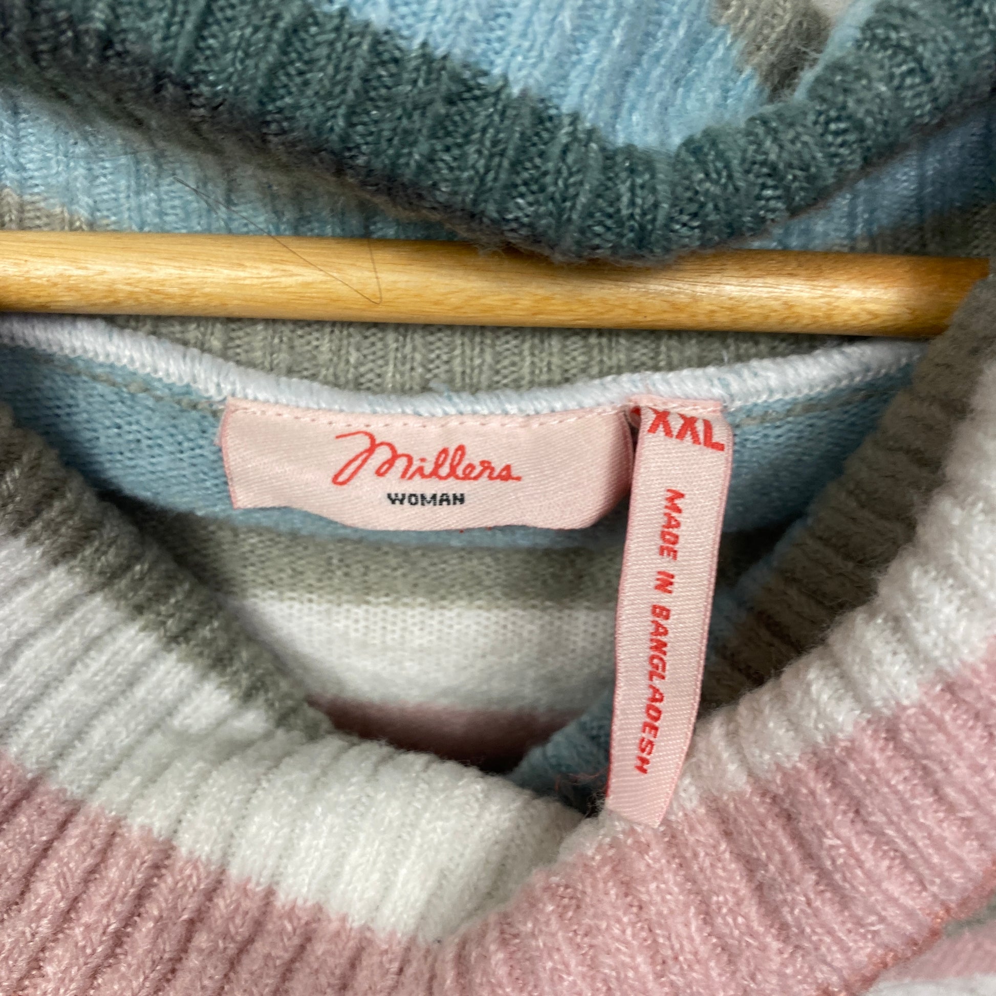 Millers Jumper Size 2XL 18 Multicoloured Striped Cowl Neckline