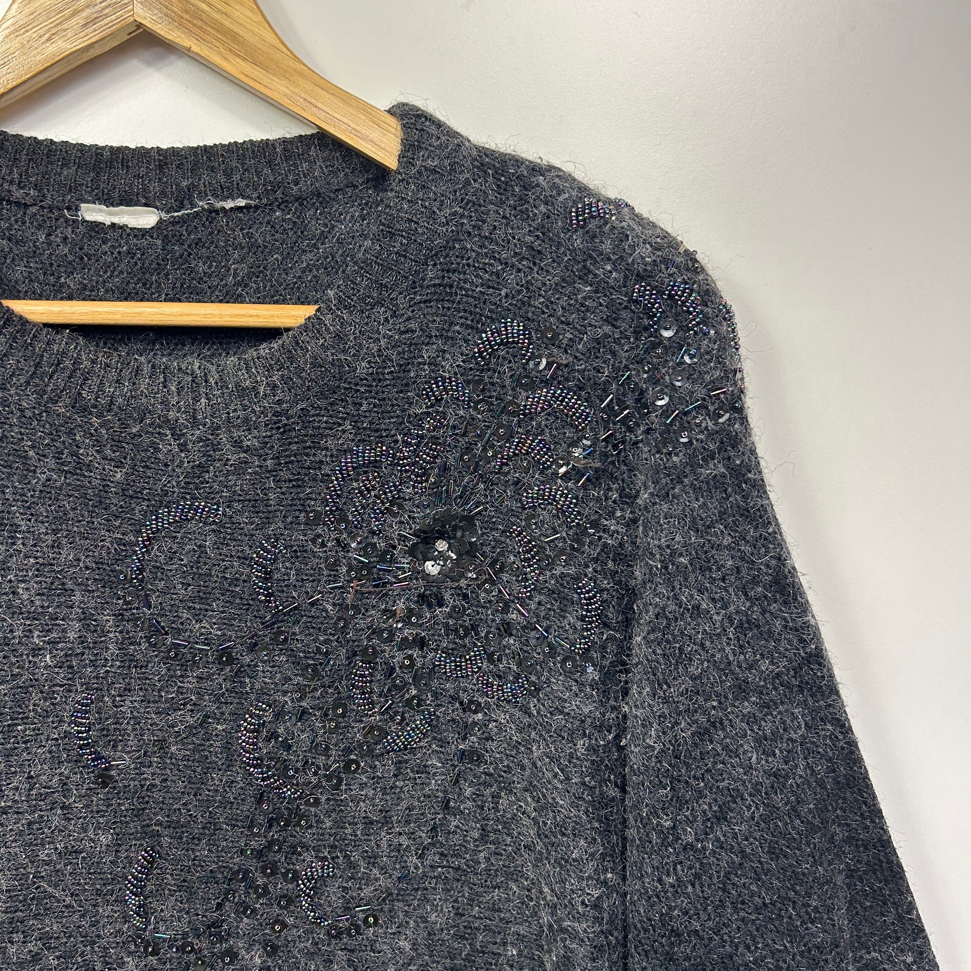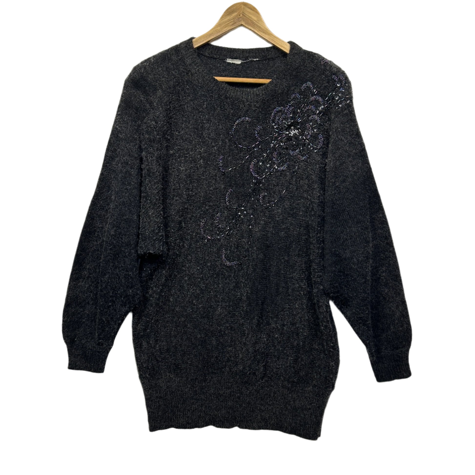 Vintage Jumper Size 14 Large? Grey Long Sleeve Sequins