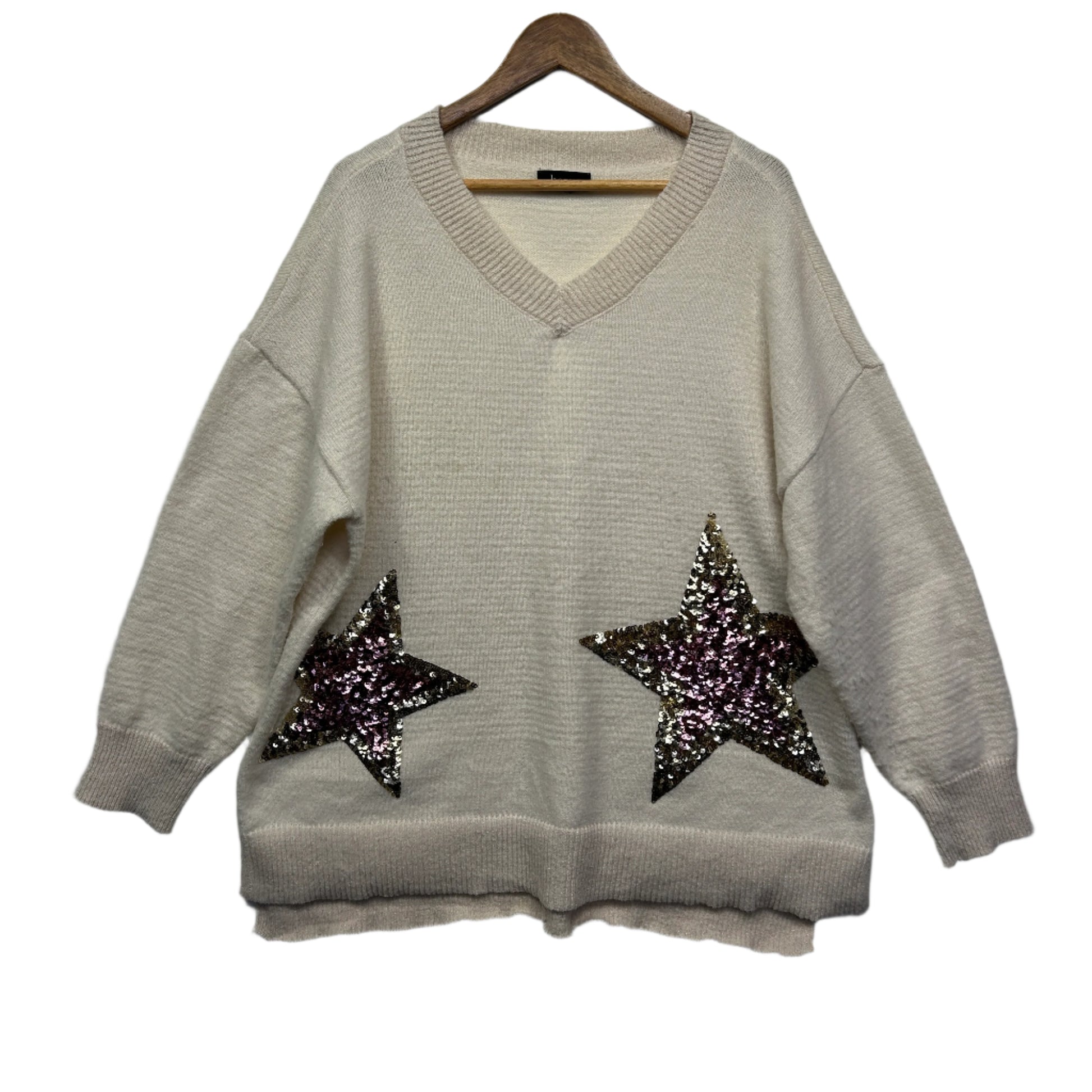 beme Jumper Size 16 18 Cream Stars Sequins Long Sleeve