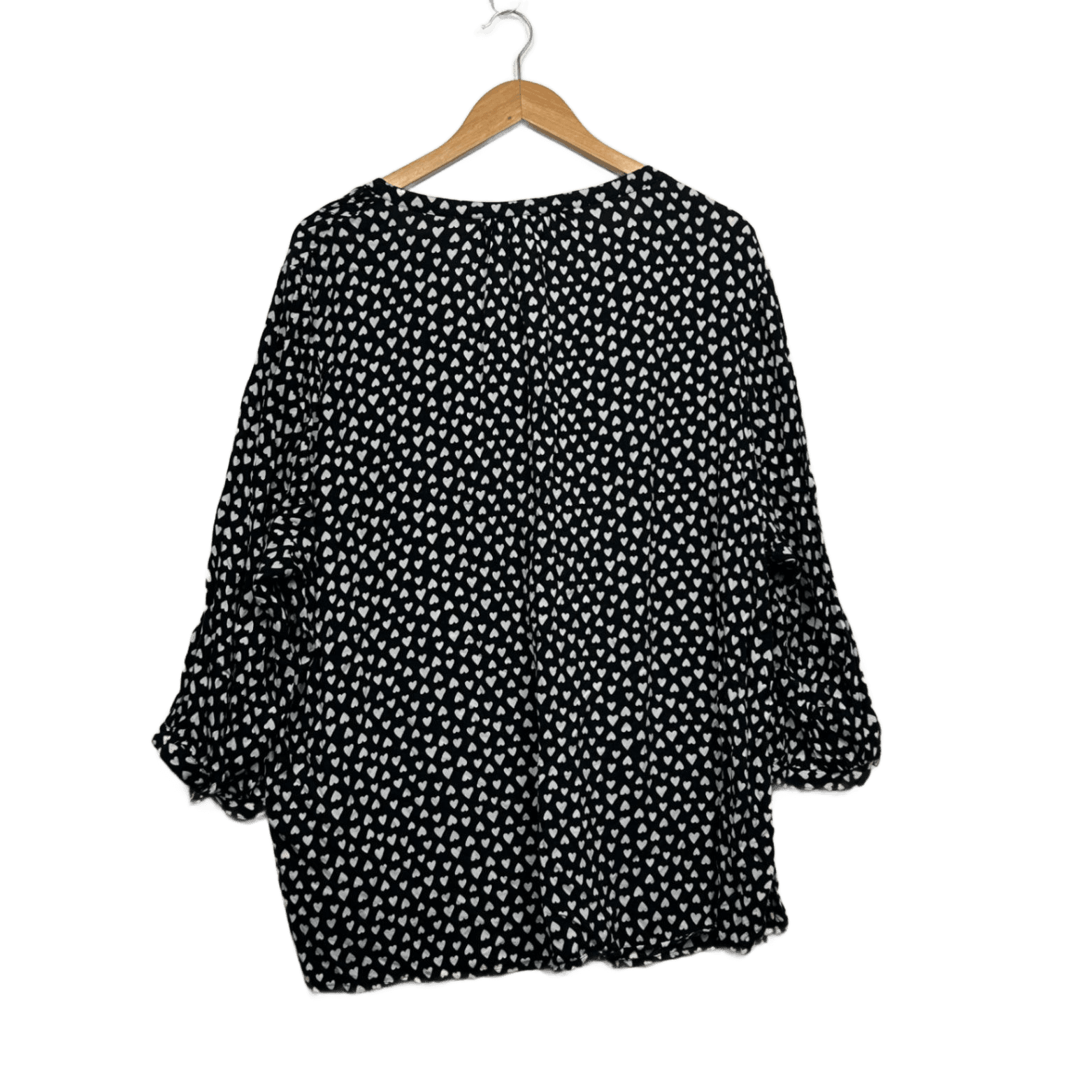 Alexia Black White Heart Print Viscose Long Sleeve Fit Blouse Size 24