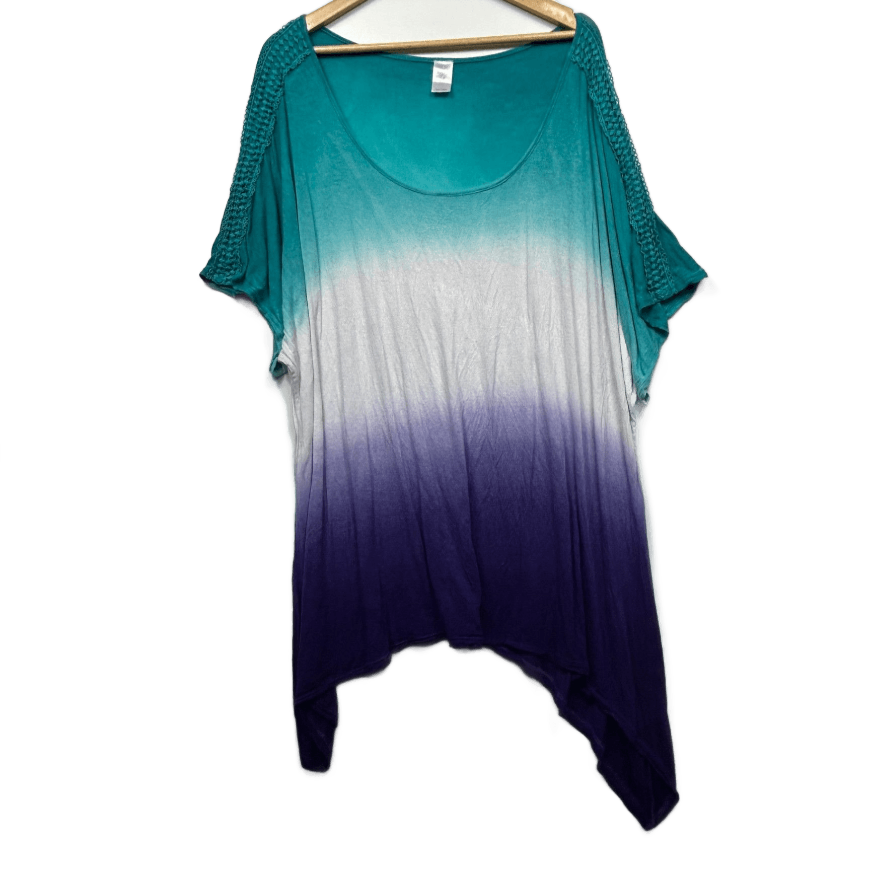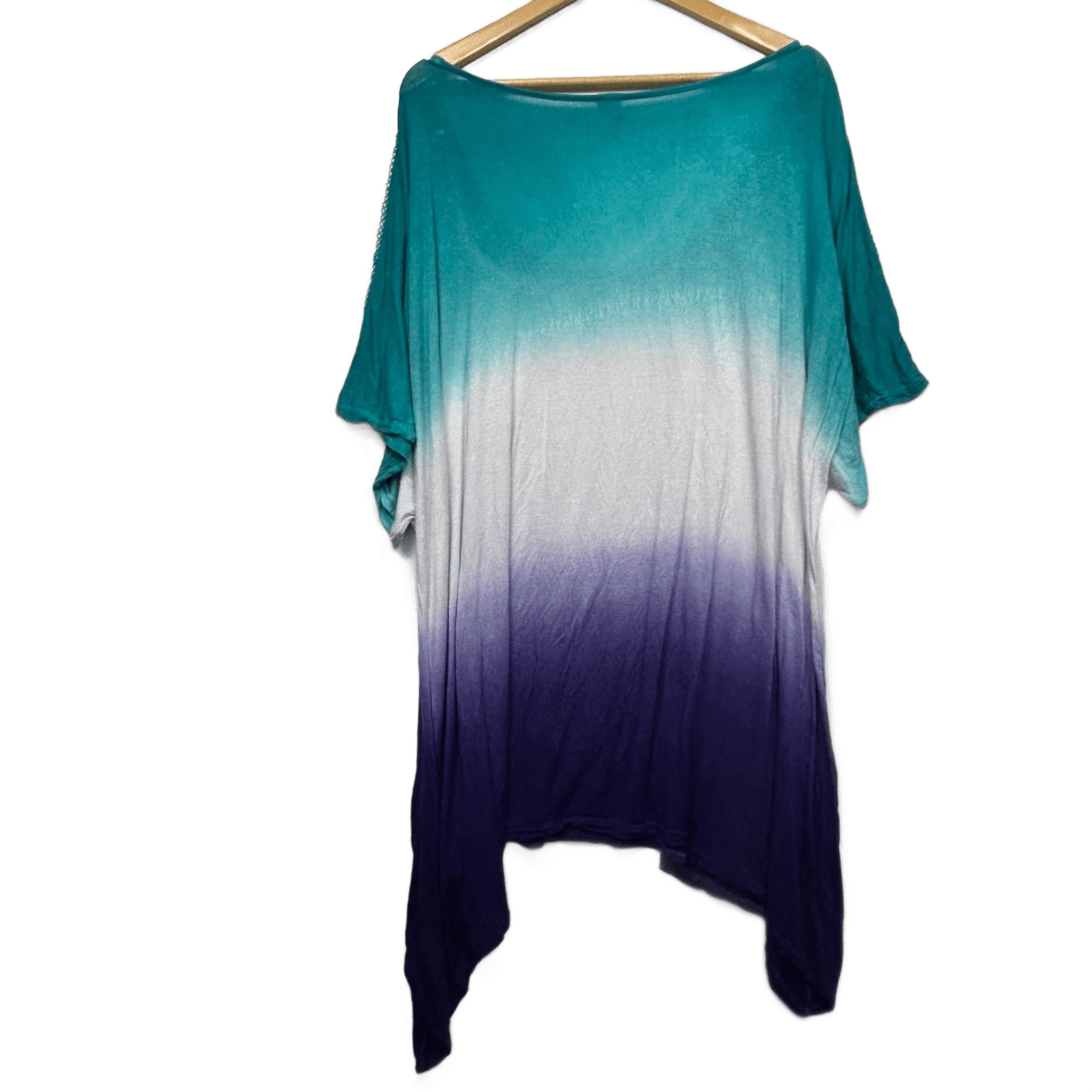 Alexia Turquoise Purple White Ombre Viscose Short Sleeve Tunic Top Size 26