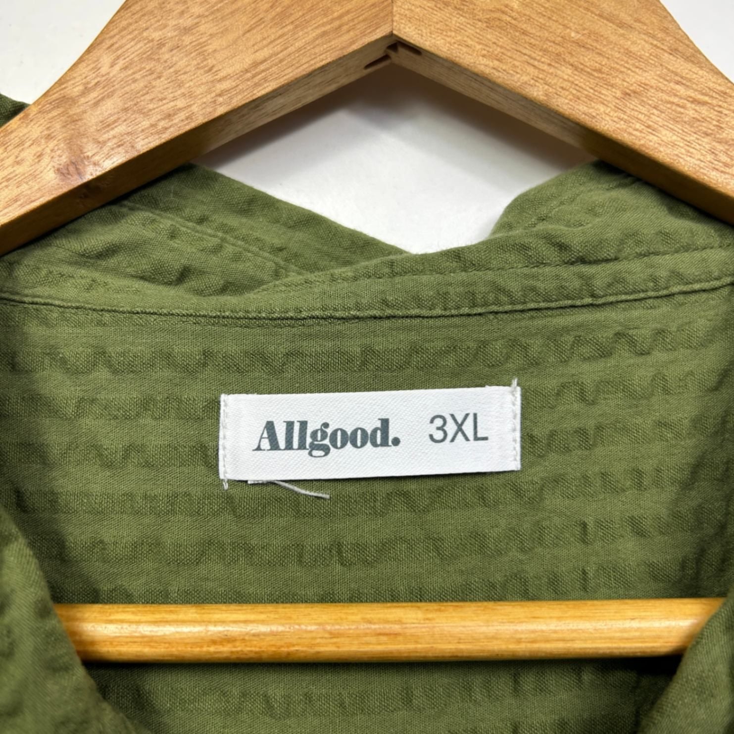 Allgood Mens Olive Green Cotton Textured Short Sleeve Button-Up Shirt 3XL