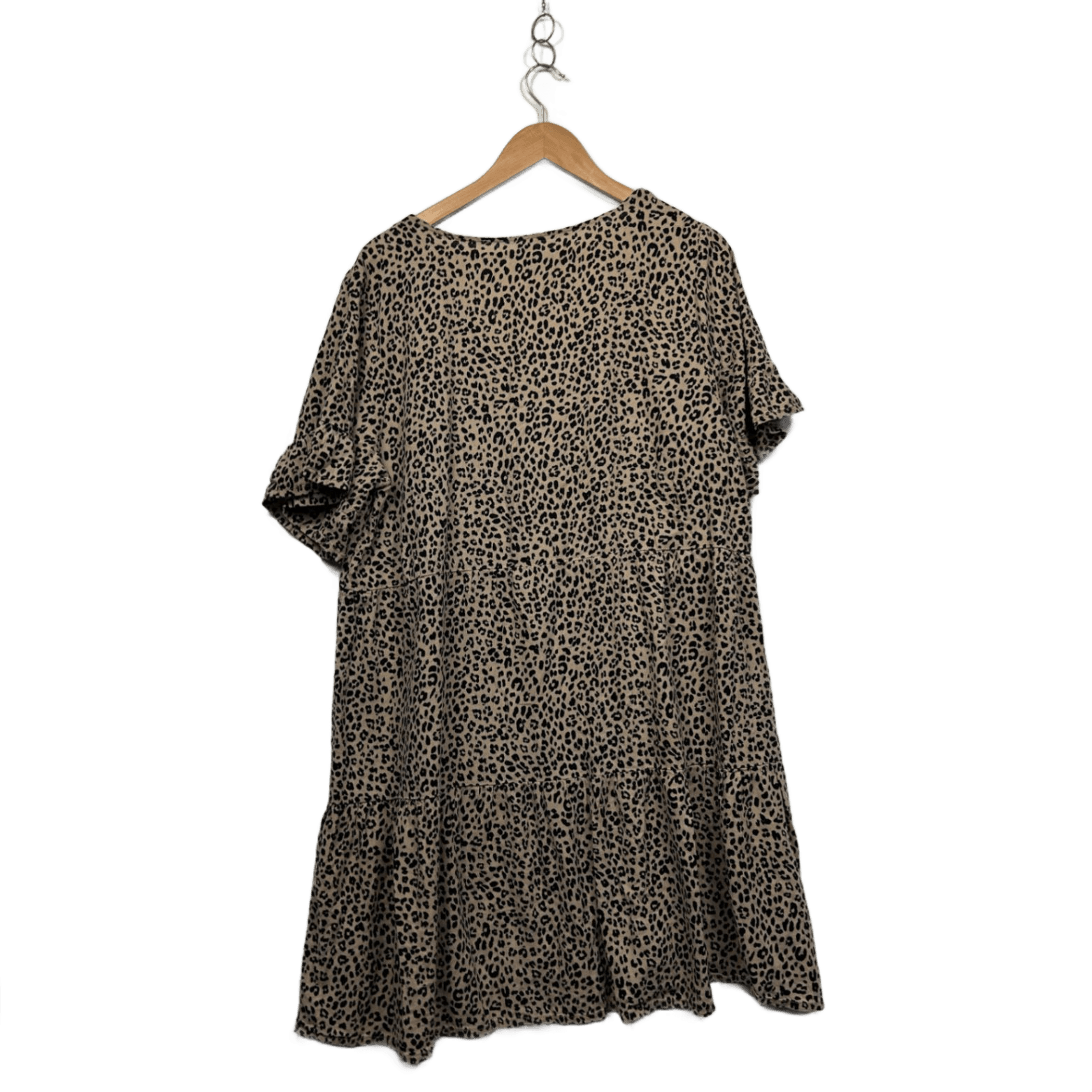 Anko Beige Viscose Blend Animal Print Short Sleeve Smock Tiered Dress Size 16