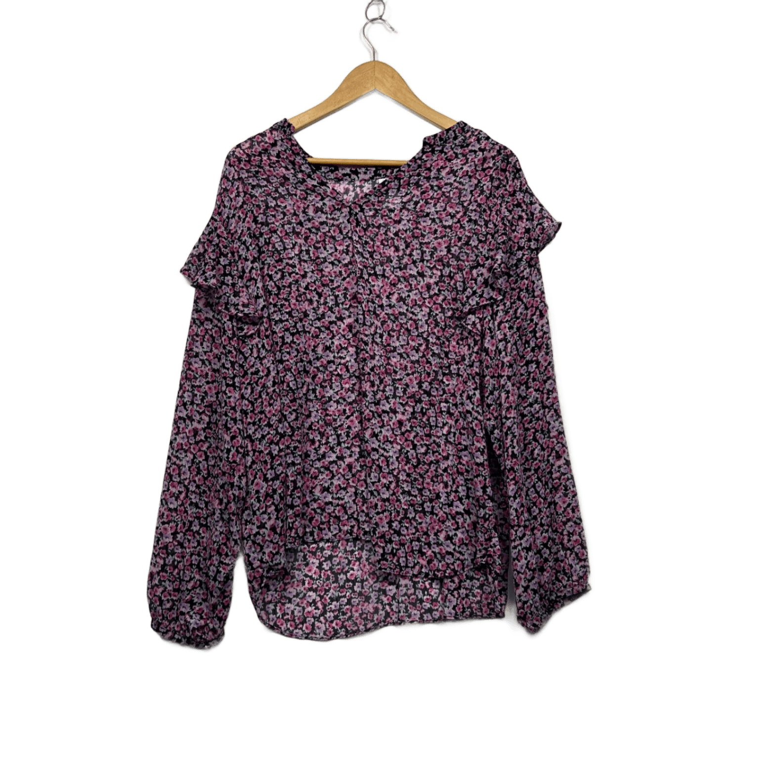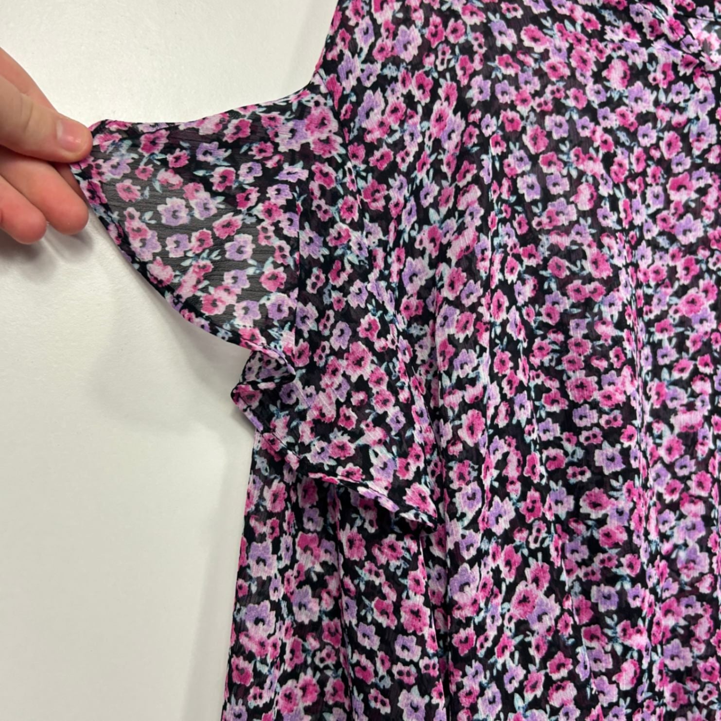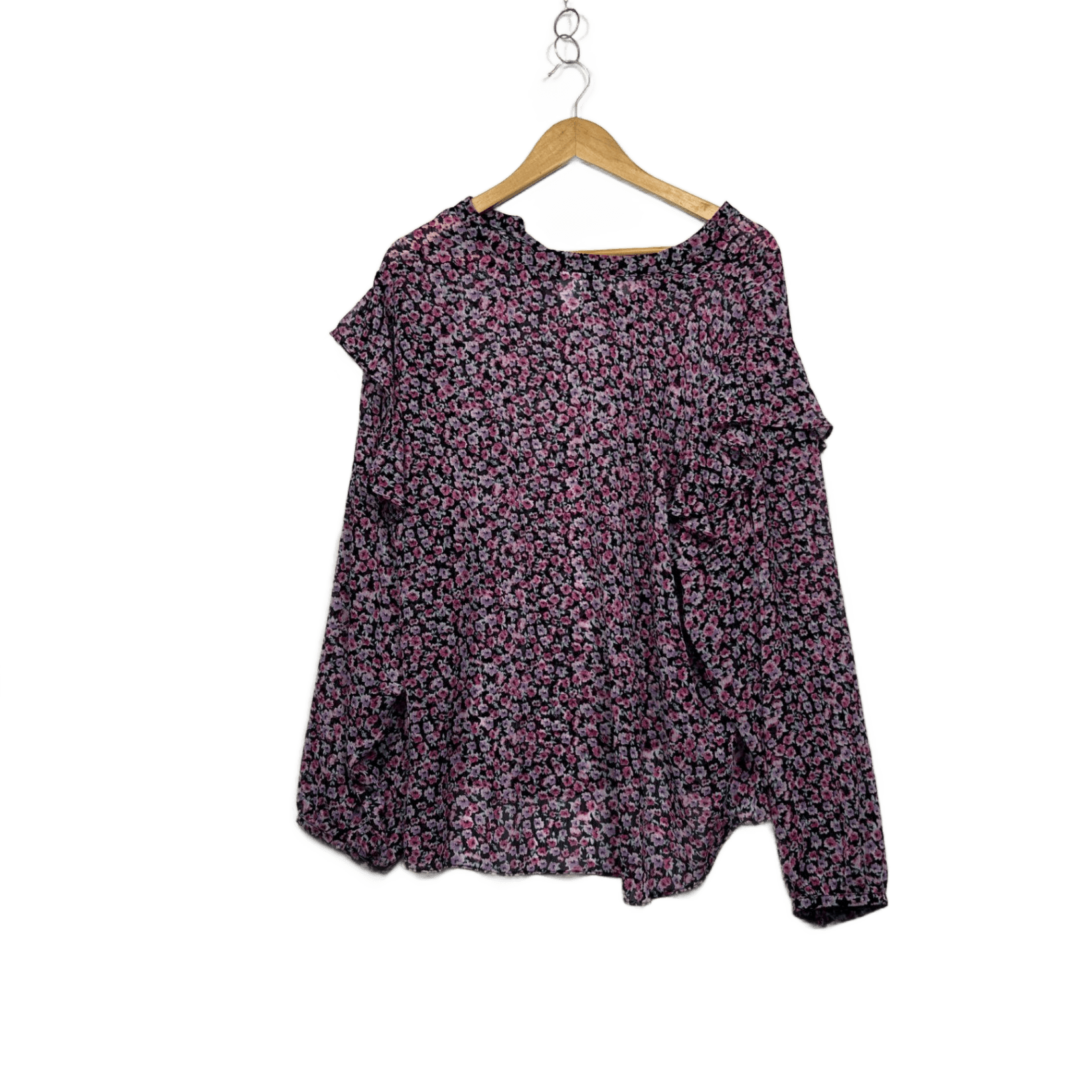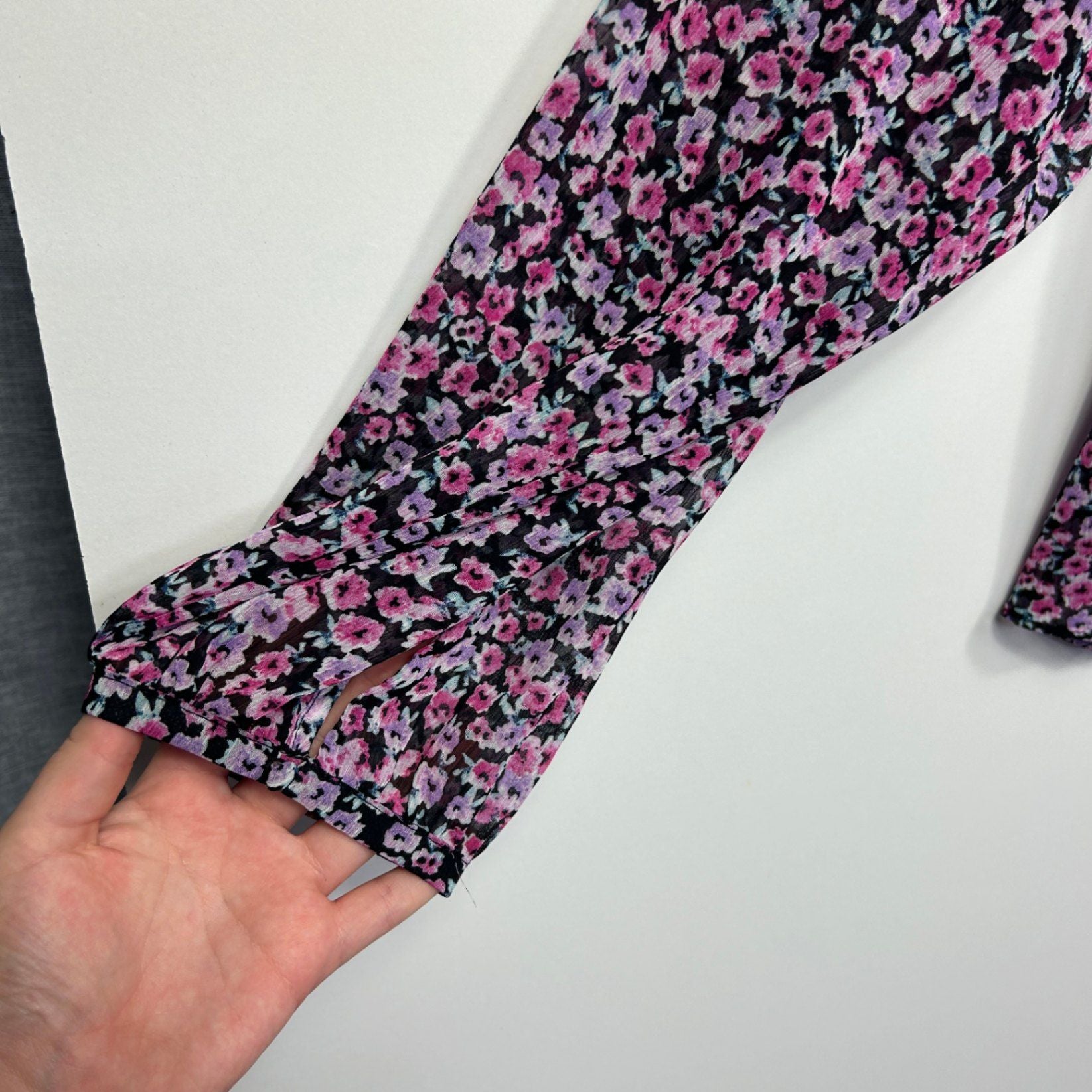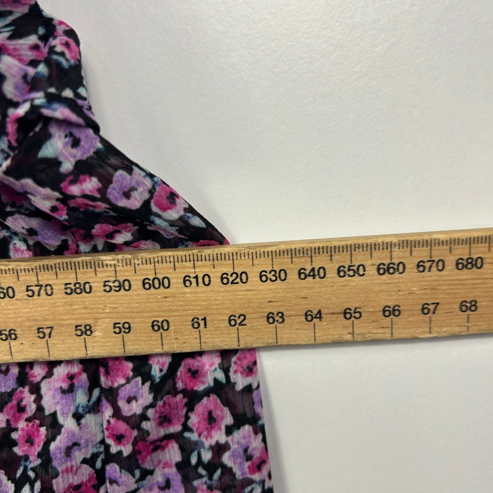 Anko Black Pink Floral Long Sleeve Ruffle Blouse Top Size 18