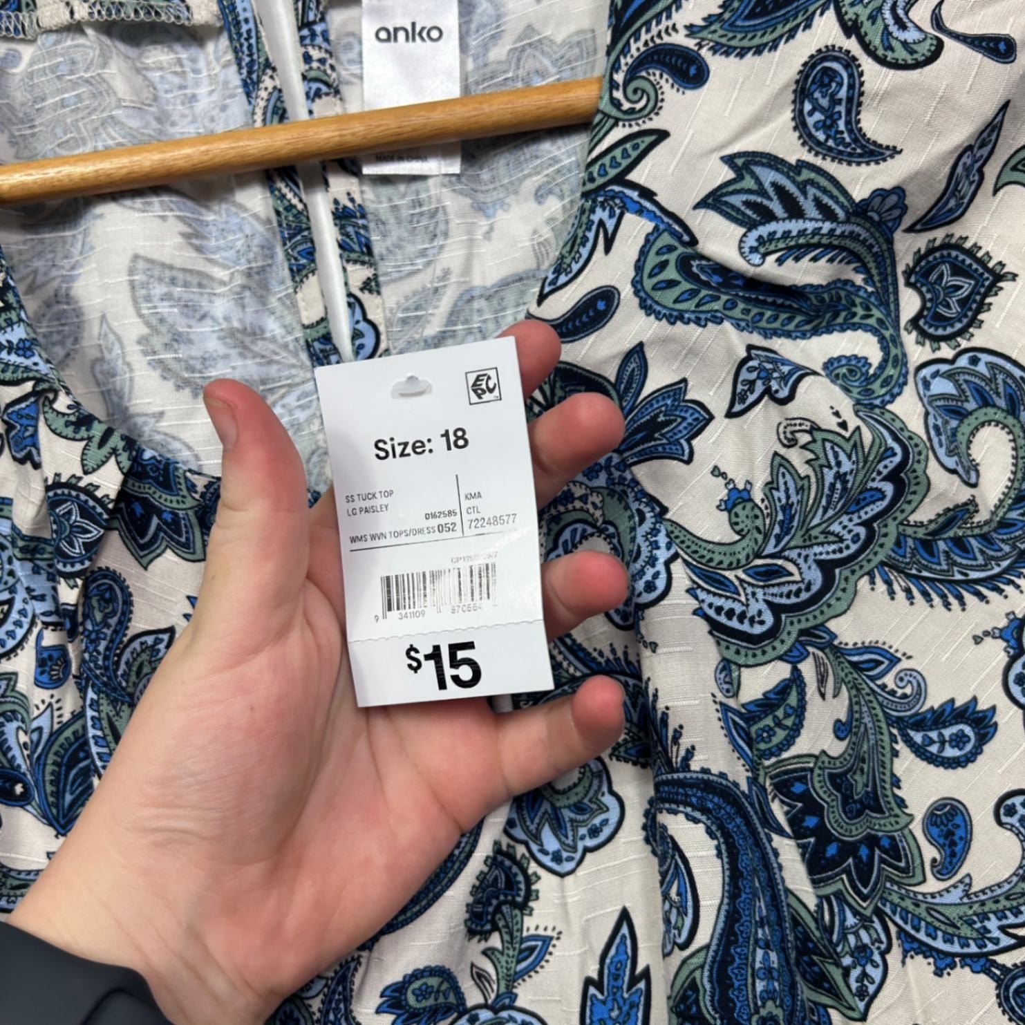 Anko Blue Green Short Sleeve Paisley Print Tuck Top Blouse Size 18
