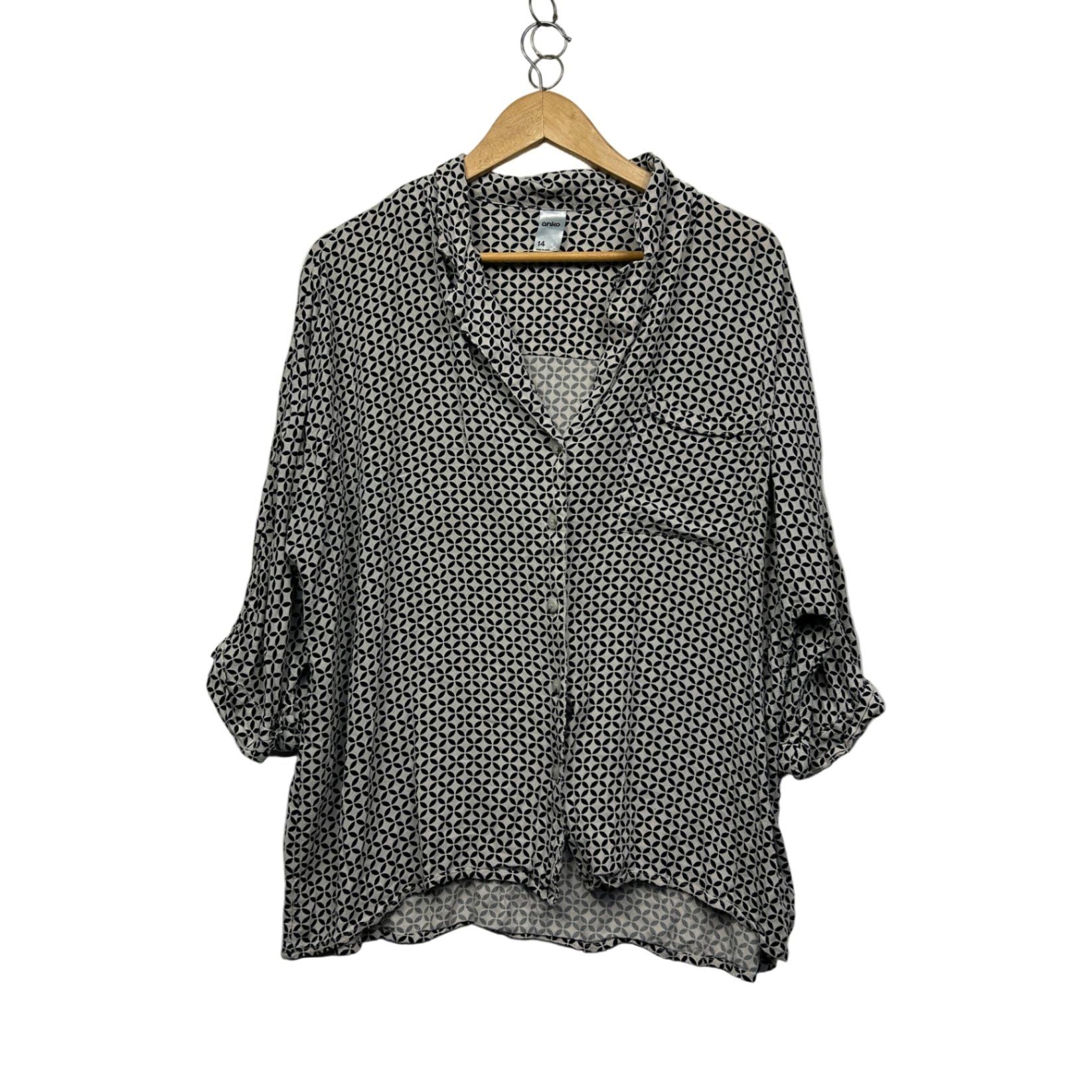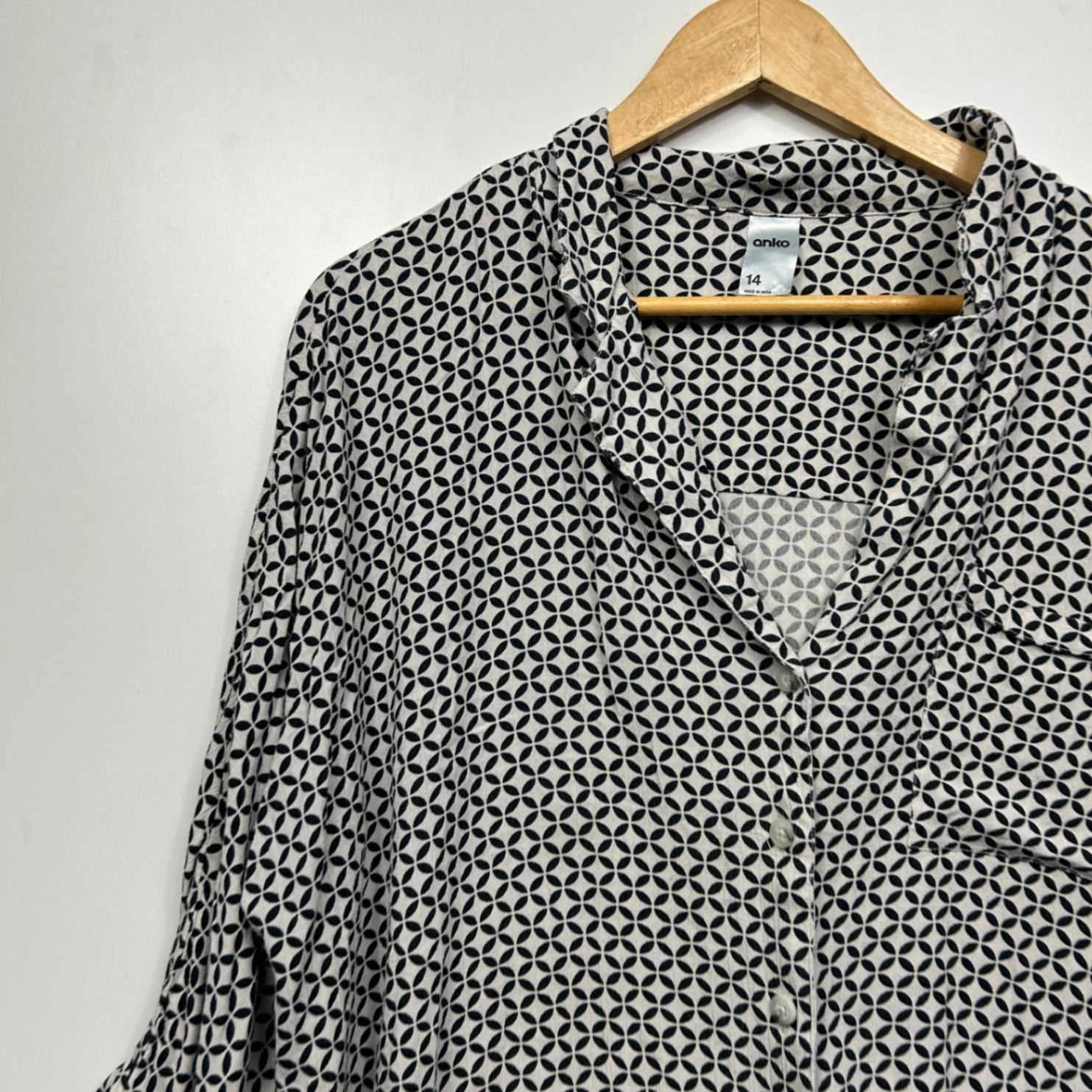 Anko Top Black White Viscose Long Sleeve Blouse Size 14