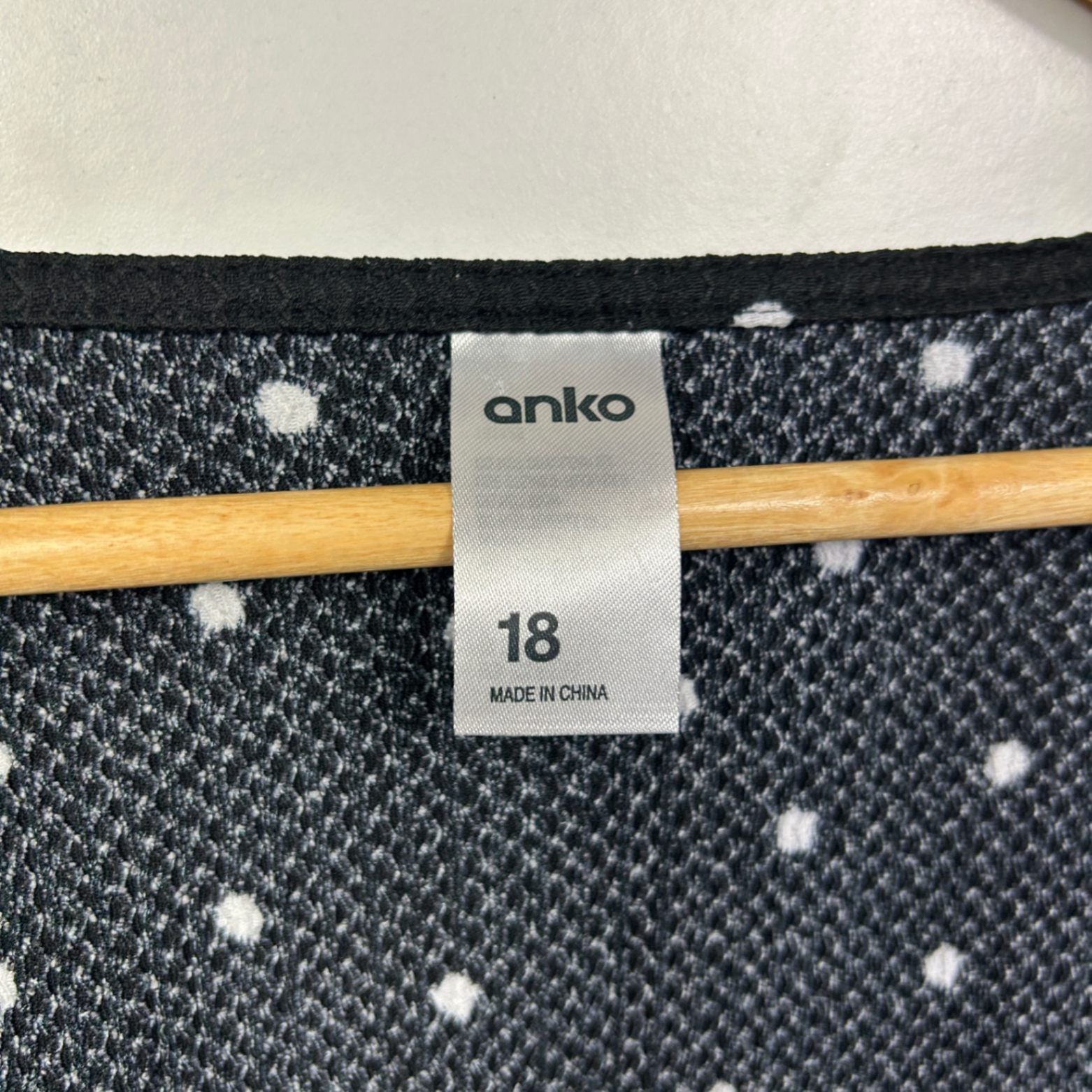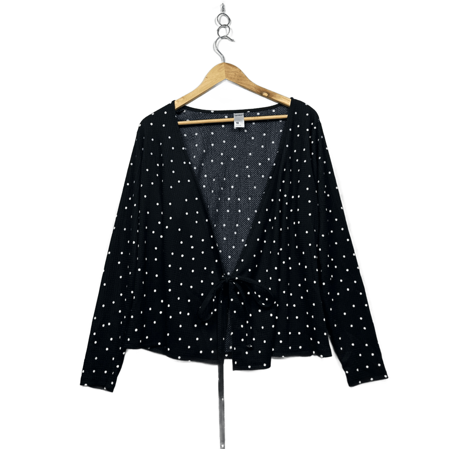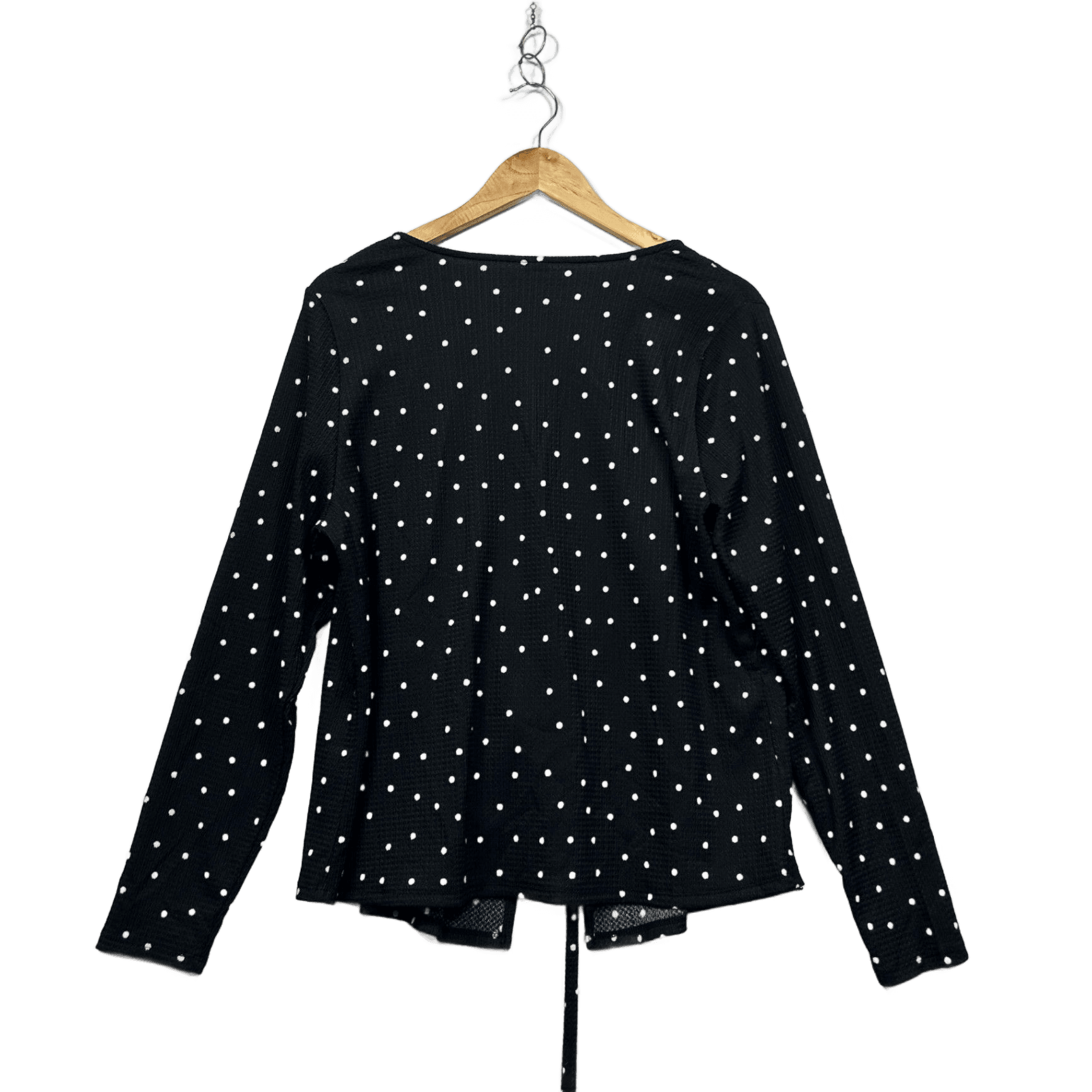 Anko Women's Black White Polka Dots Long Sleeve Open Front Tie Top Size 18