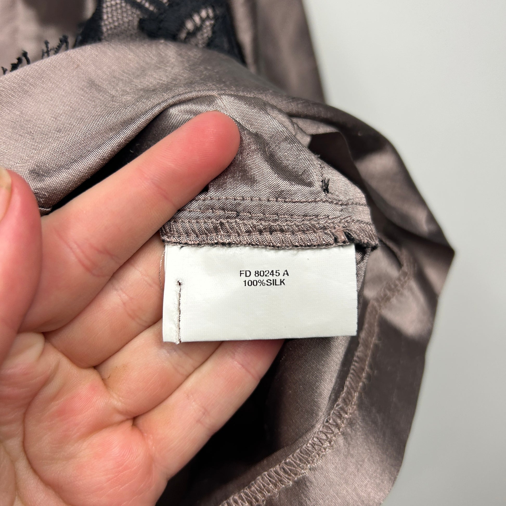 Anthea Crawford Taupe Silk Jacket with Black Lace Trim - Size 18