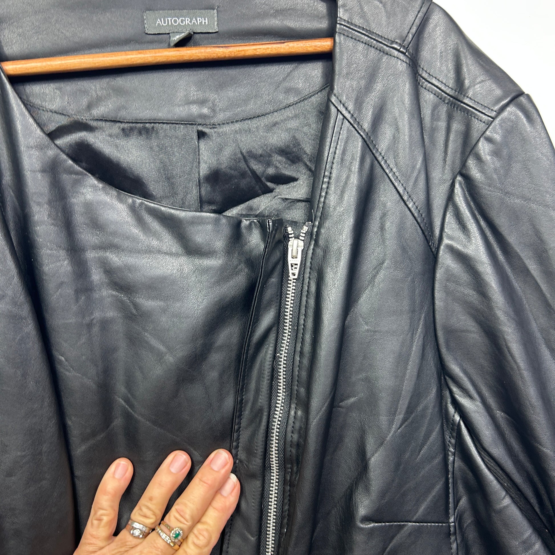Autograph Black Faux Leather Jacket - Size 26