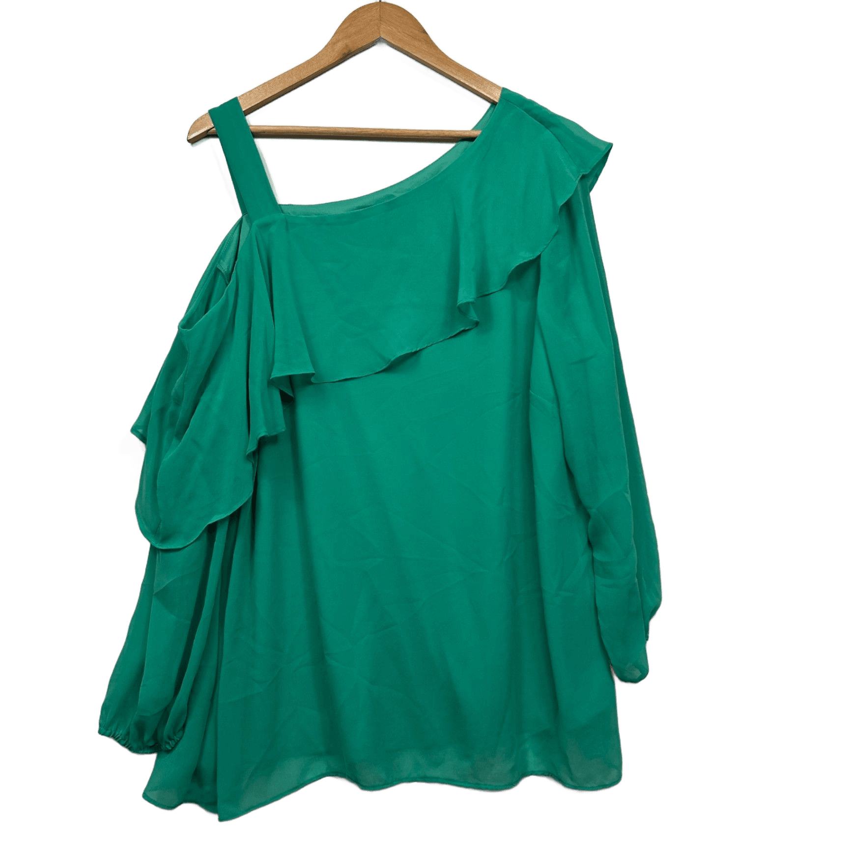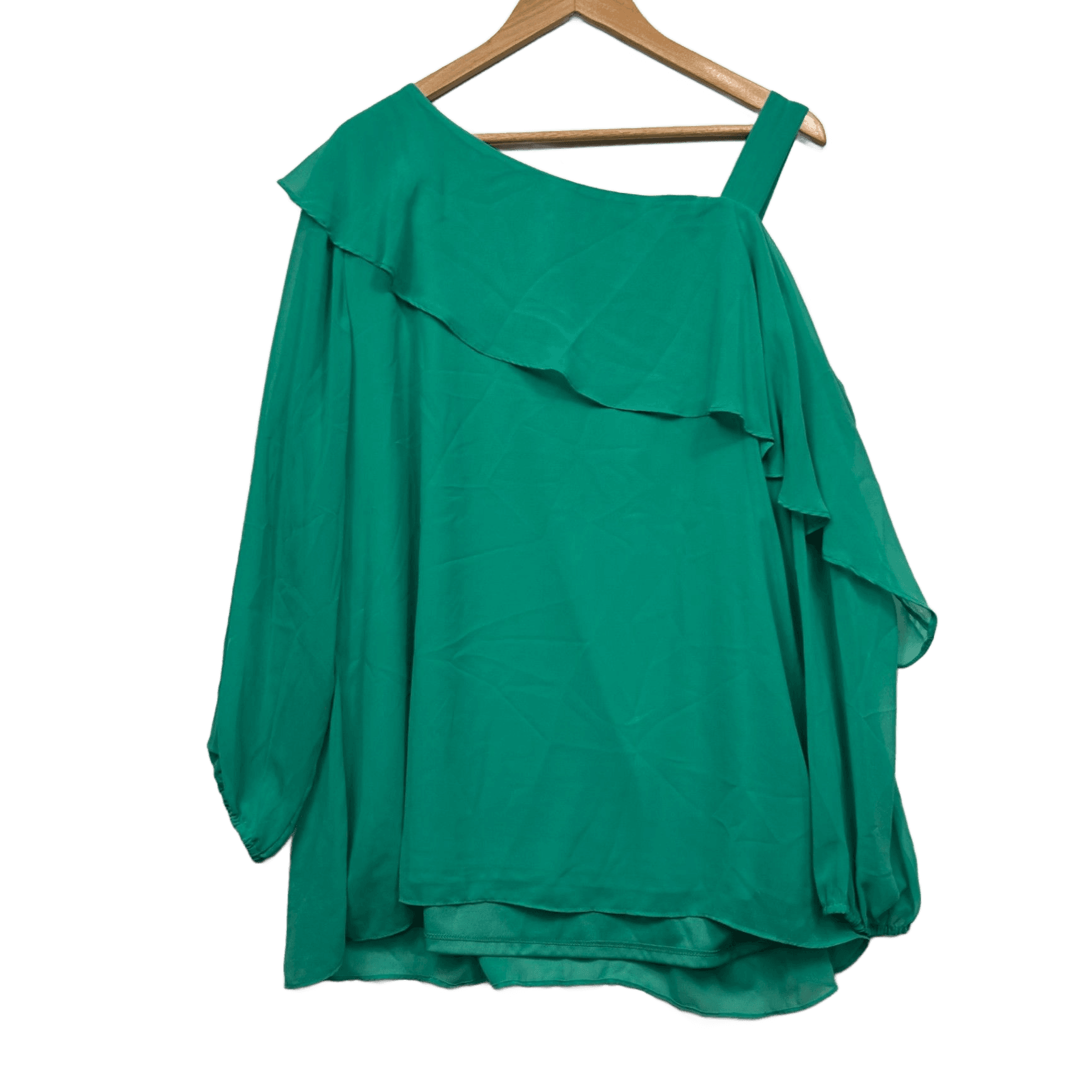 Autograph Blouse Top Size 18 Green One Shoulder Long Sleeve Ruffle