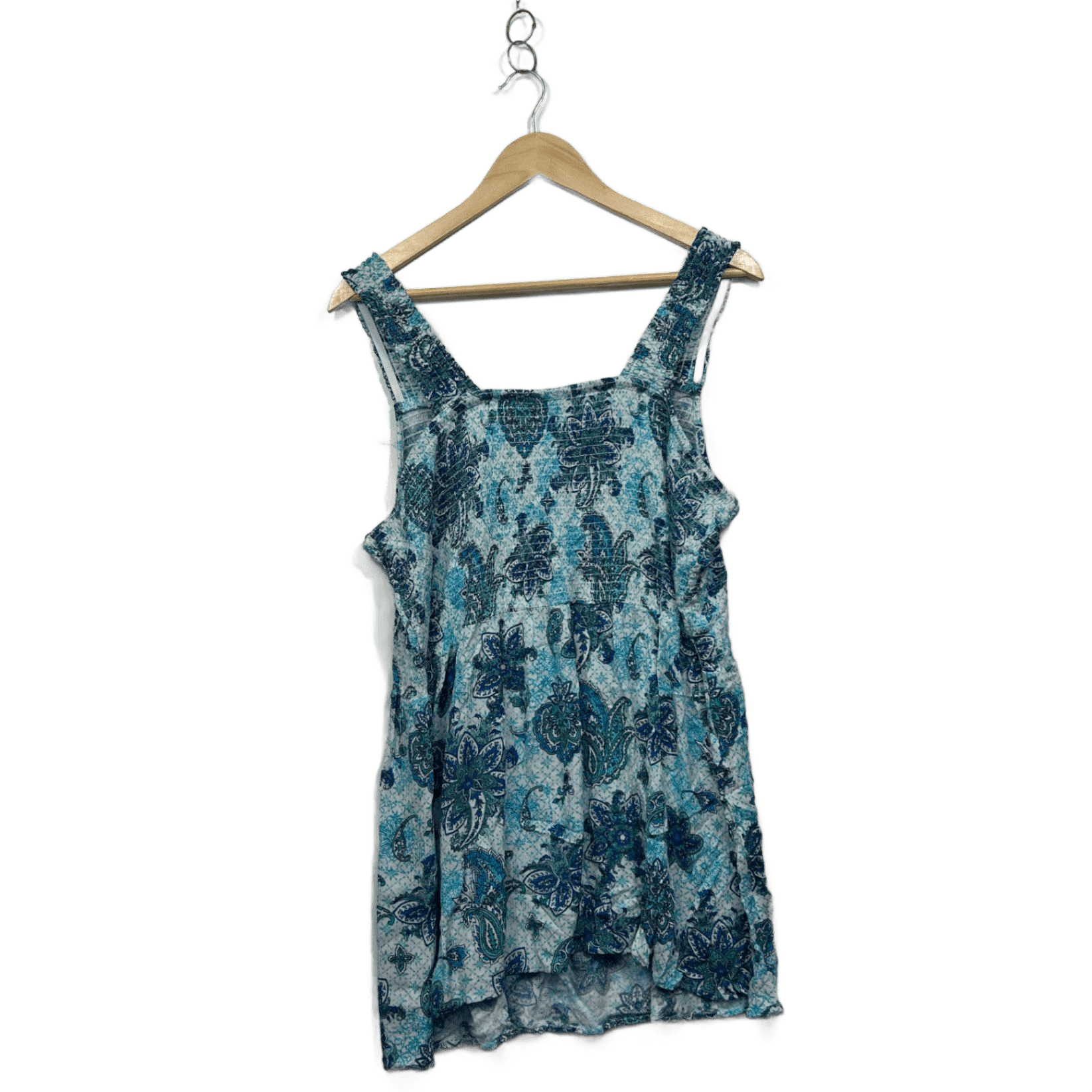 Autograph Blue Green Sleeveless Paisley Print Ruched Top Size 20