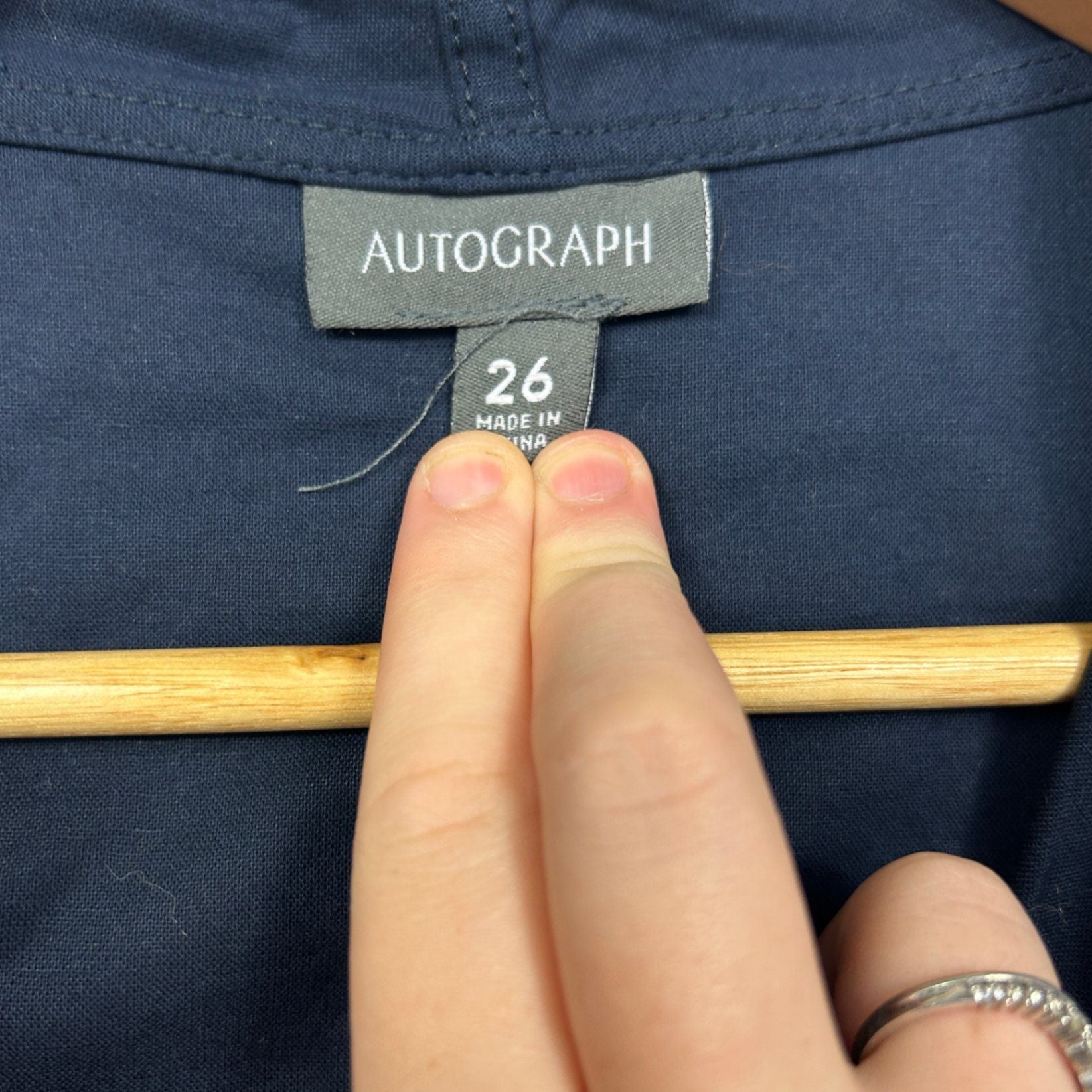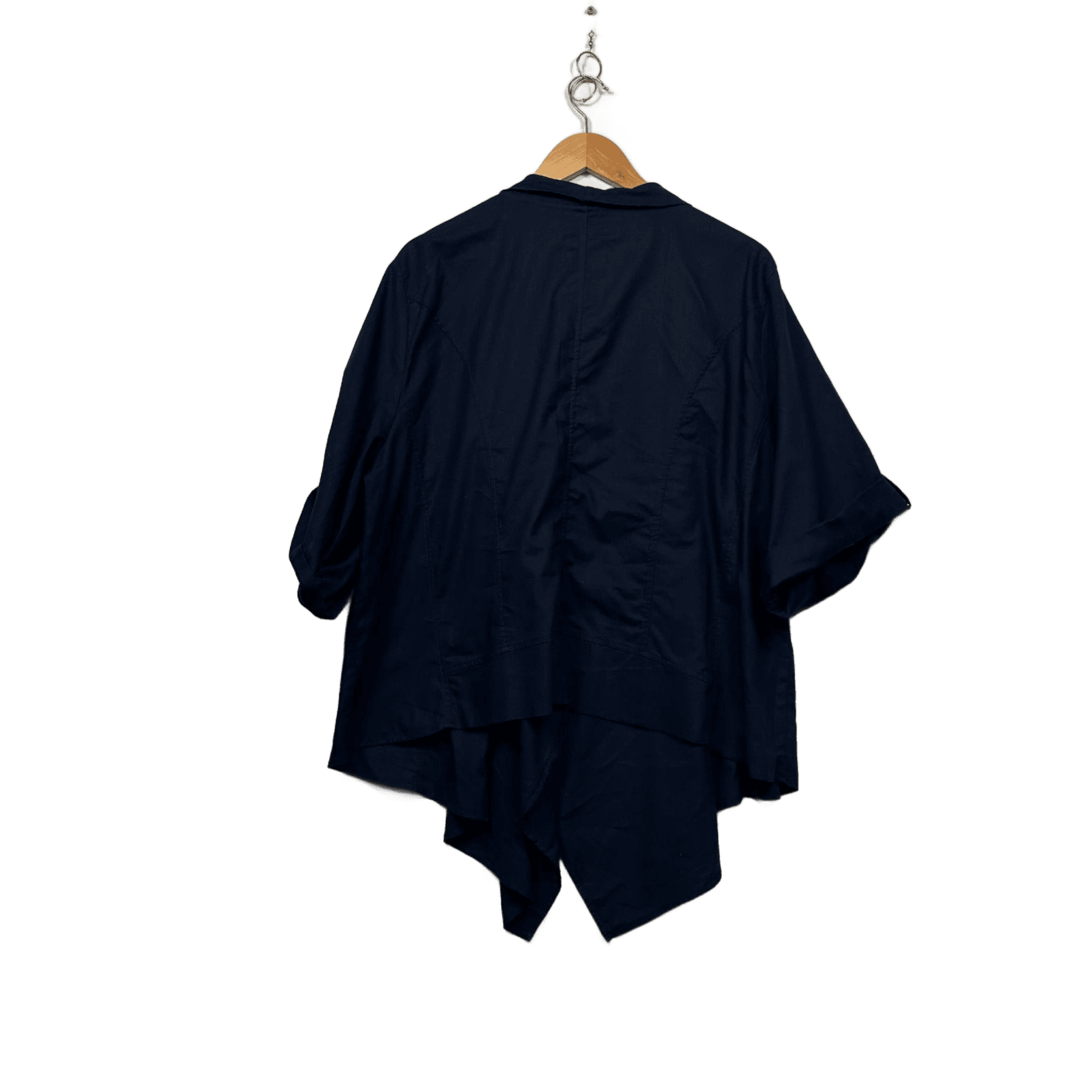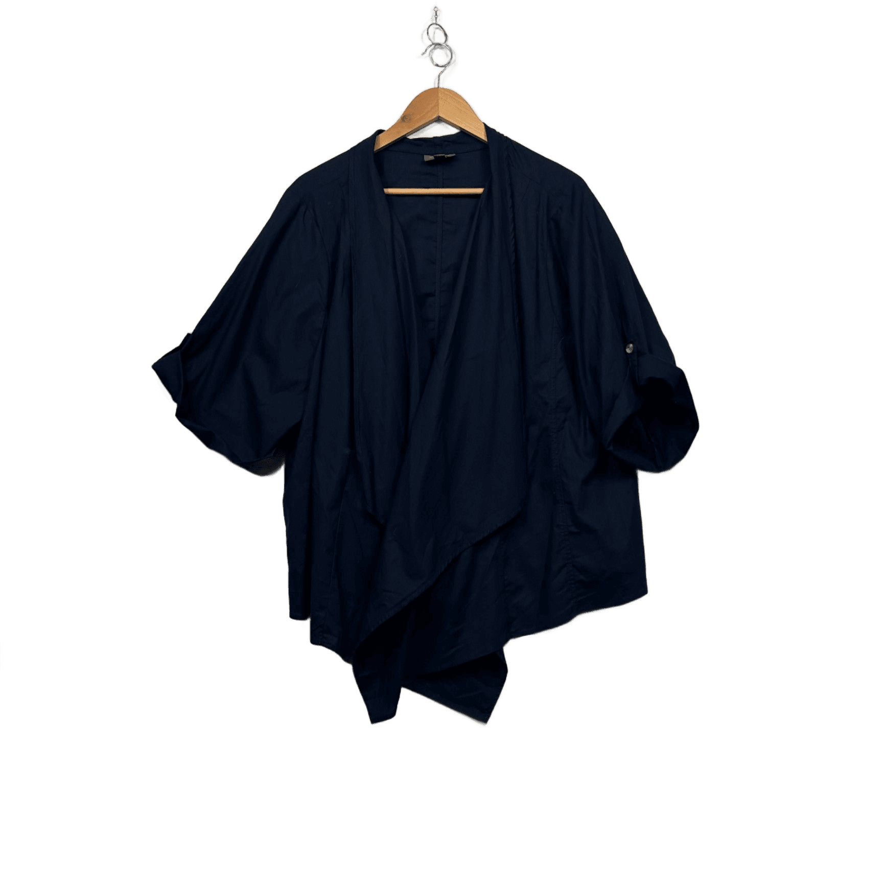 Autograph Linen Blend Navy Open Front Waterfall Jacket Top Size 26