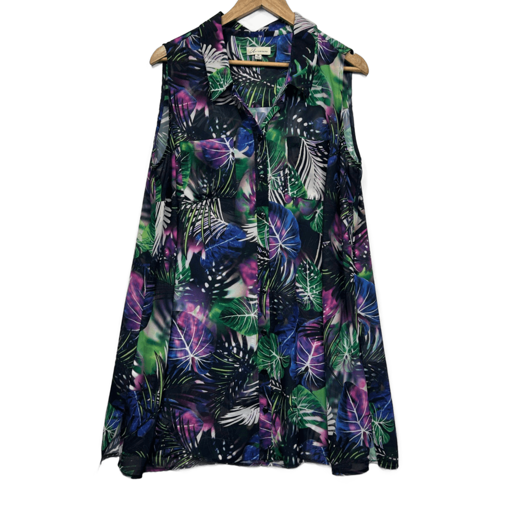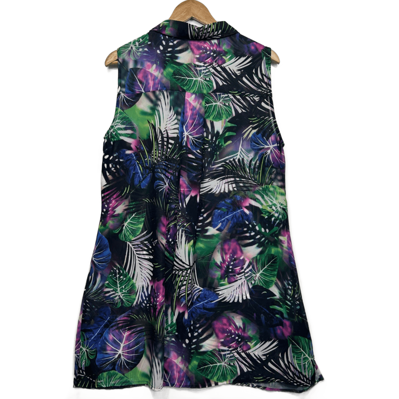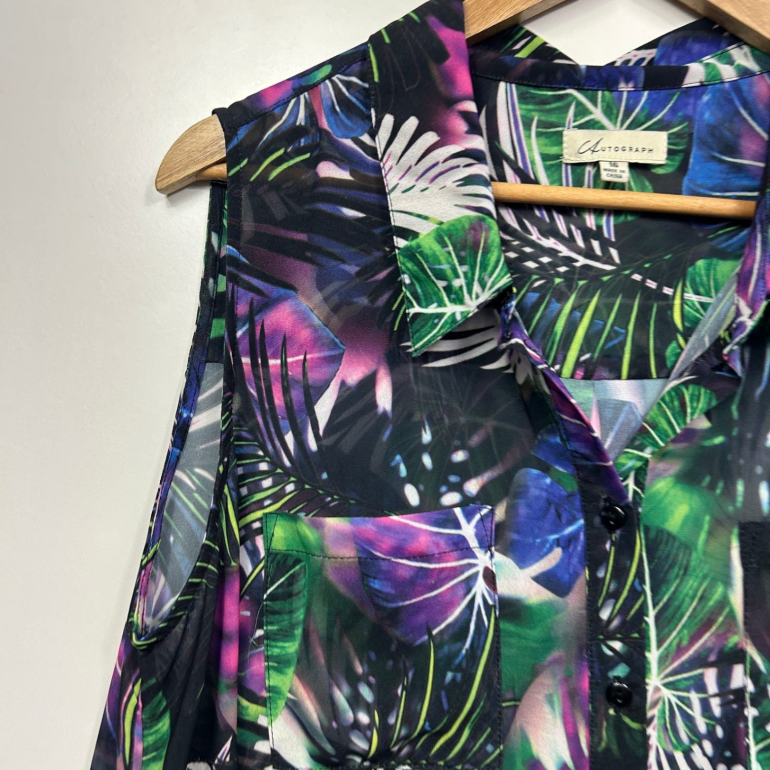 Autograph Multicoloured Sleeveless Button Up Tunic Top Sheer Size 16