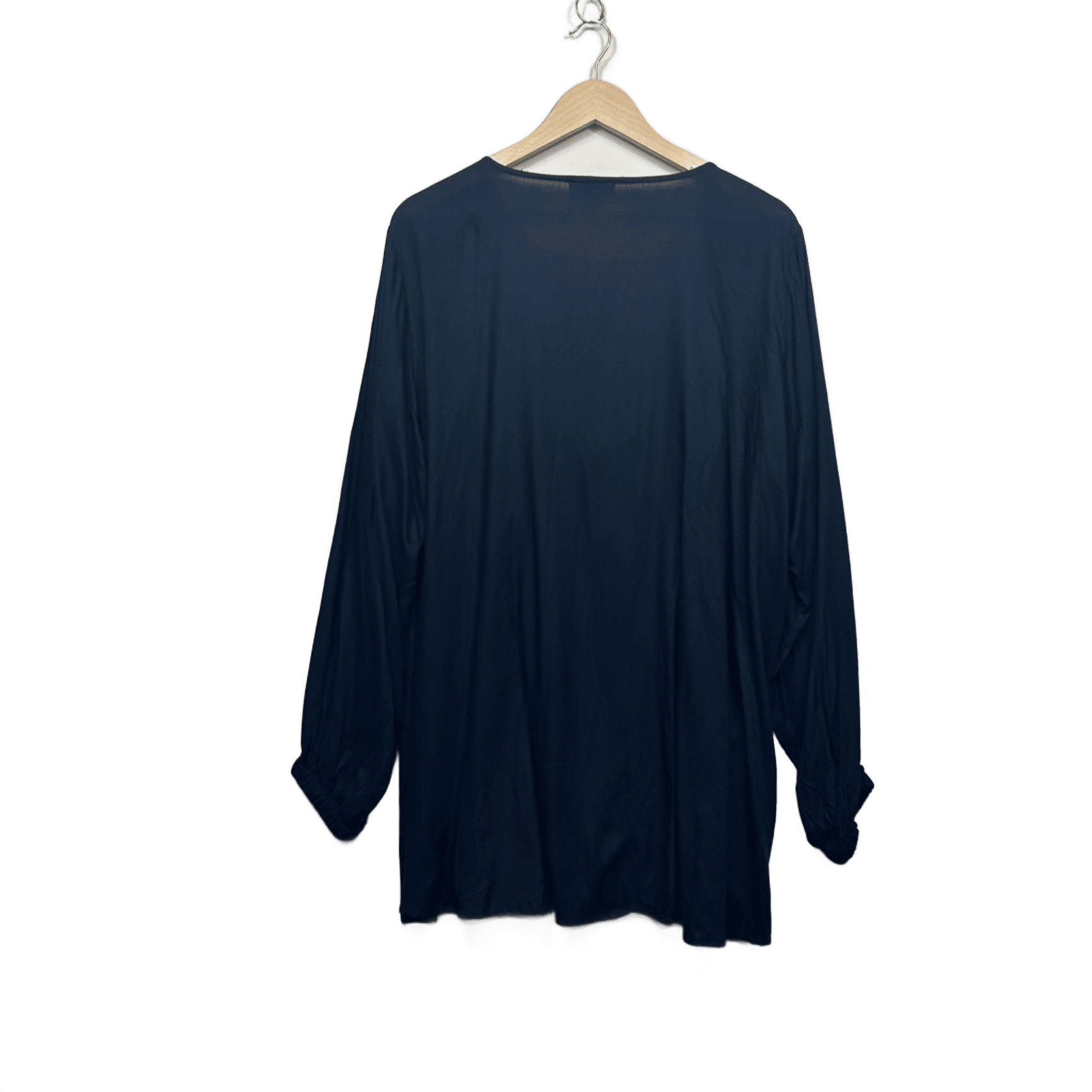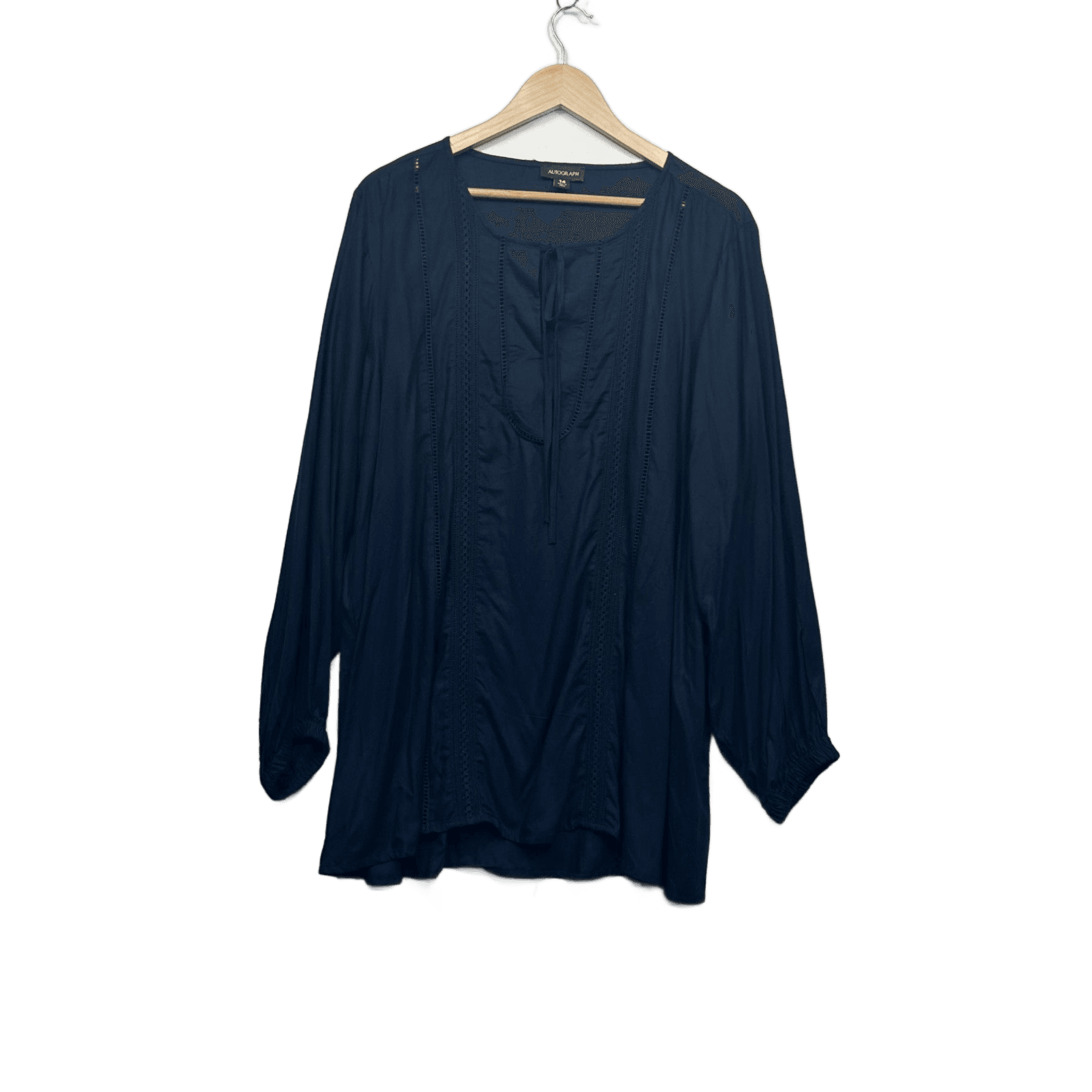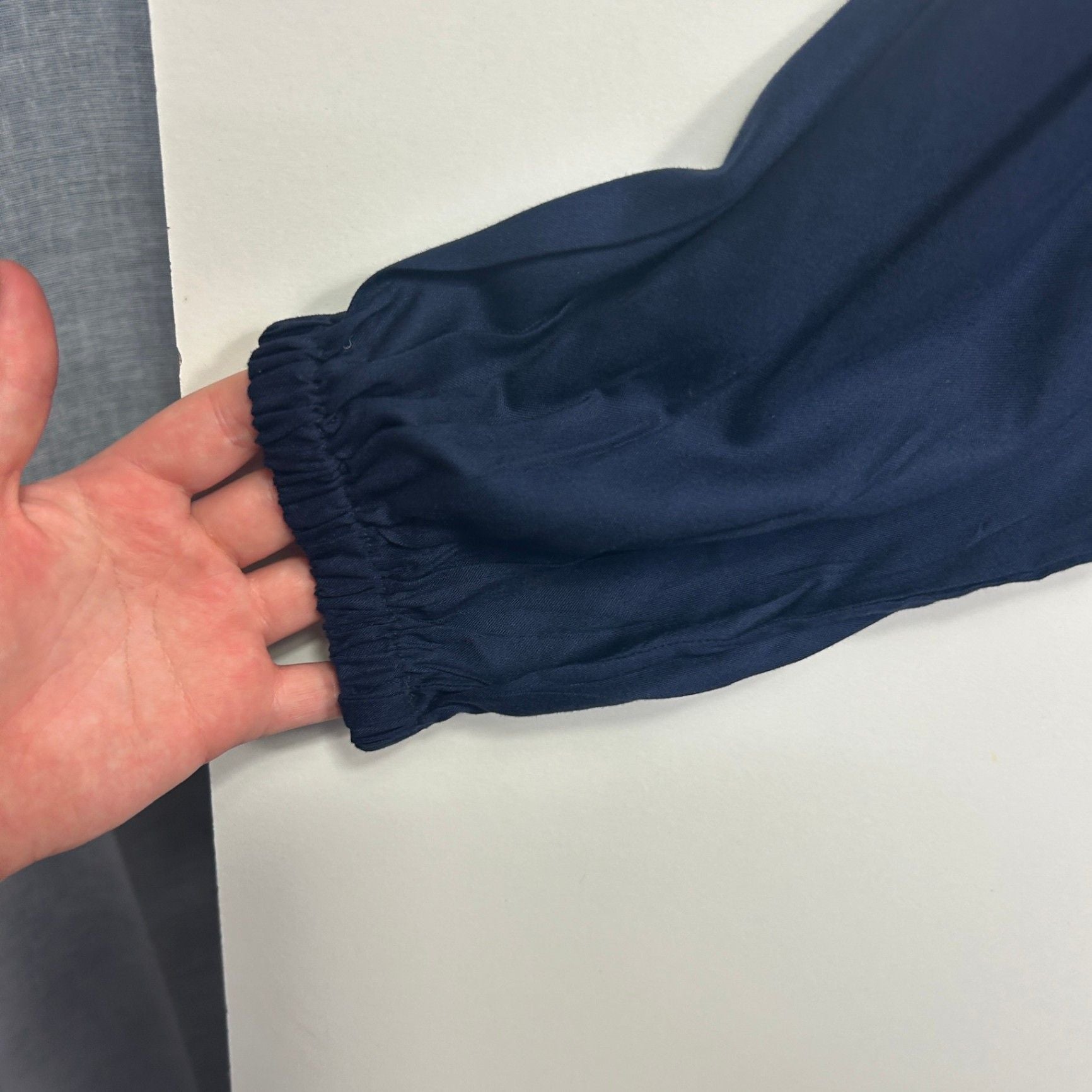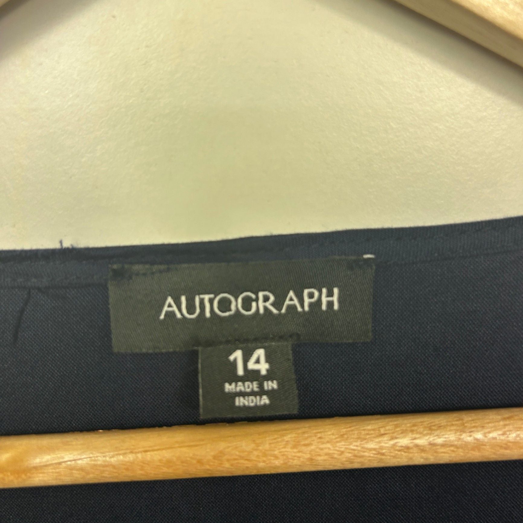 Autograph Navy Blue Long Sleeve Tie Neck Boho Blouse Top Size 14 Viscose