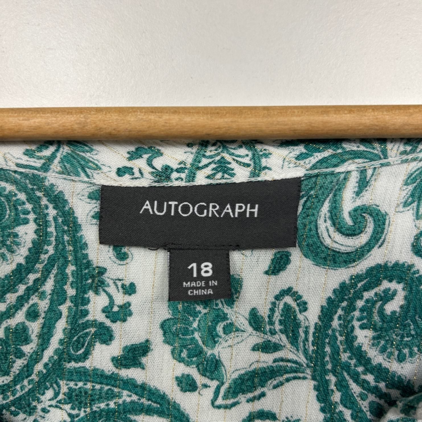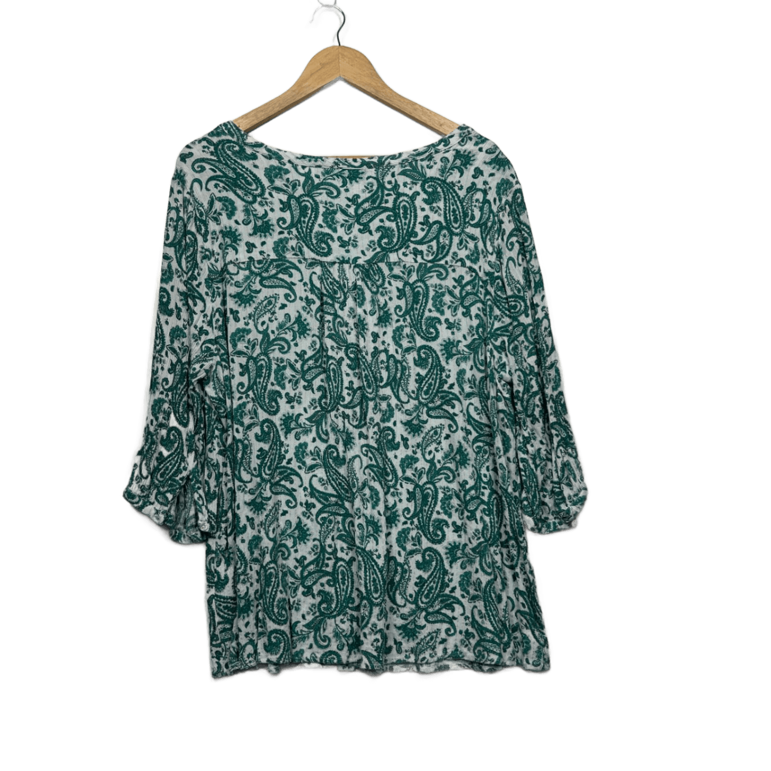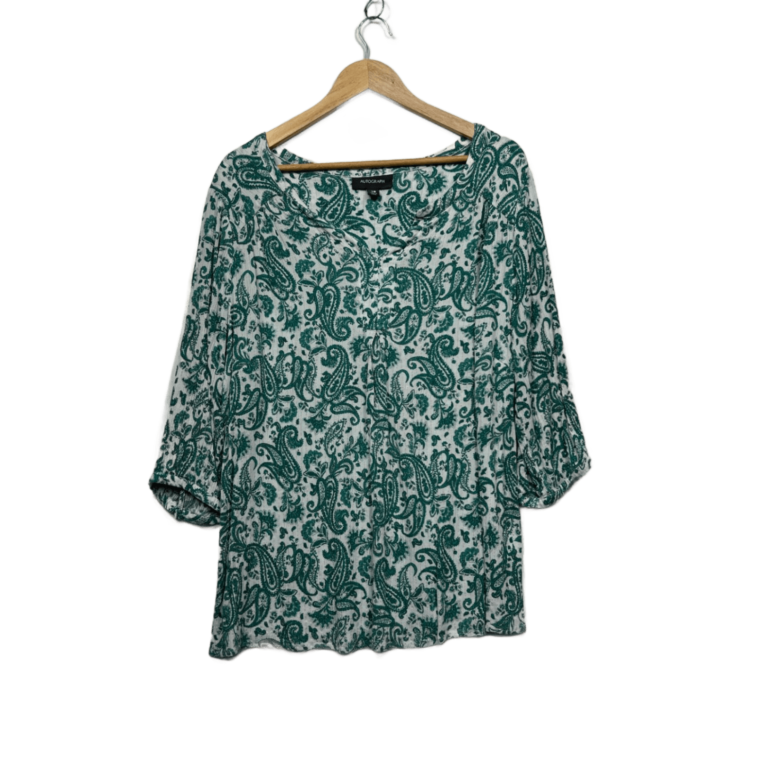 Autograph Women's Green White 3/4 Sleeve Paisley Print Blouse Top Size 18