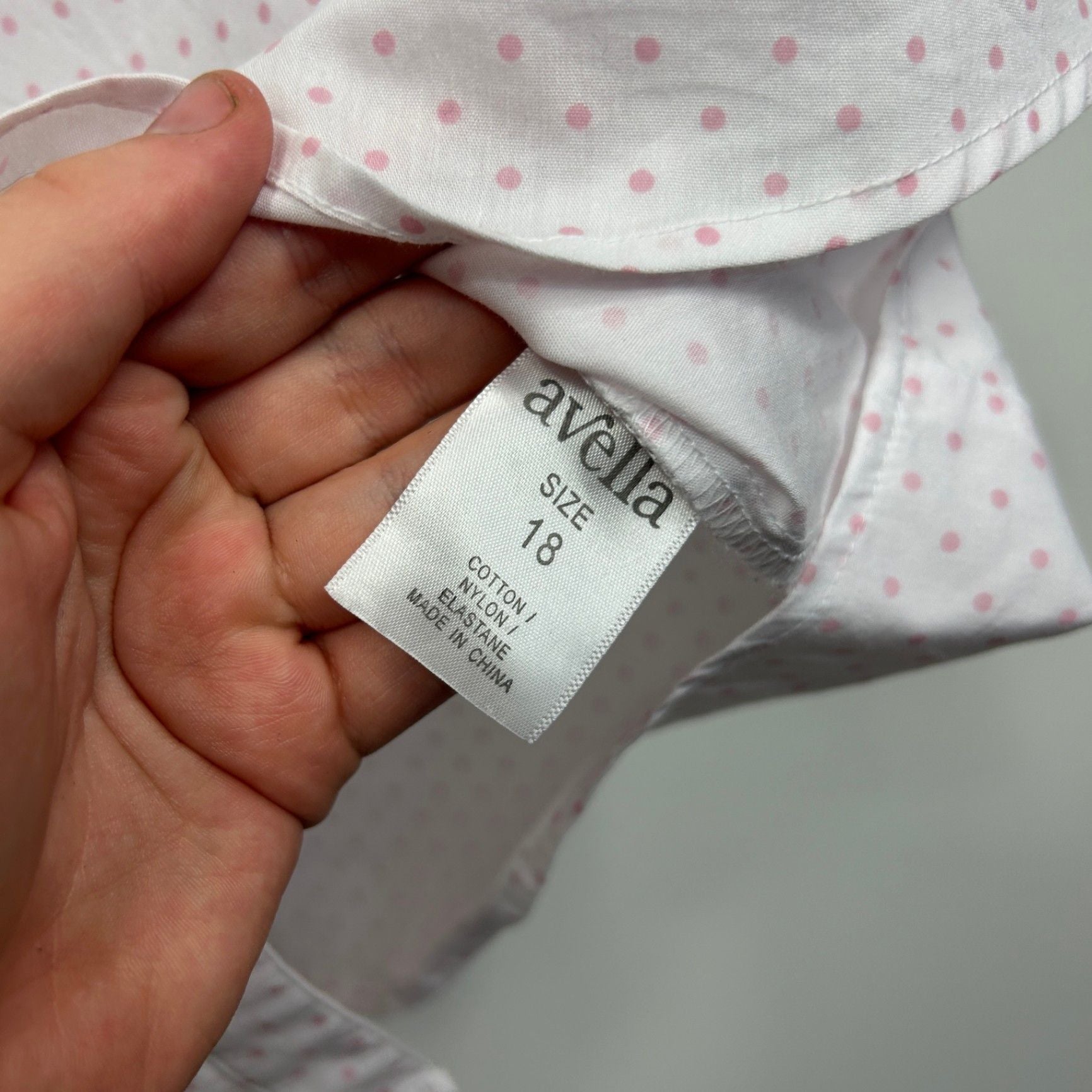 Avella White Pink Polka Dots Button Up Blouse Size 18