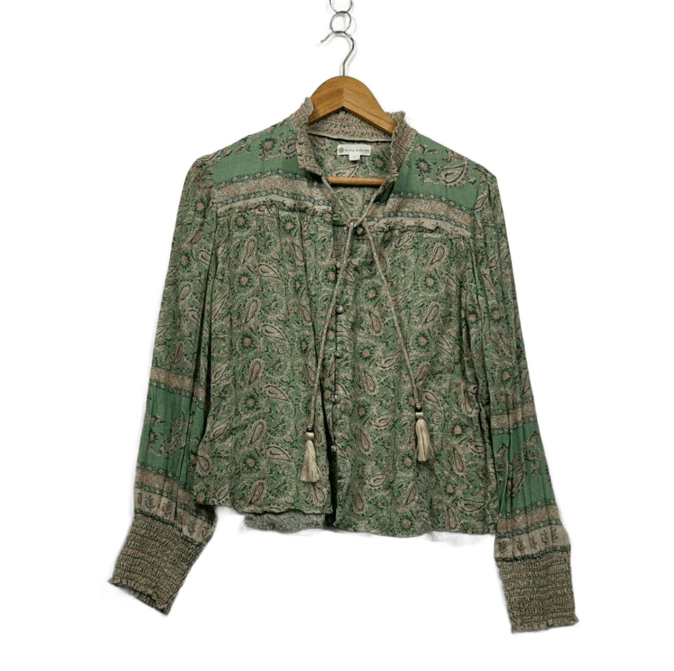Bella Boheme Boho Top Size Large Long Sleeve Paisley Print