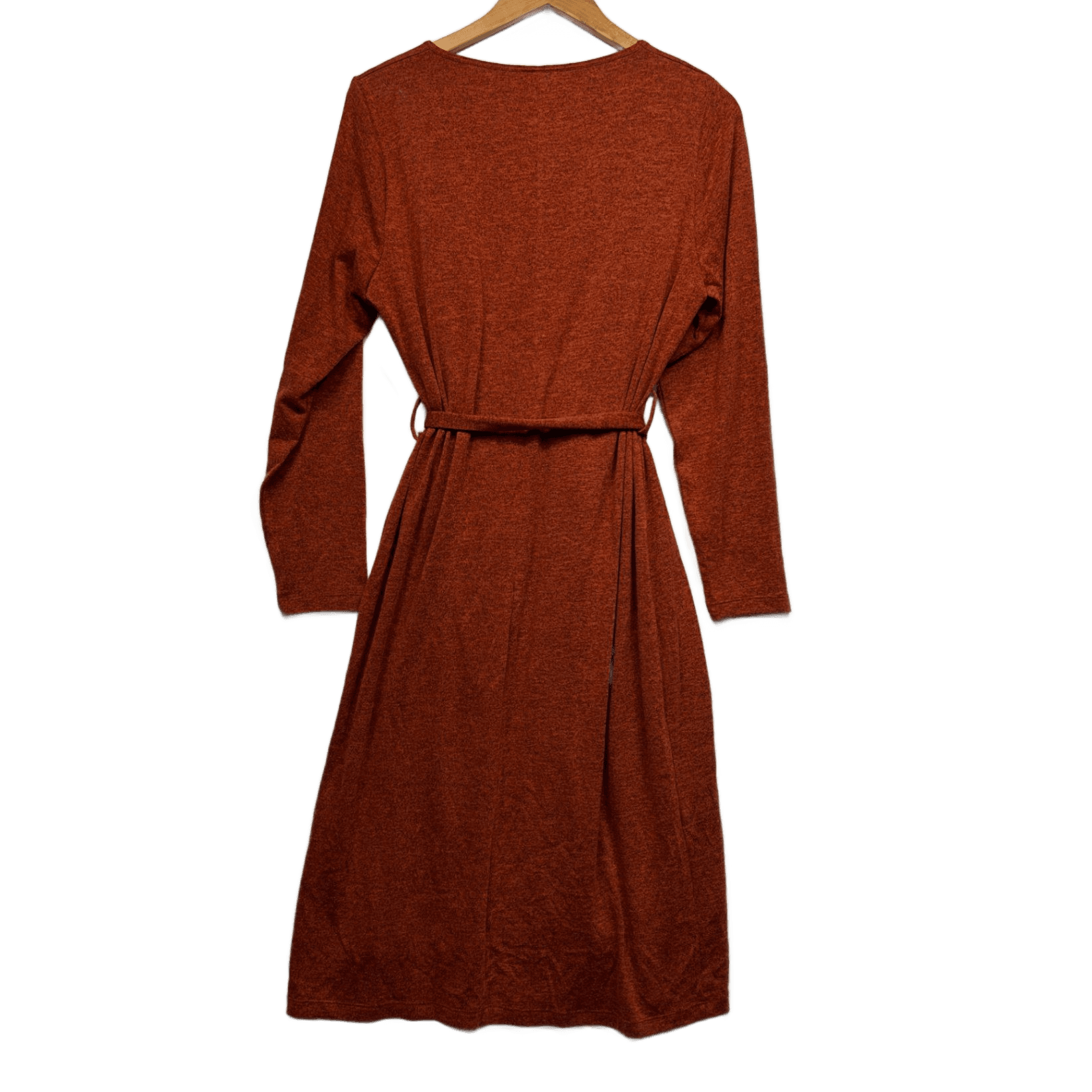 Belle Bird Knit Midi Dress Size 16 Rust Orange Long Sleeve Belted Birdsnest