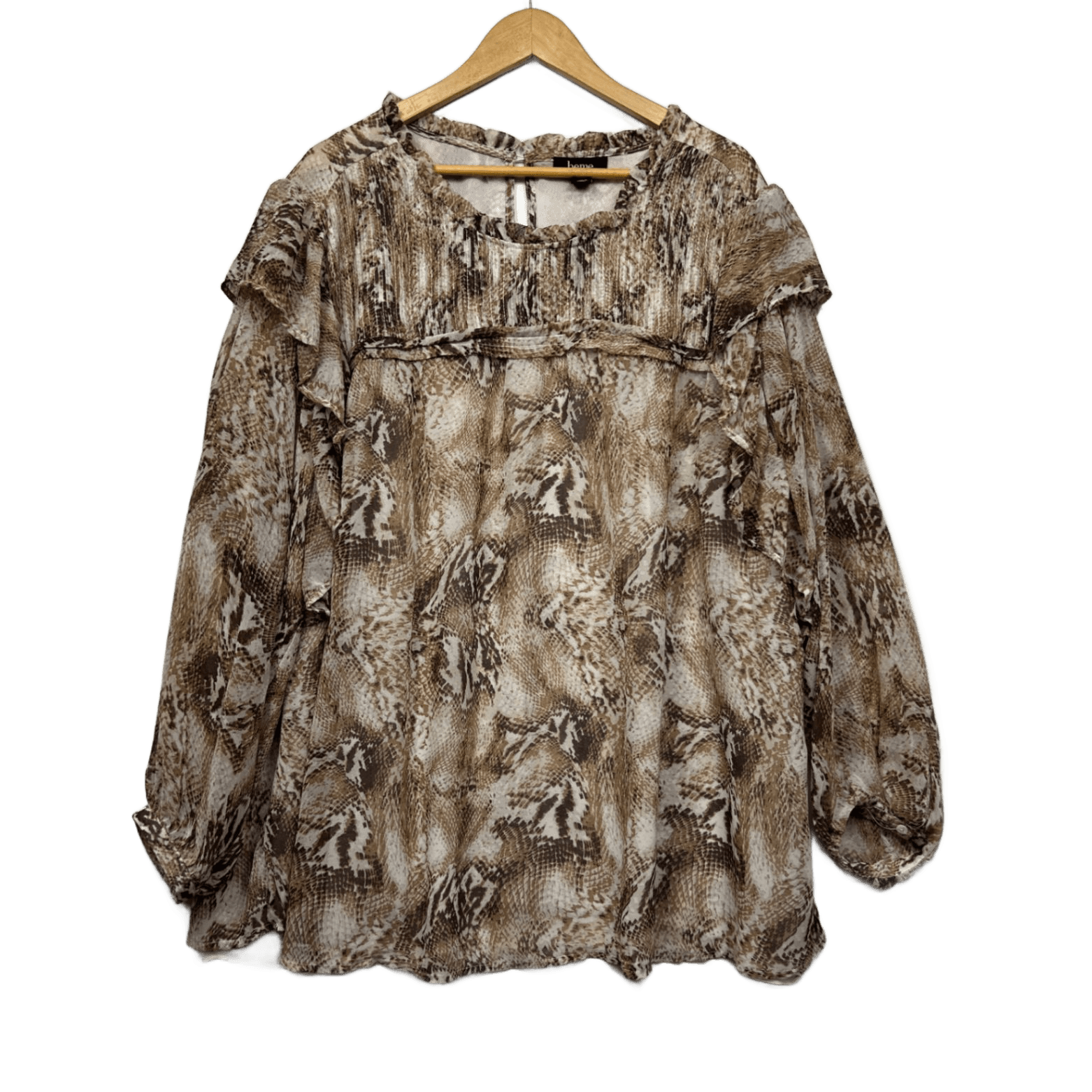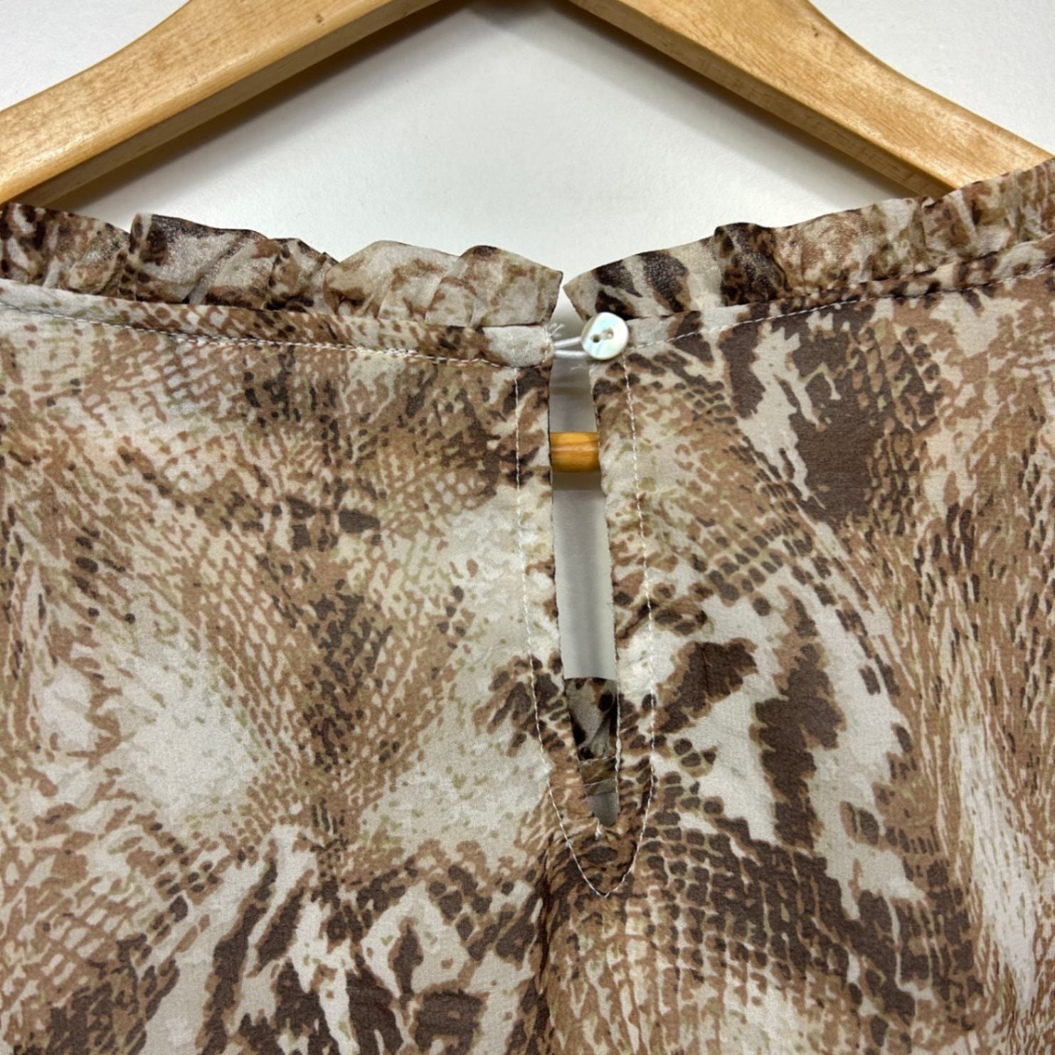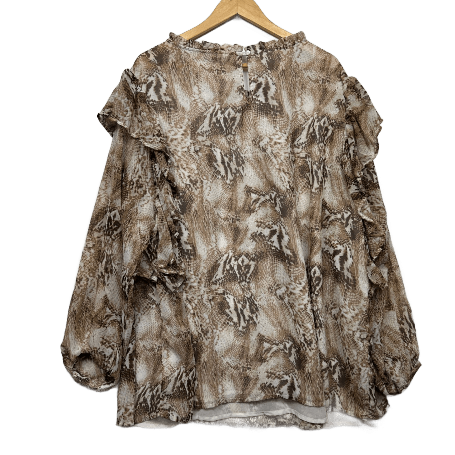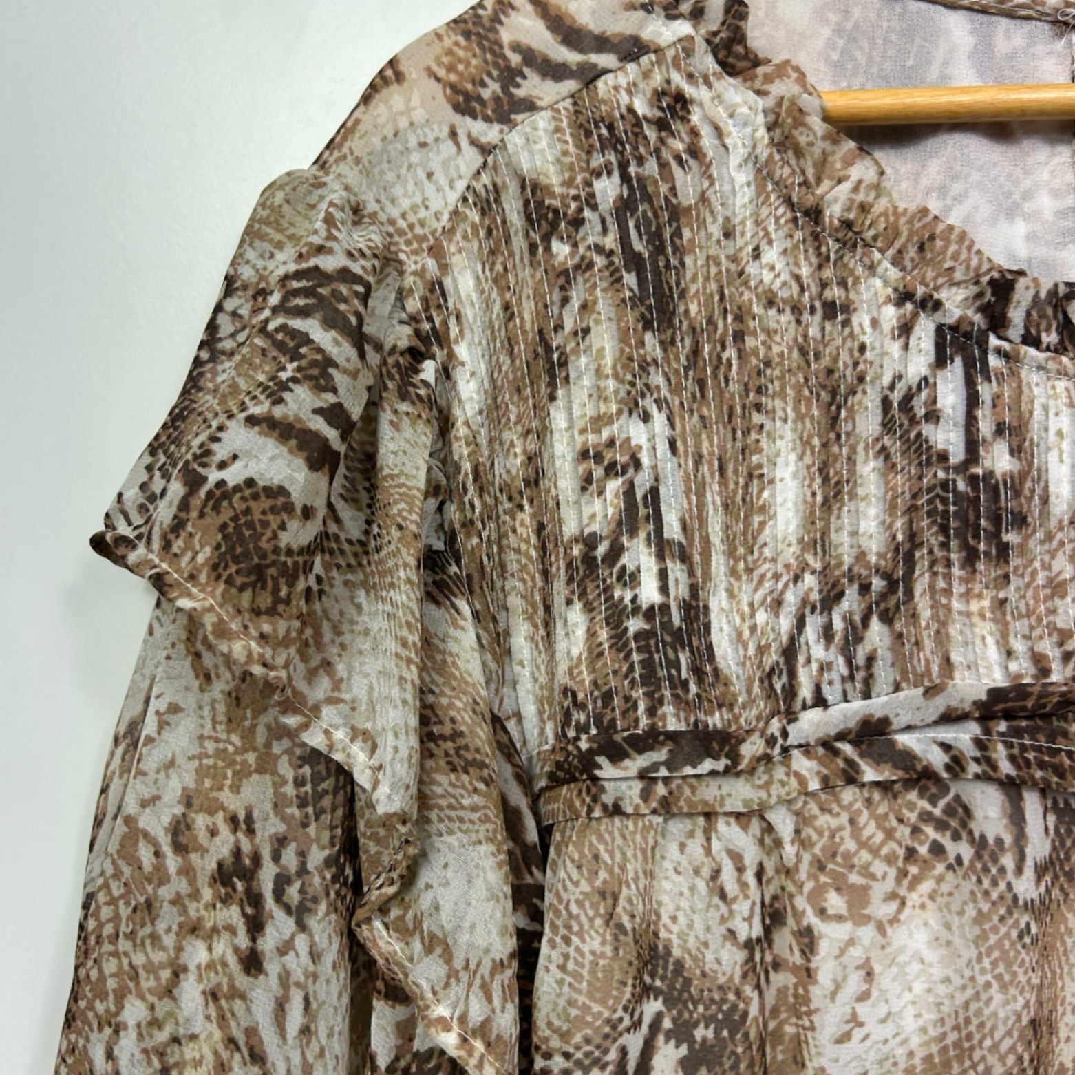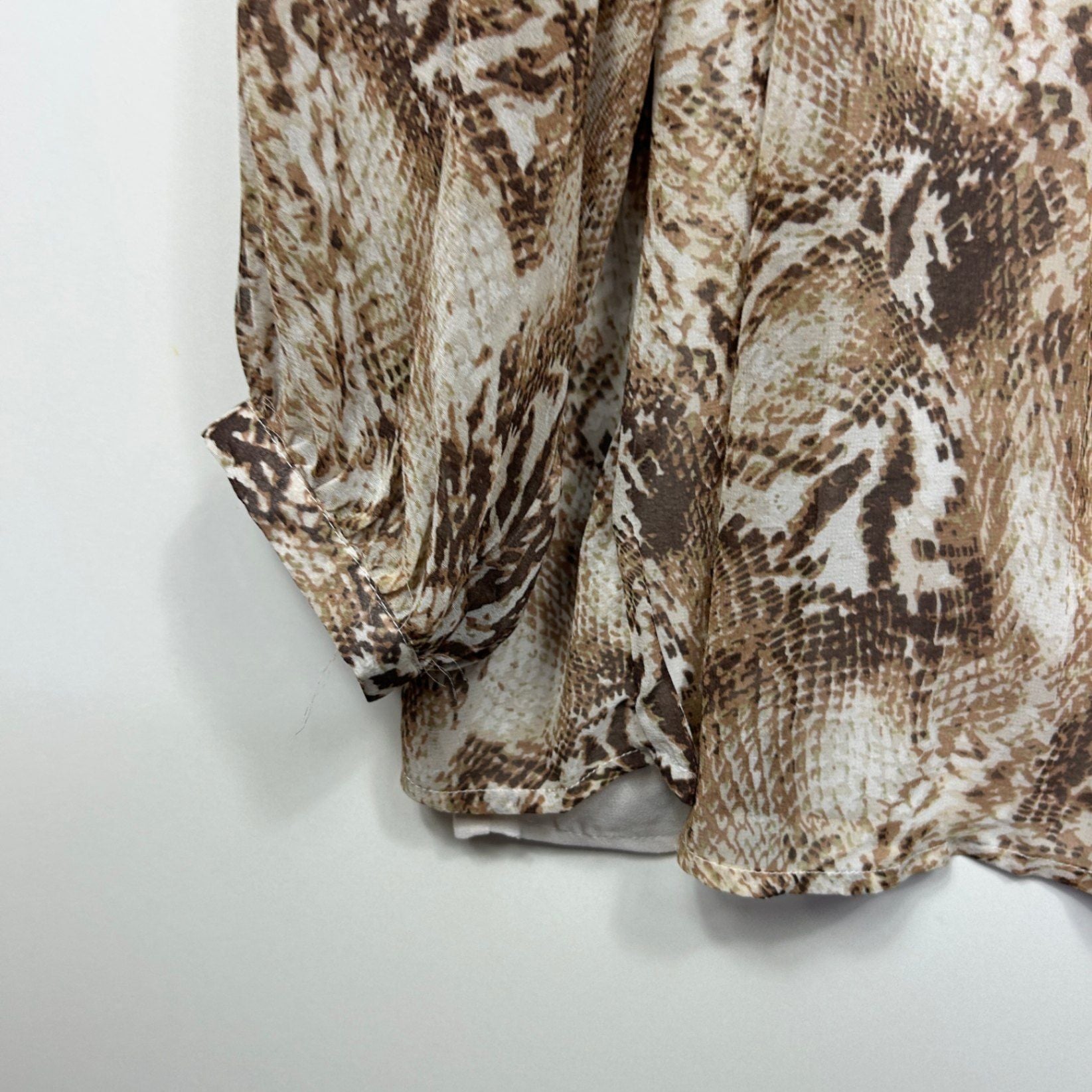 Beme Blouse Top Size 26 Brown Long Sleeve Snakeskin Print