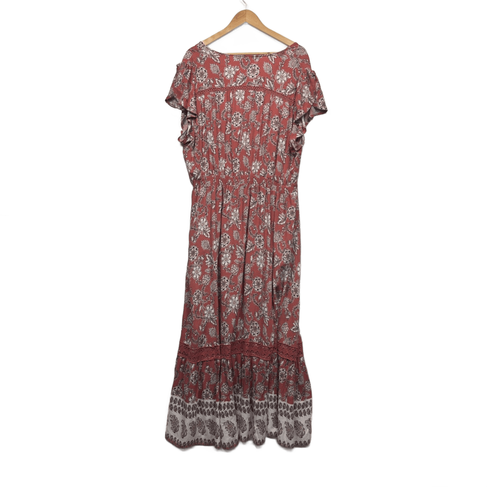 Beme Boho Maxi Dress Size 20 Viscose Pockets Short Sleeve