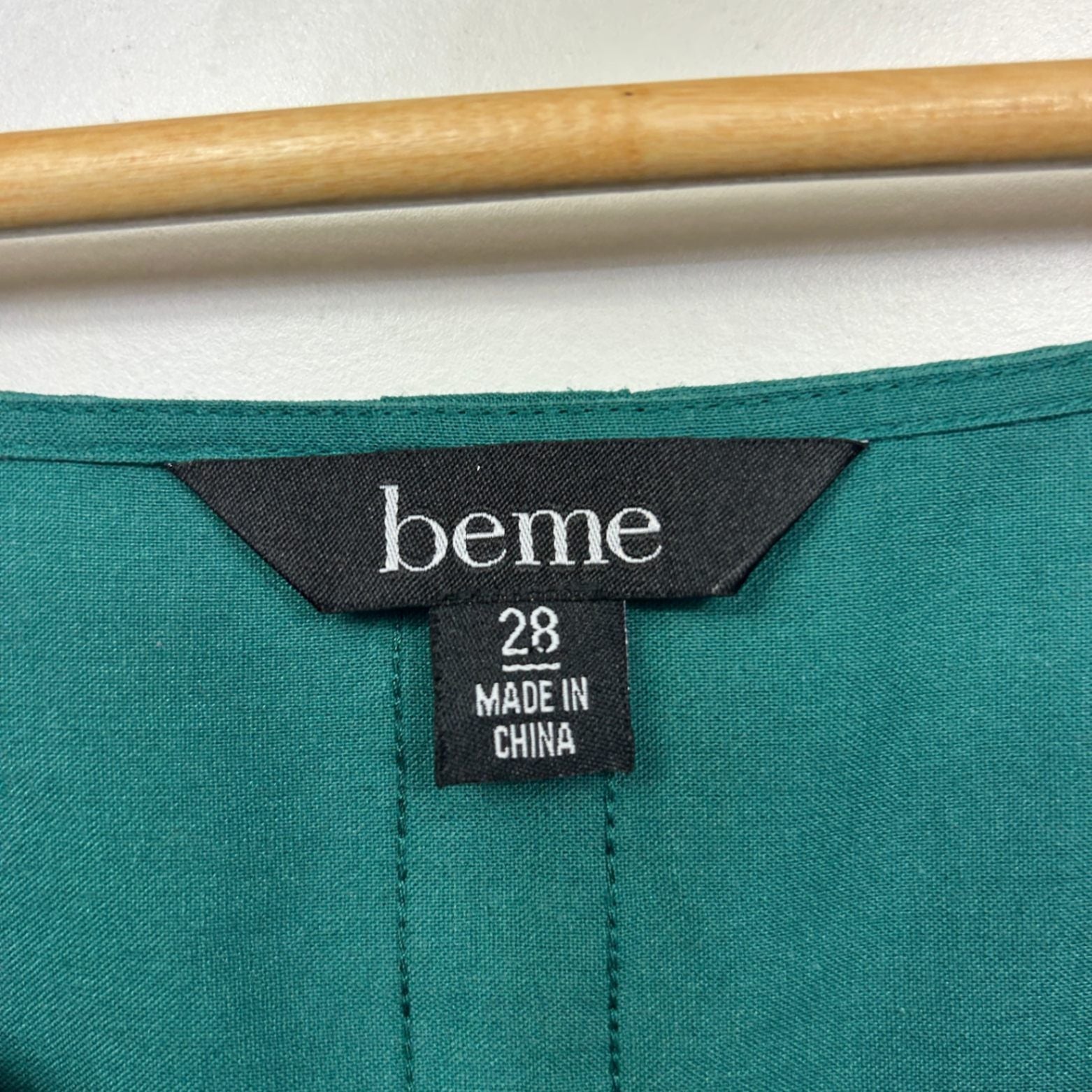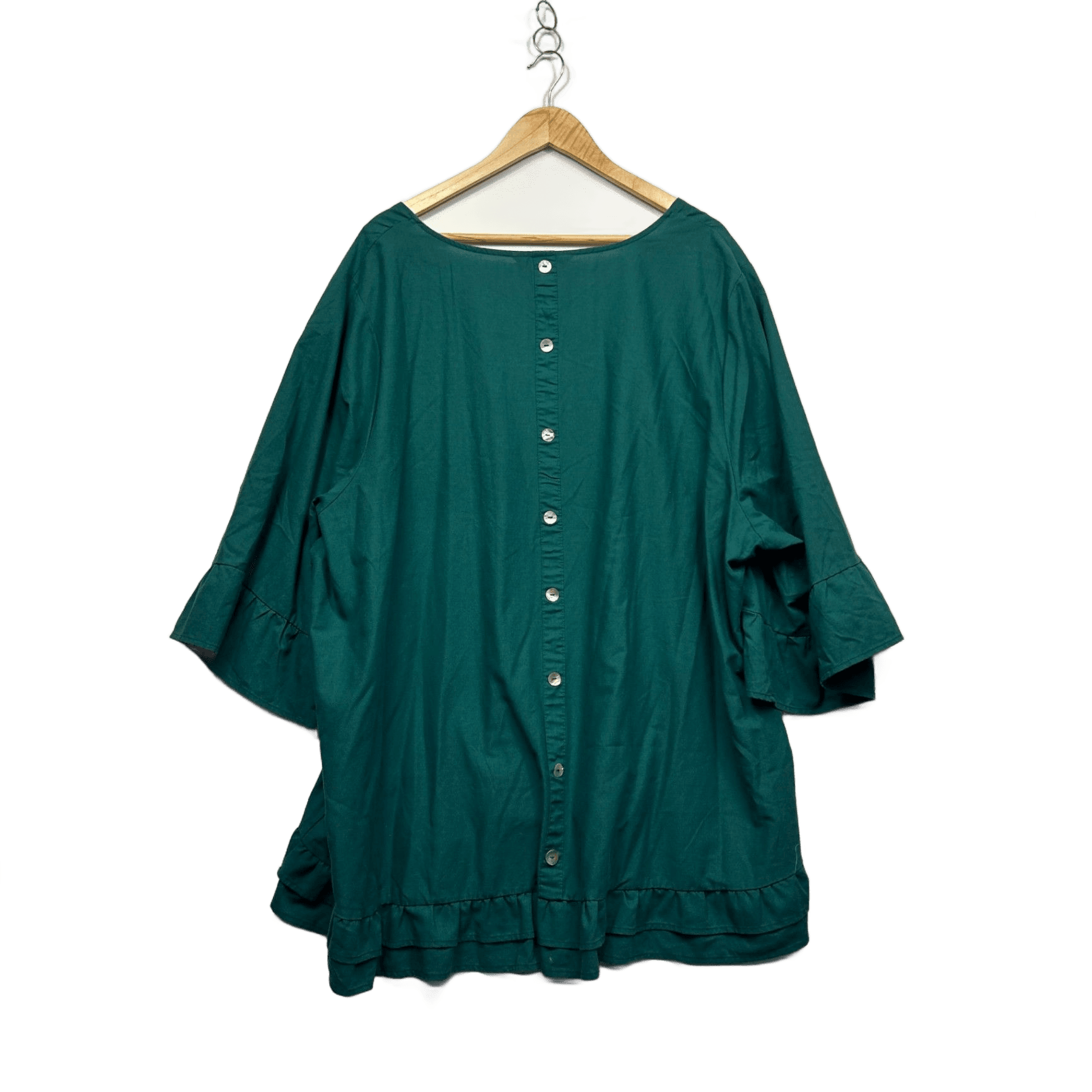 Beme Green Linen Blend 3/4 Sleeve Ruffle Hem Hi Low Top Tunic Size 28
