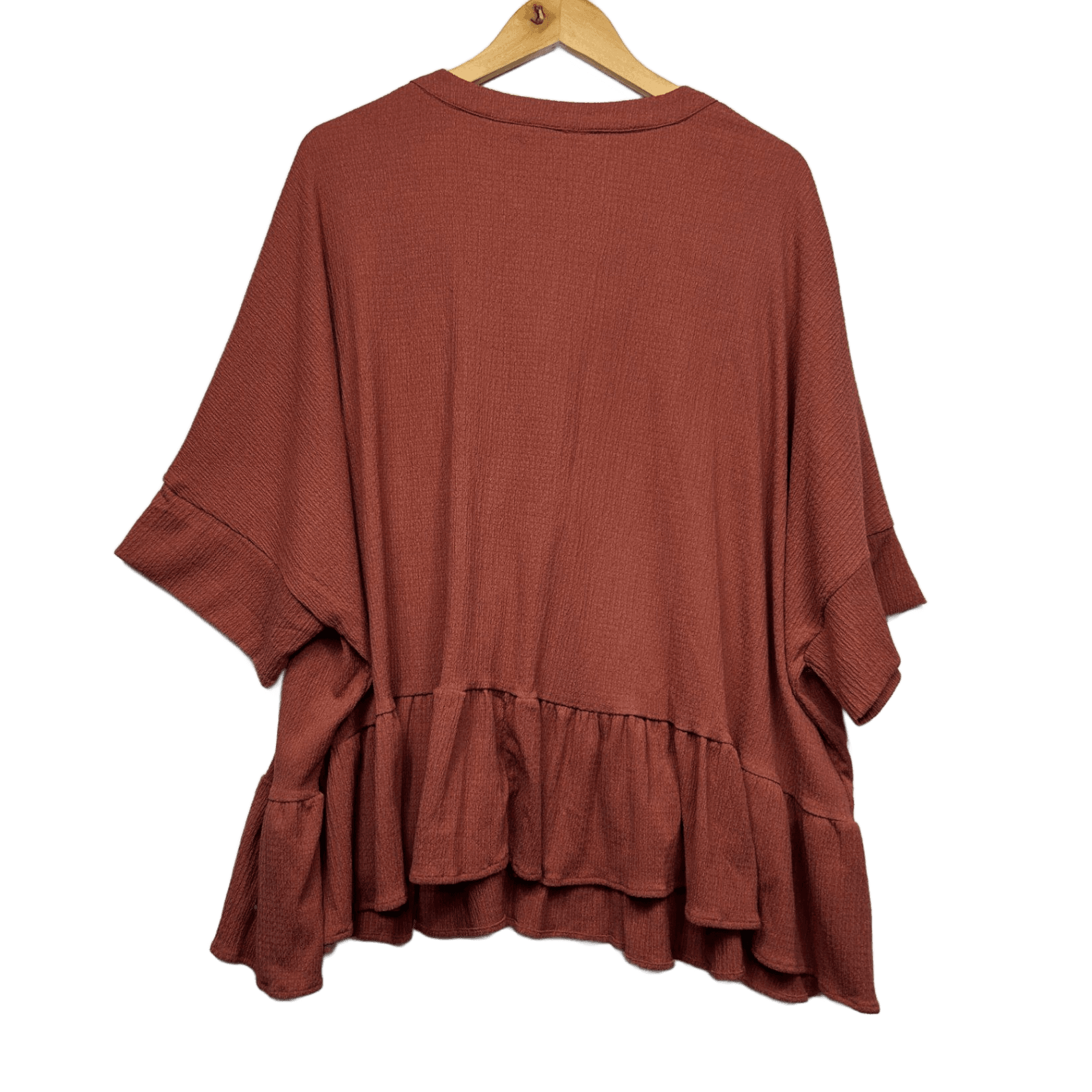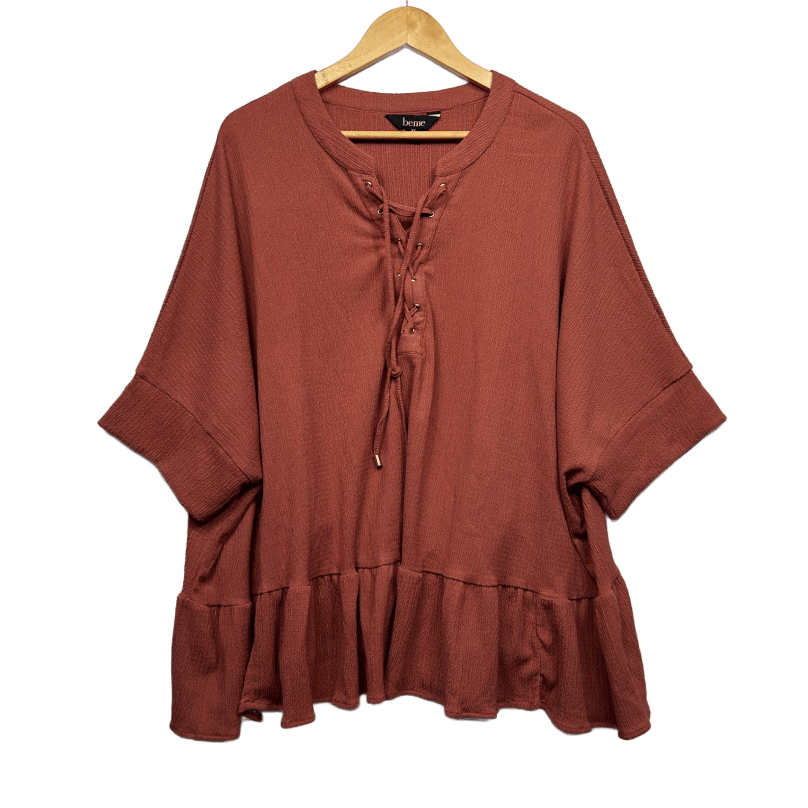 Beme Rust Brown Short Sleeve Lace-Up Relaxed Fit Blouse Size 14 16 Plus XS