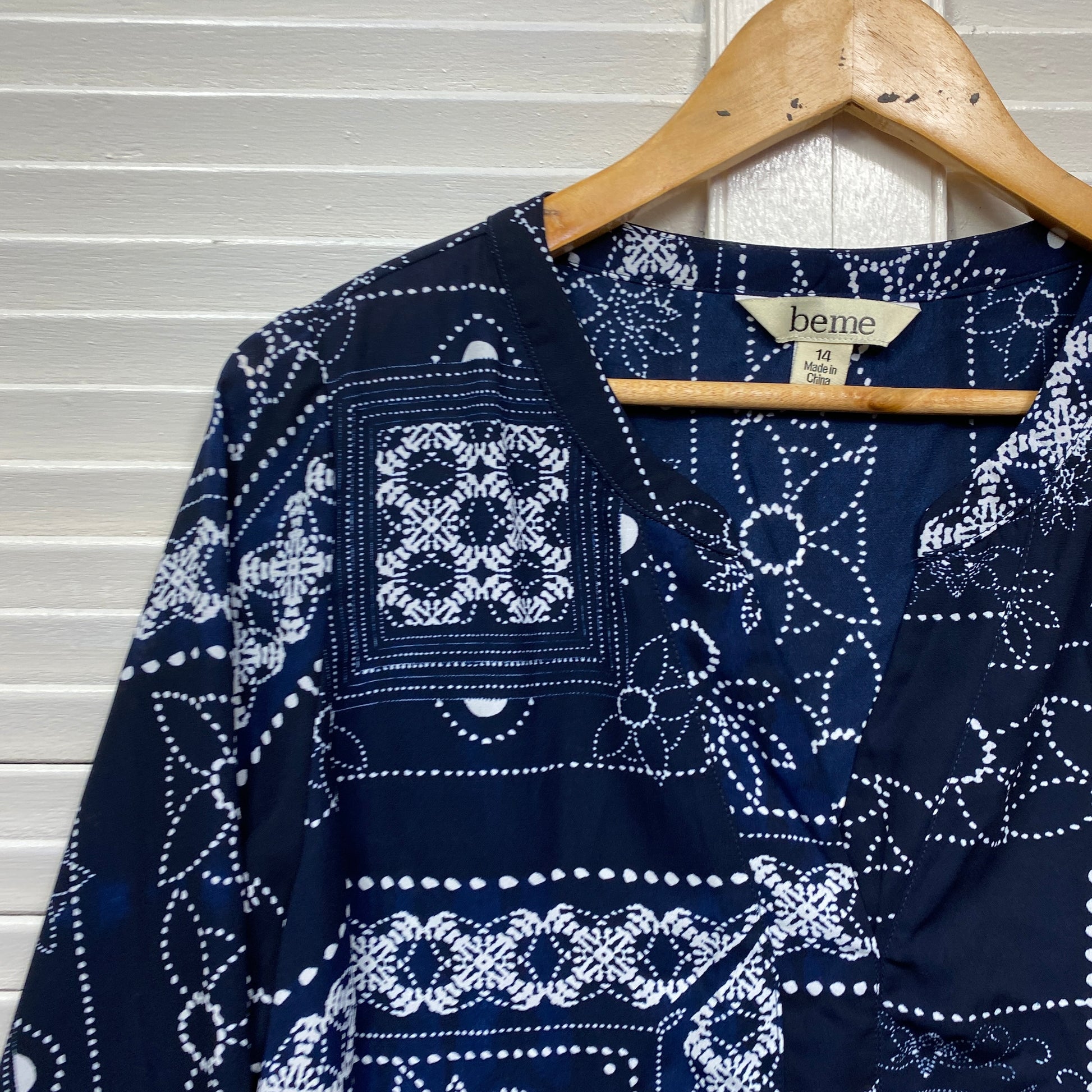 Beme Tunic Top Size 14 Navy Long Sleeve